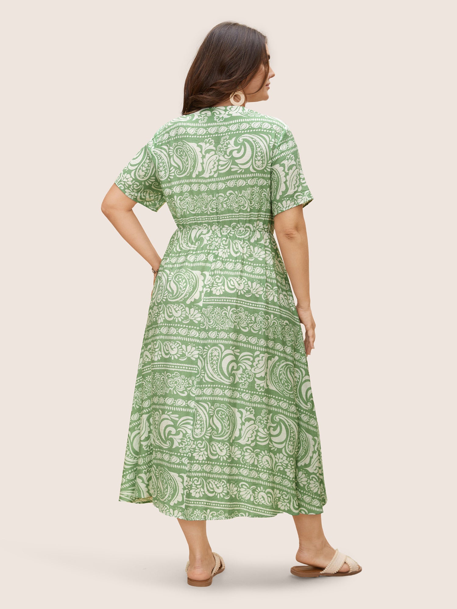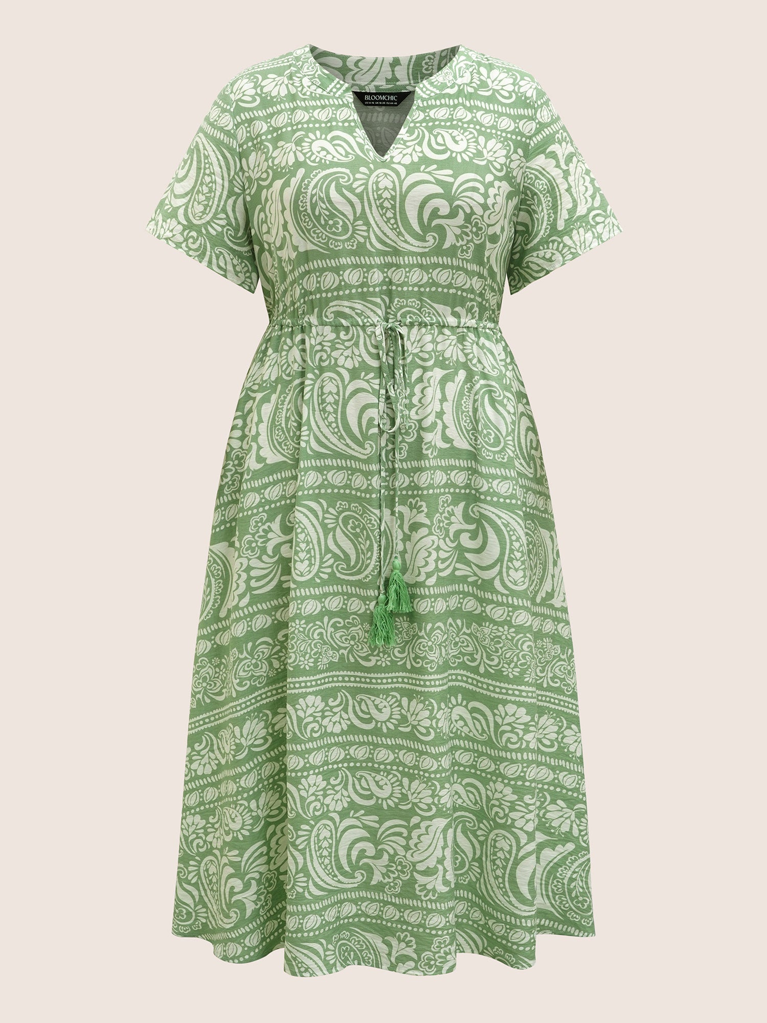 Shop Boho Print Drawstring Tassels Midi Dress now and redefine your style with confidence at Sweetccc. Tailored for mid and plus-size women. This trendy Dress. sizes 10-30. You can never go wrong with Sweetccc Dresses. Season:Fall;Color:LightGreen;Style:Resort Vacation;Neckline:Flat collar with V-notch;Sleeve Type:Regular Sleeve;Prints:Bohemian print;Details:Drawstring. Tassels;Pocket:Side seam pocket;Belt:No-belt;Closure Type:Non