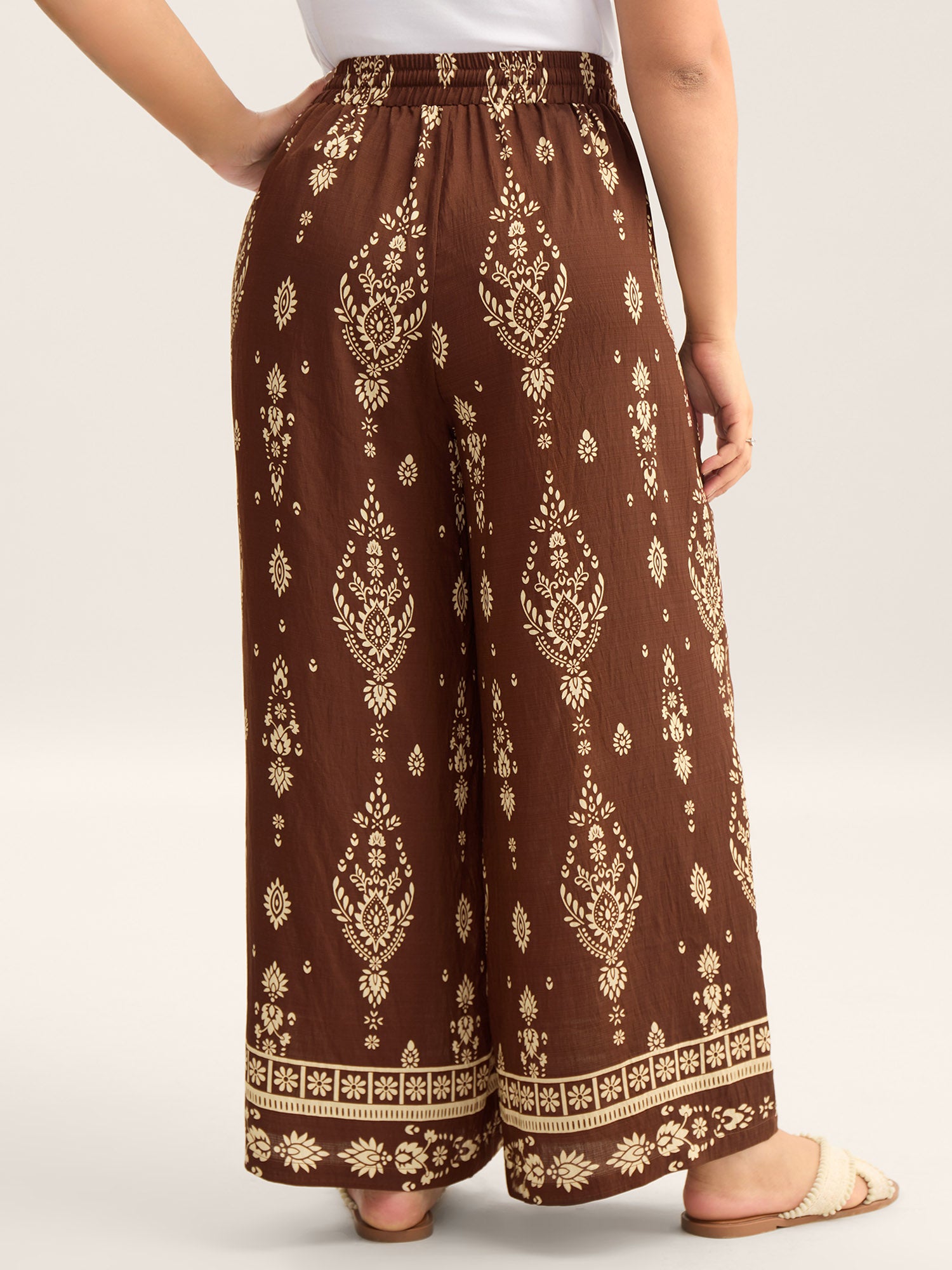 Shop Boho Print Drawstring Wide-Leg Pants now and redefine your style with confidence at Sweetccc. Tailored for mid and plus-size women. This trendy Bottoms Women. sizes 10-30. Color:Browncoffeecolor;Style:Resort;Waist Design:Mid Rise;Prints:Bohemian print;Details:Drawstring;Pocket:Slanted pocket;Belt:No-belt;Closure Type:Non
