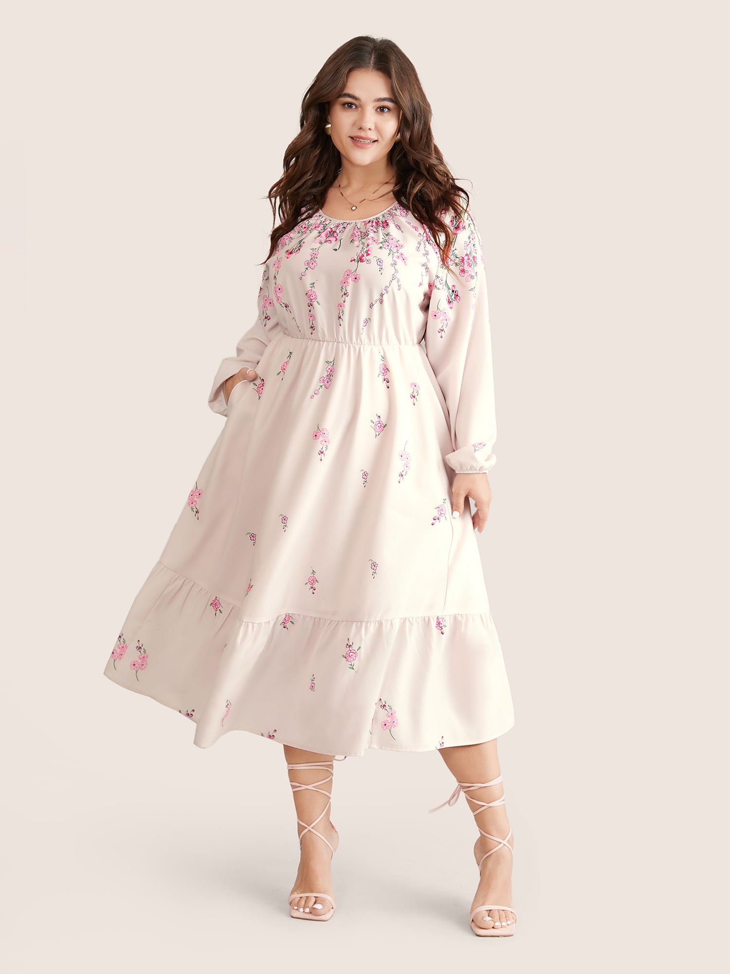 Shop Boho Print Patchwork Ruffles Lantern Sleeve Dress now and redefine your style with confidence at Sweetccc. Tailored for mid and plus-size women. This trendy Dress. sizes 10-30. You can never go wrong with Sweetccc Dresses. Season:Winter;Color:Apricot;Style:Elegant;Neckline:Round Neck;Sleeve Type:Lantern Sleeve;Pattern Type:Bohemian Print;Details:Pocket. Elastic Waist. Patchwork. Ruffles. Printed. Elastic cuffs;Pocket:It is perfectly sized to carry a phone.;Belt:No-belt