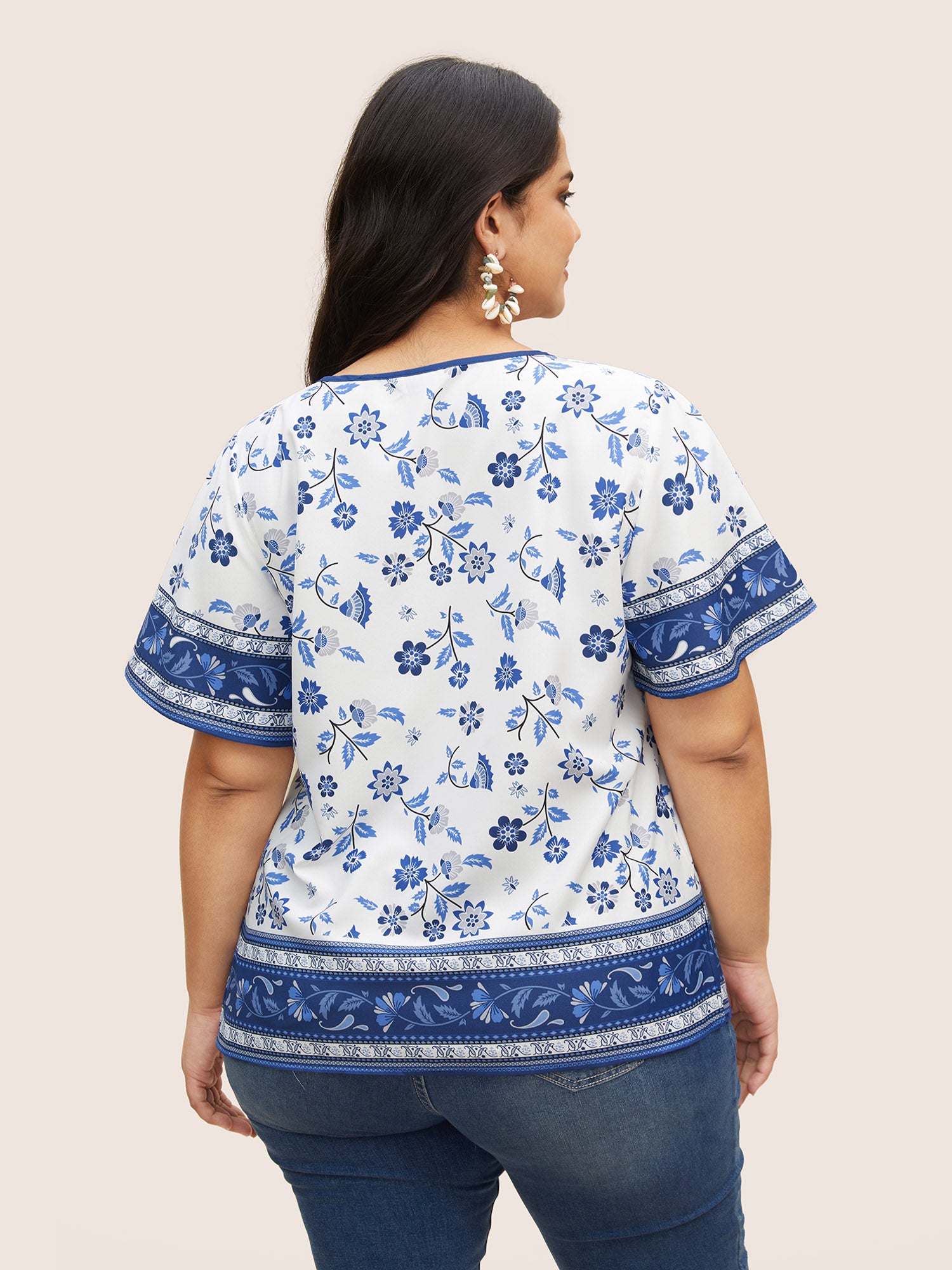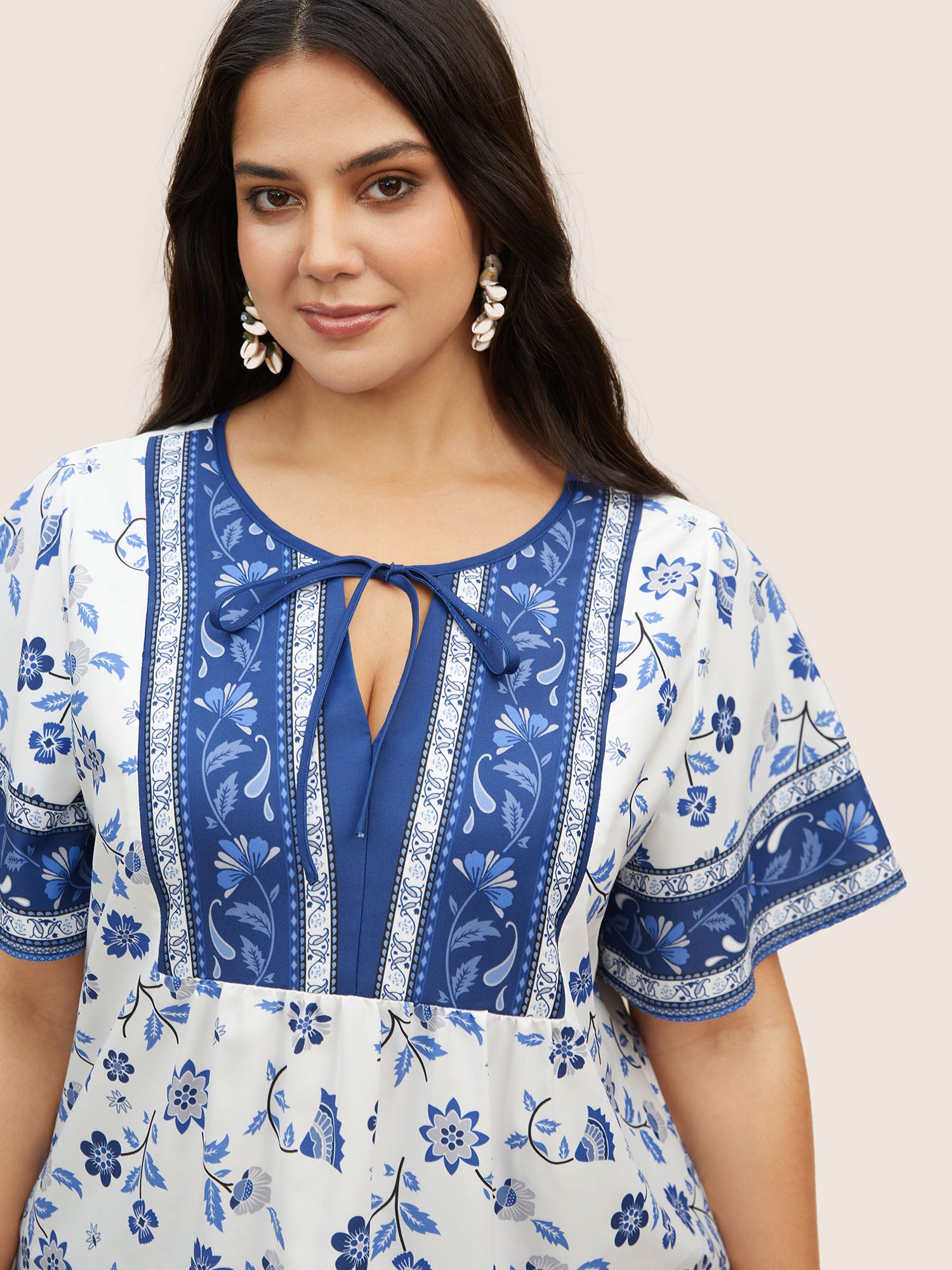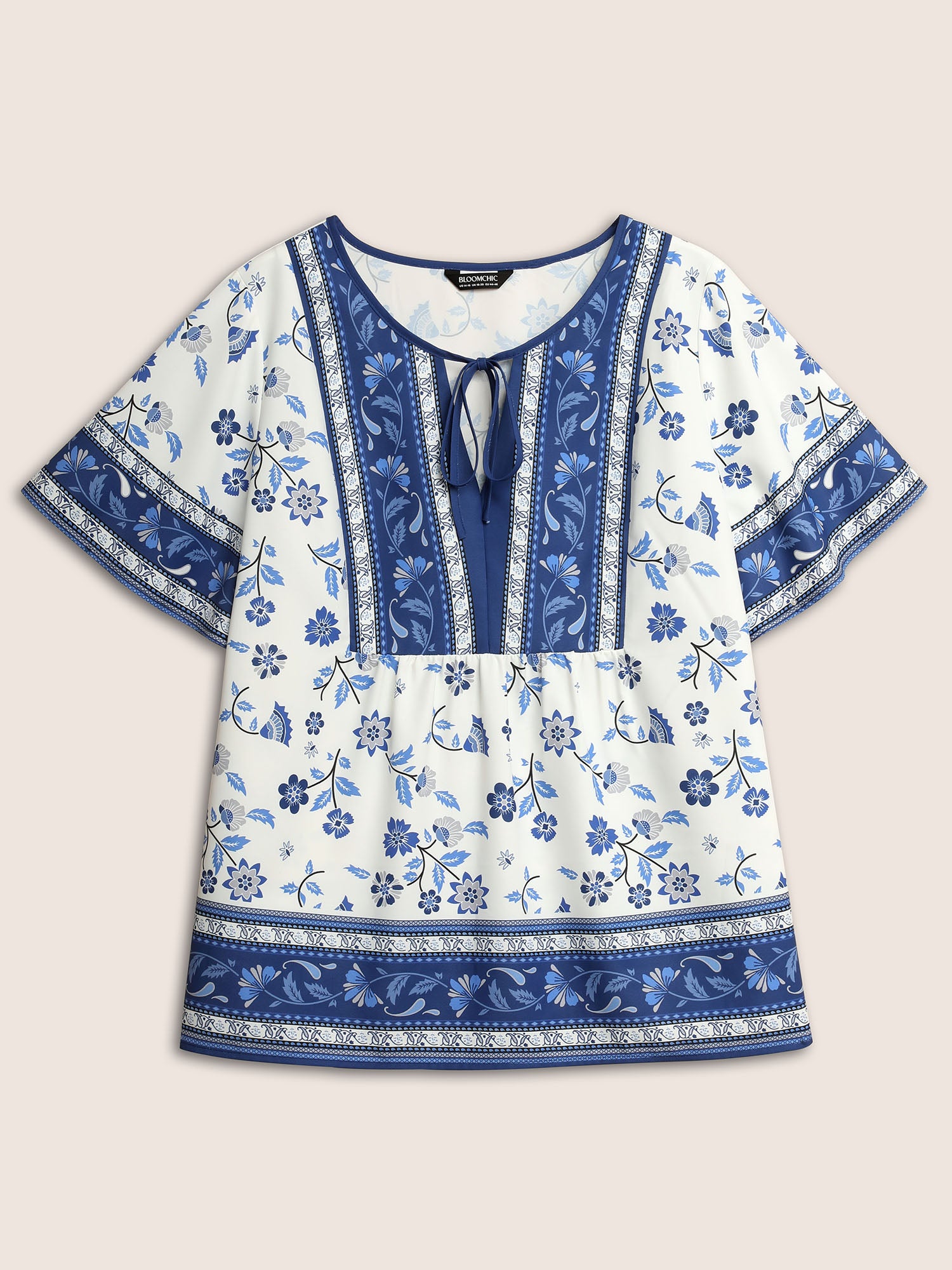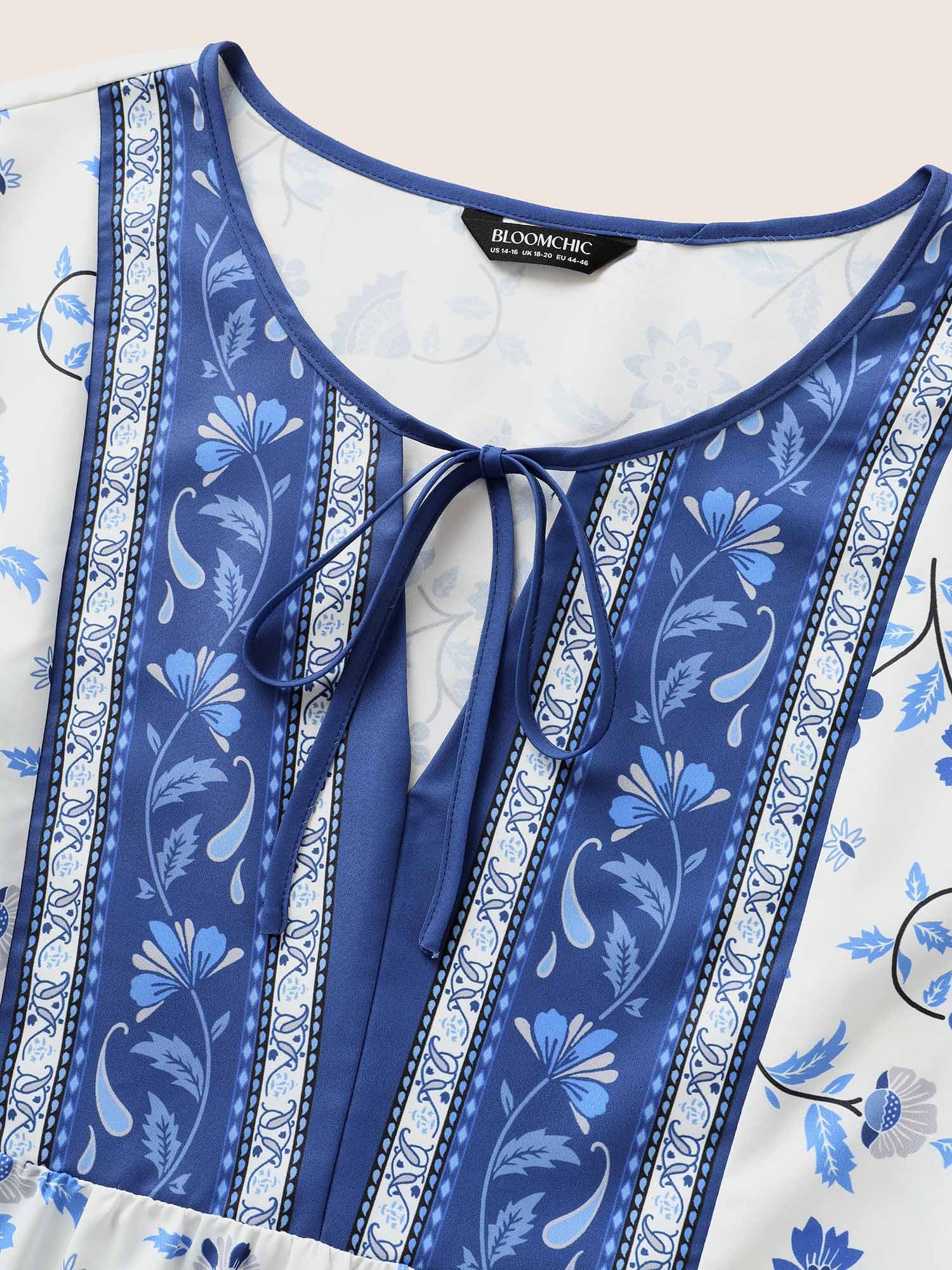 Shop Boho Print Tie Knot Ruffle Sleeve Blouse now and redefine your style with confidence at Sweetccc. Tailored for mid and plus-size women. This trendy Tops Women. sizes 10-30. Season:Summer;Color:Aegean;Style:Resort;Prints:Bohemian print;Neckline:Flat collar with V-notch;Sleeve Type:Ruffle Sleeve;Details:Cross straps. Gathered. Ruffles;Pocket:No-pocket