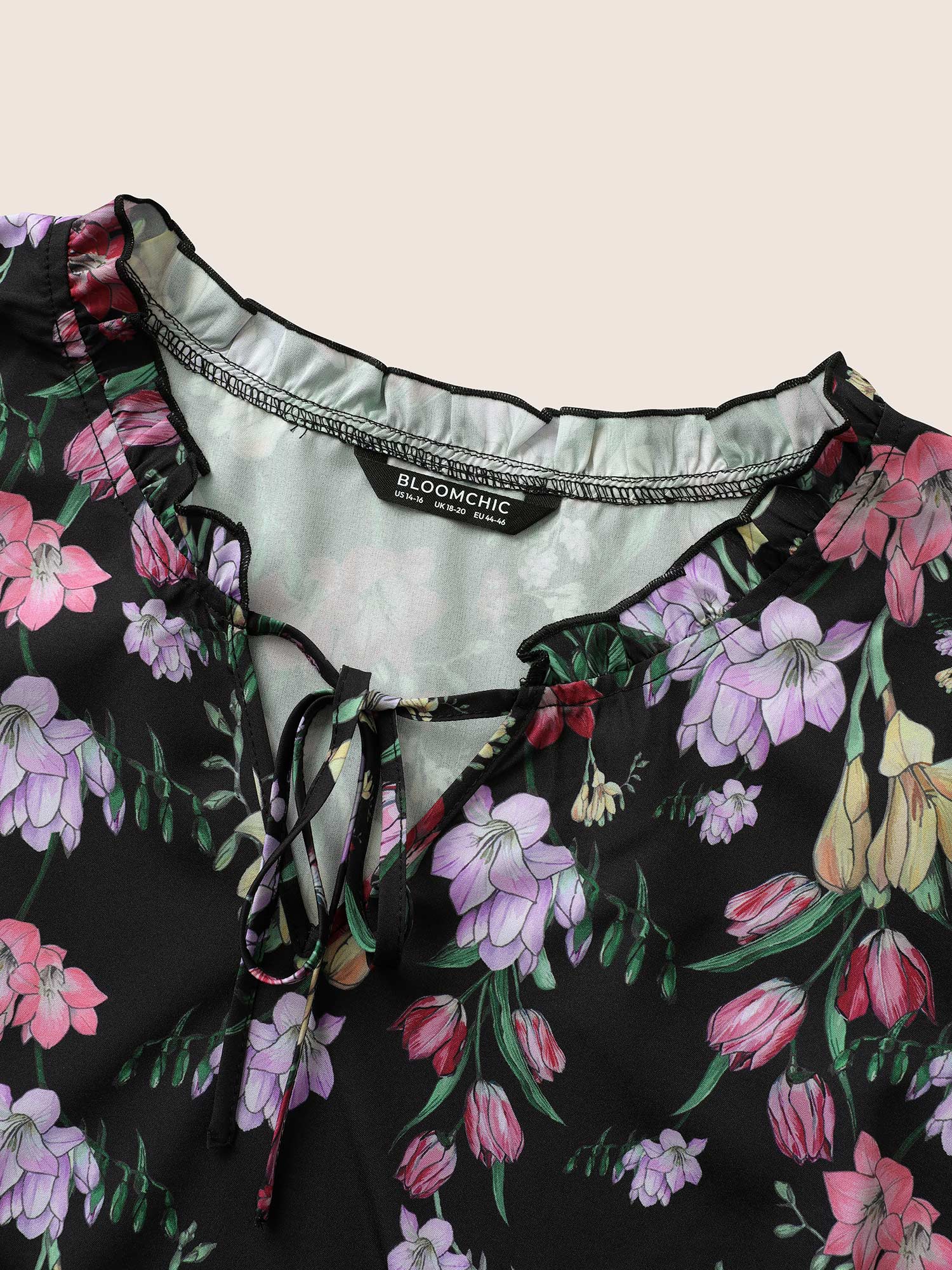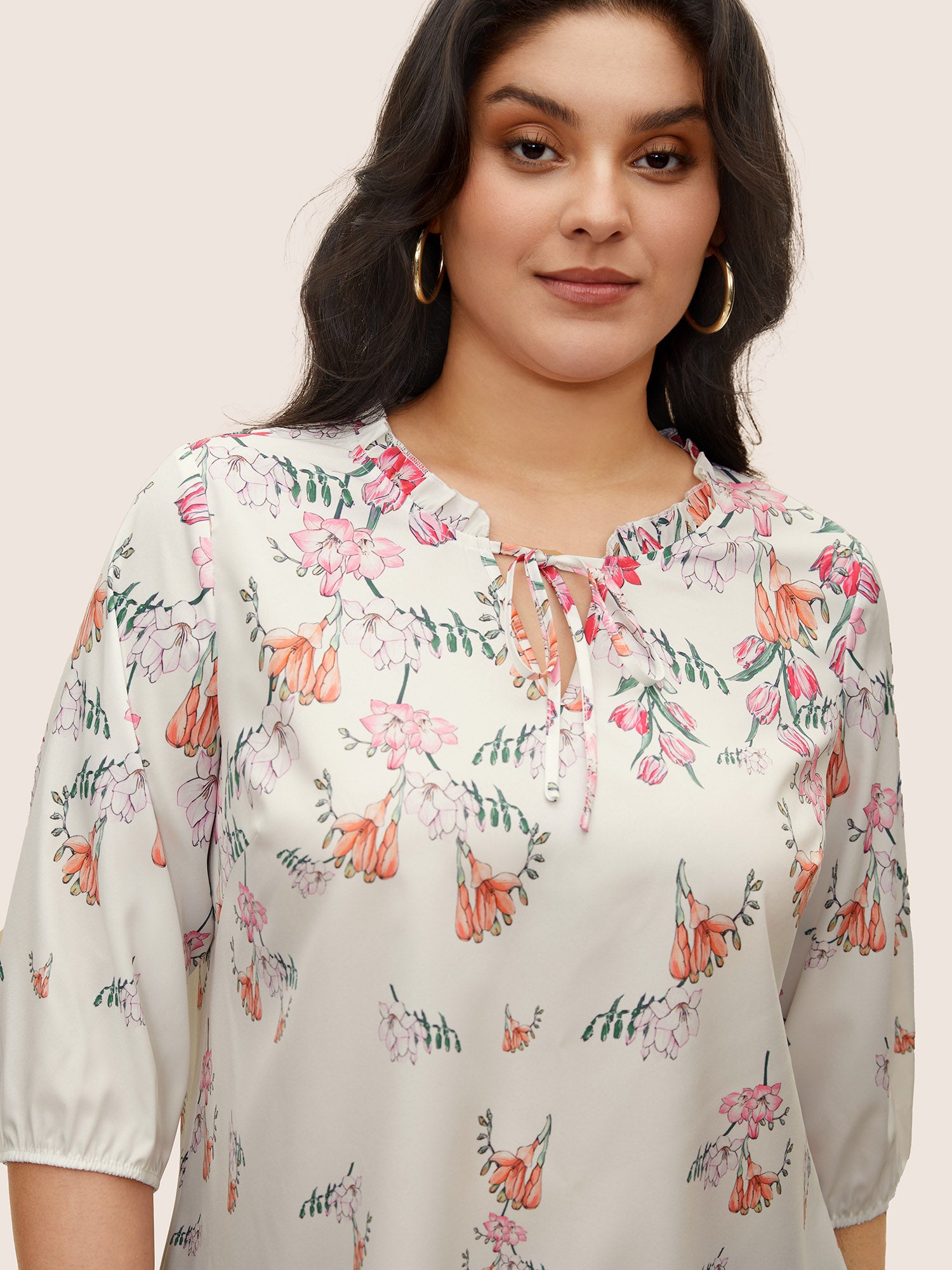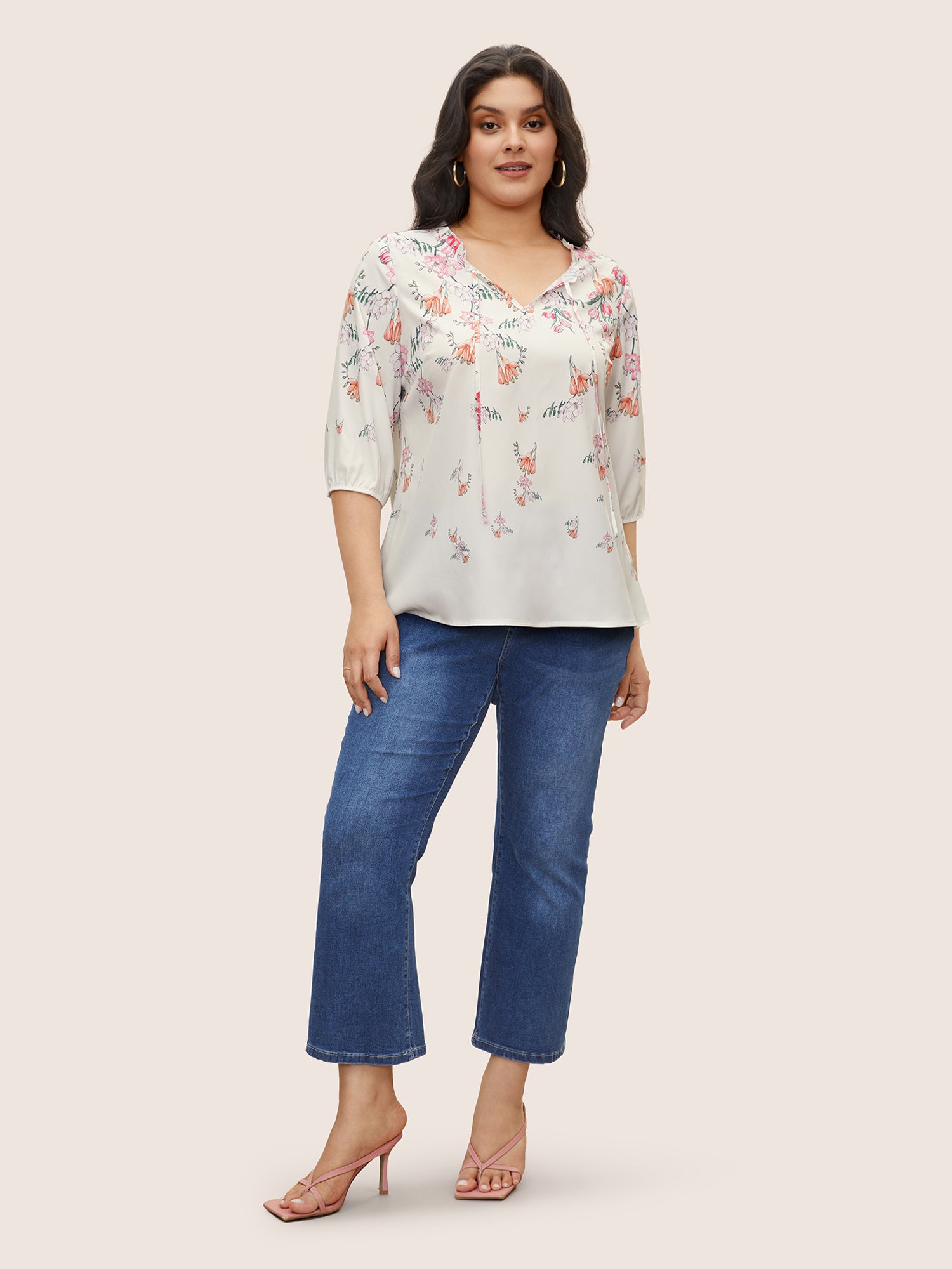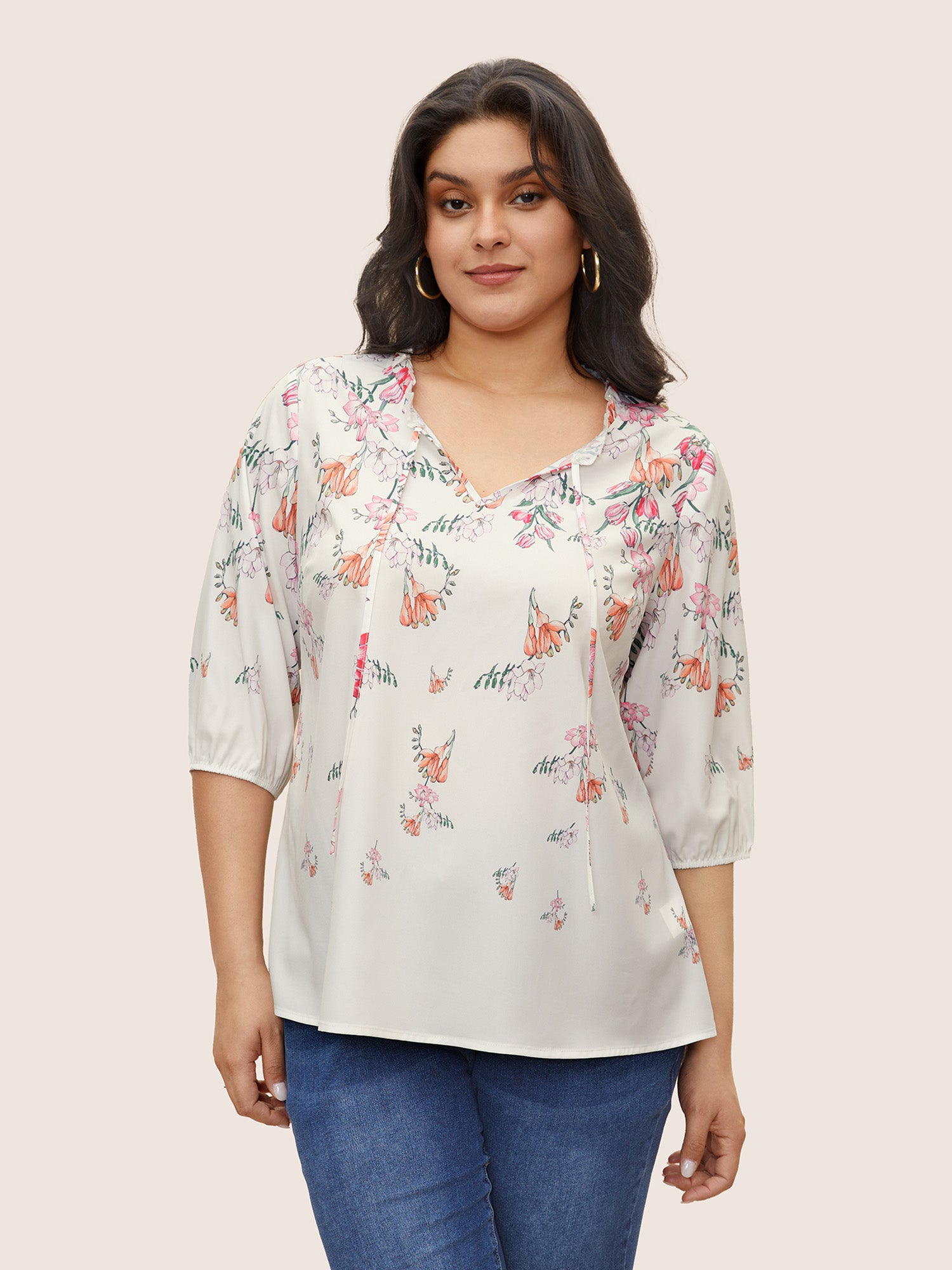Shop Boho Print Tie Neck Frill Trim Blouse now and redefine your style with confidence at Sweetccc. Tailored for mid and plus-size women. This trendy Tops Women. sizes 10-30. Color:White;Pattern Type:Bohemian Print;Neckline:Notched collar;Sleeve Type:Lantern Sleeve;Pocket:No-pocket