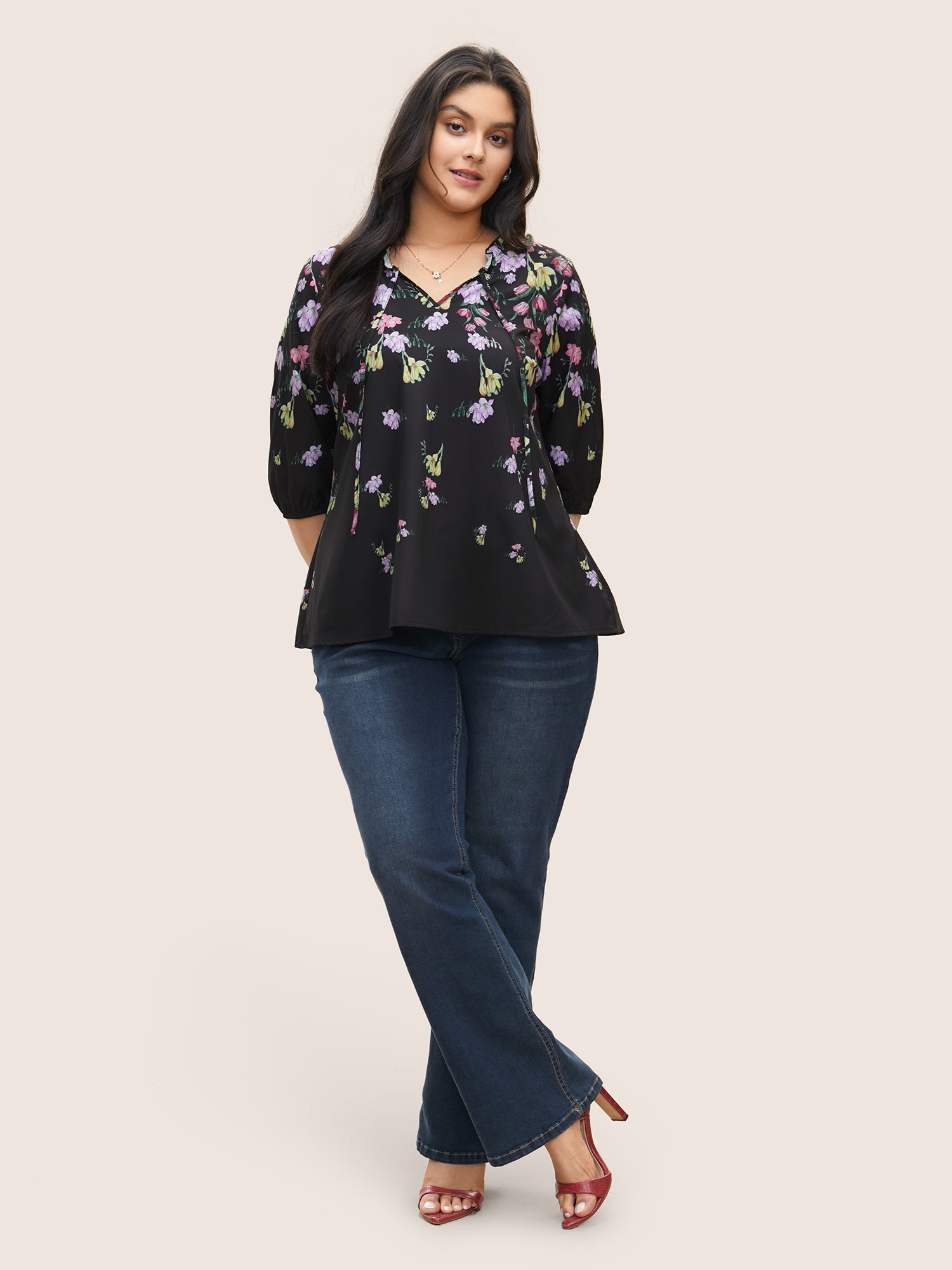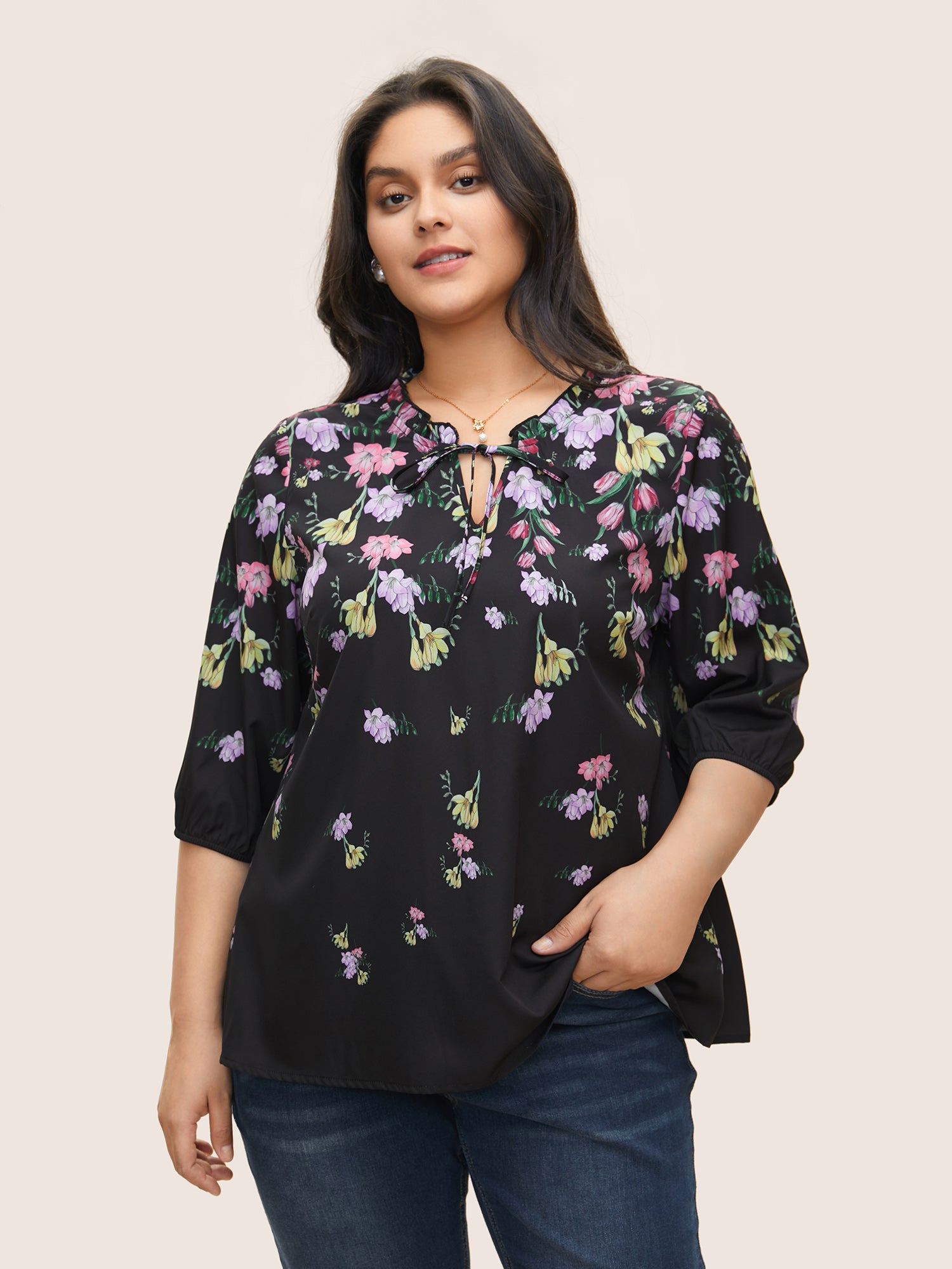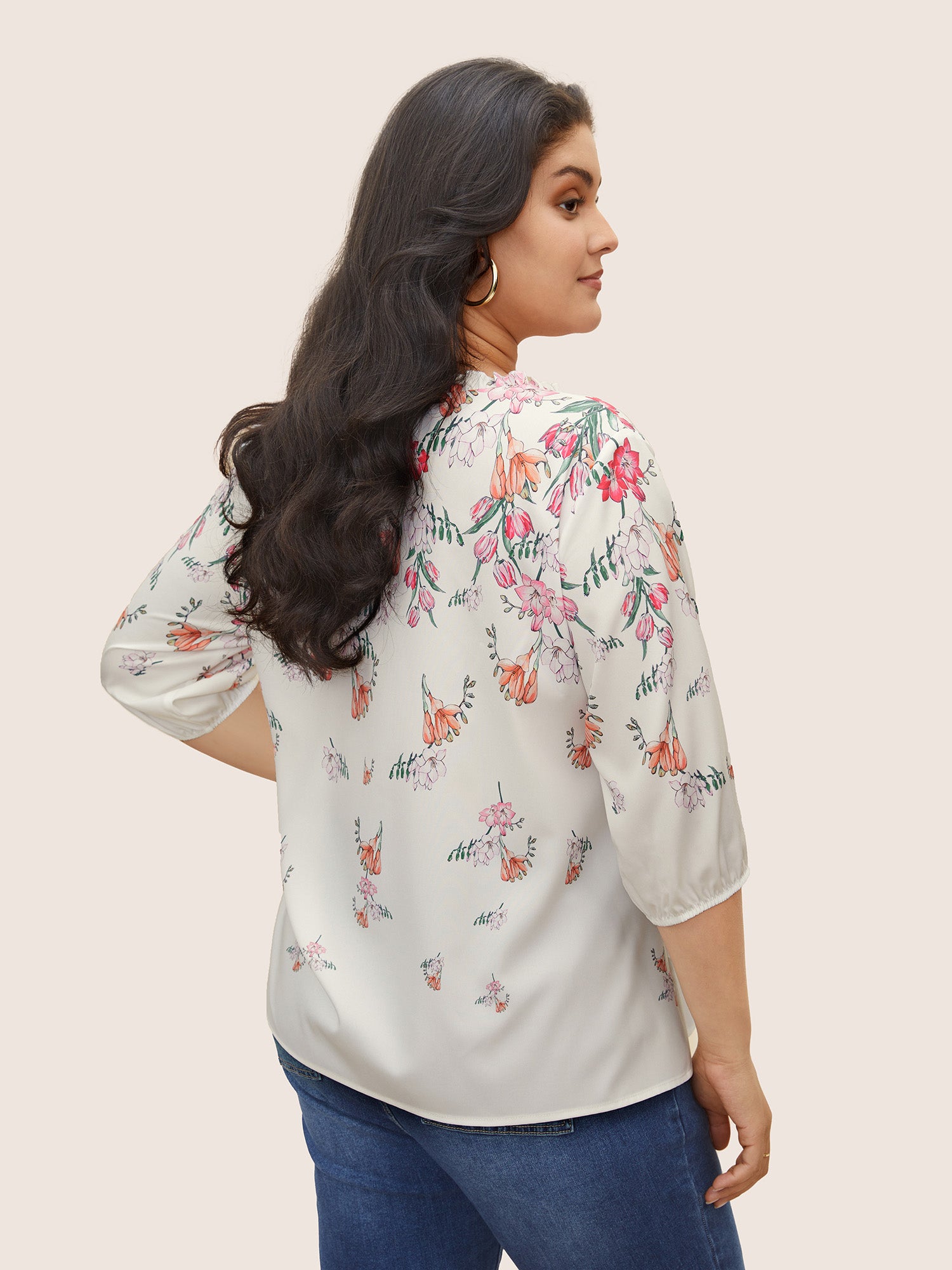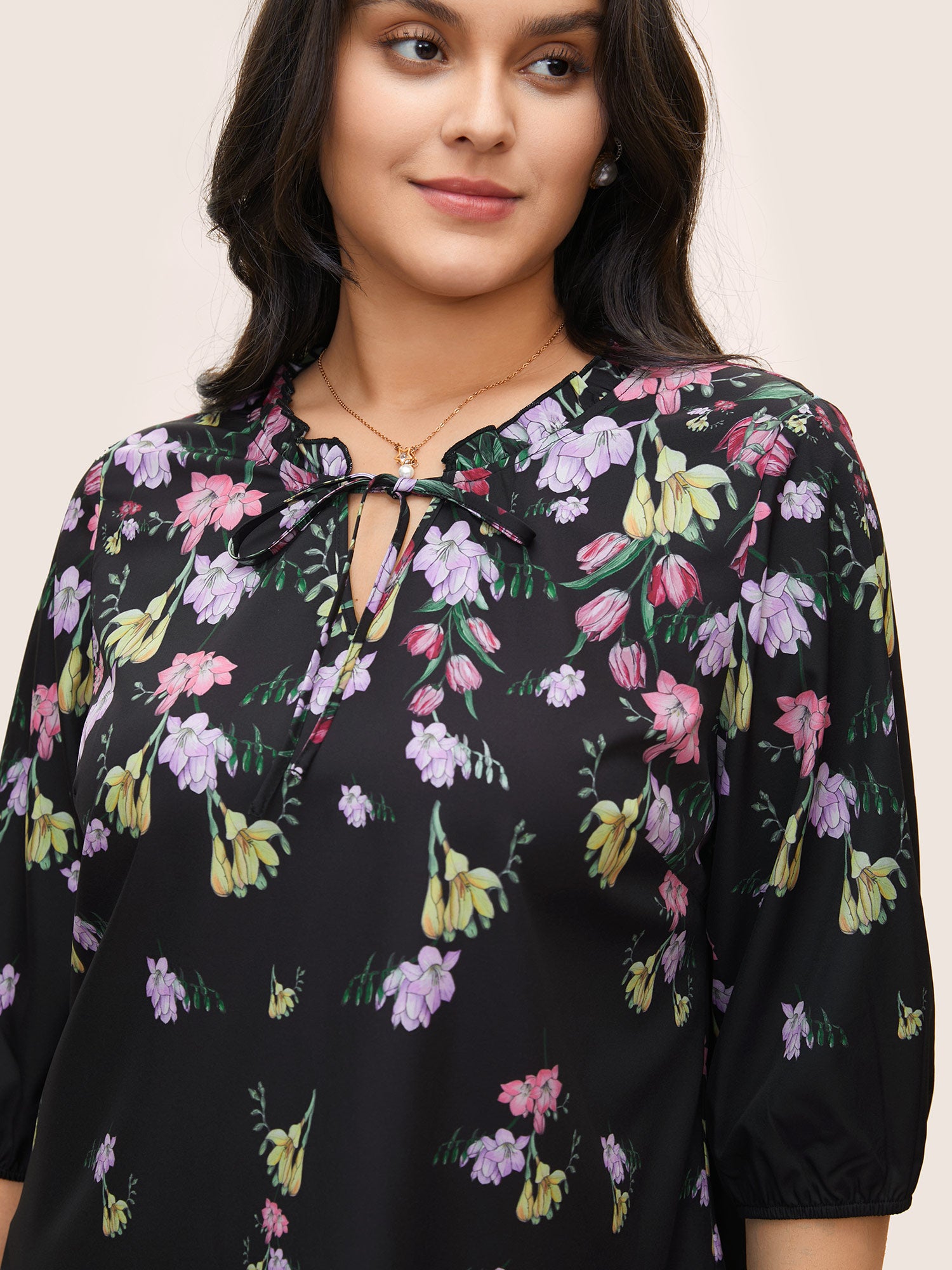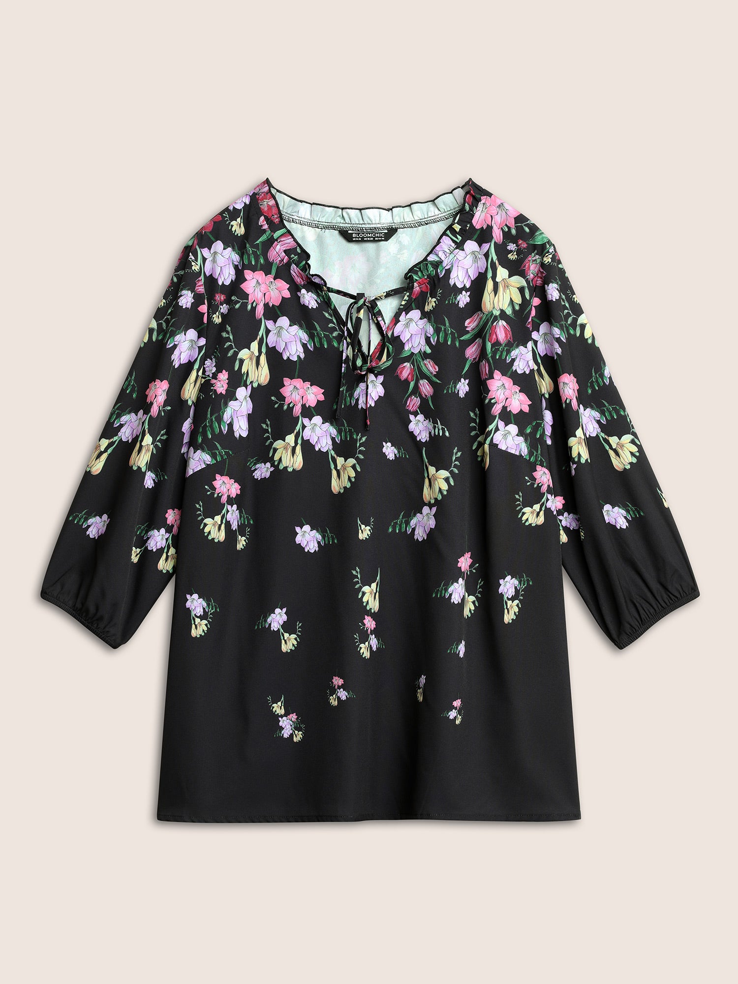 Shop Boho Print Tie Neck Frill Trim Blouse now and redefine your style with confidence at Sweetccc. Tailored for mid and plus-size women. This trendy Tops Women. sizes 10-30. Color:White;Pattern Type:Bohemian Print;Neckline:Notched collar;Sleeve Type:Lantern Sleeve;Pocket:No-pocket