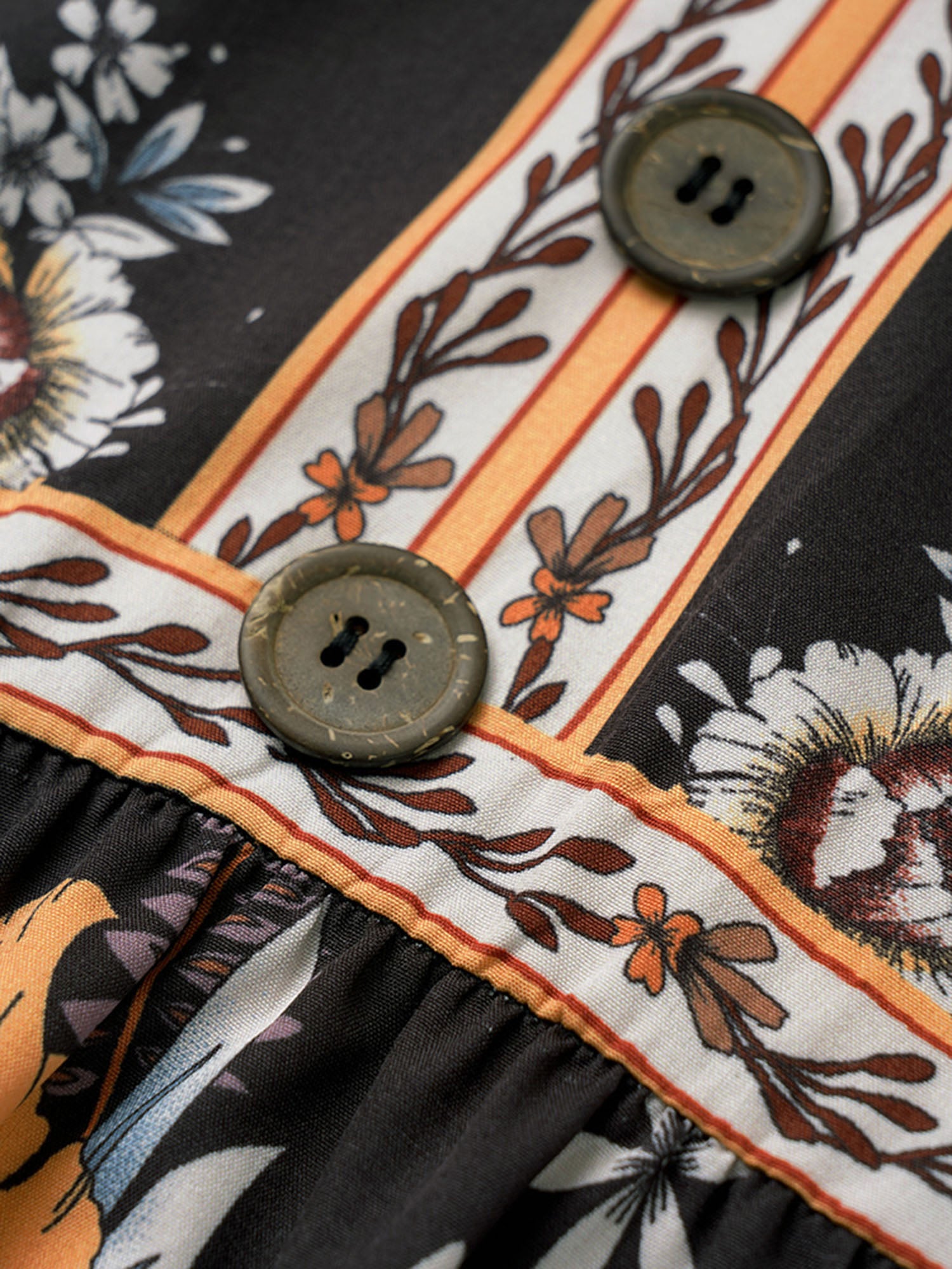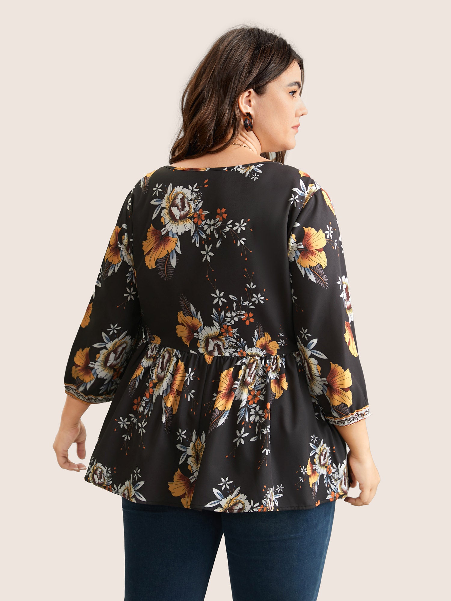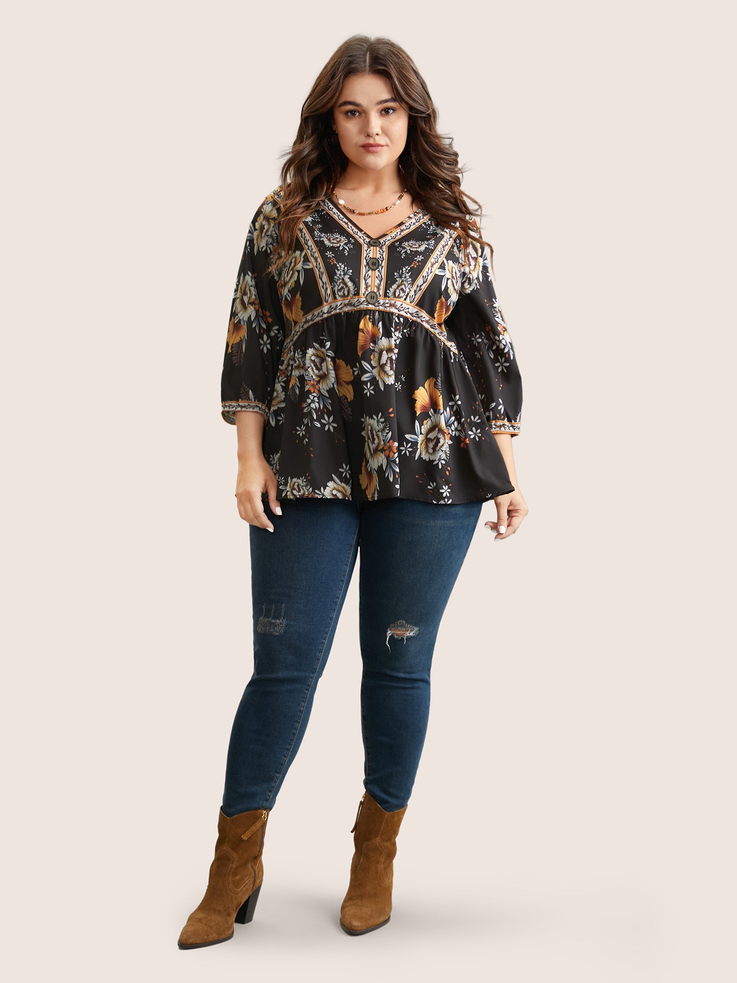 Shop Boho Print V Neck Button Detail Gathered Blouse now and redefine your style with confidence at Sweetccc. Tailored for mid and plus-size women. This trendy Tops Women. sizes 10-30. Season:Winter;Color:Black;Style:Vacation;Pattern Type:Bohemian Print;Neckline:V-neck;Sleeve Type:Lantern Sleeve;Details:Button. Gathered;Pocket:No-pocket