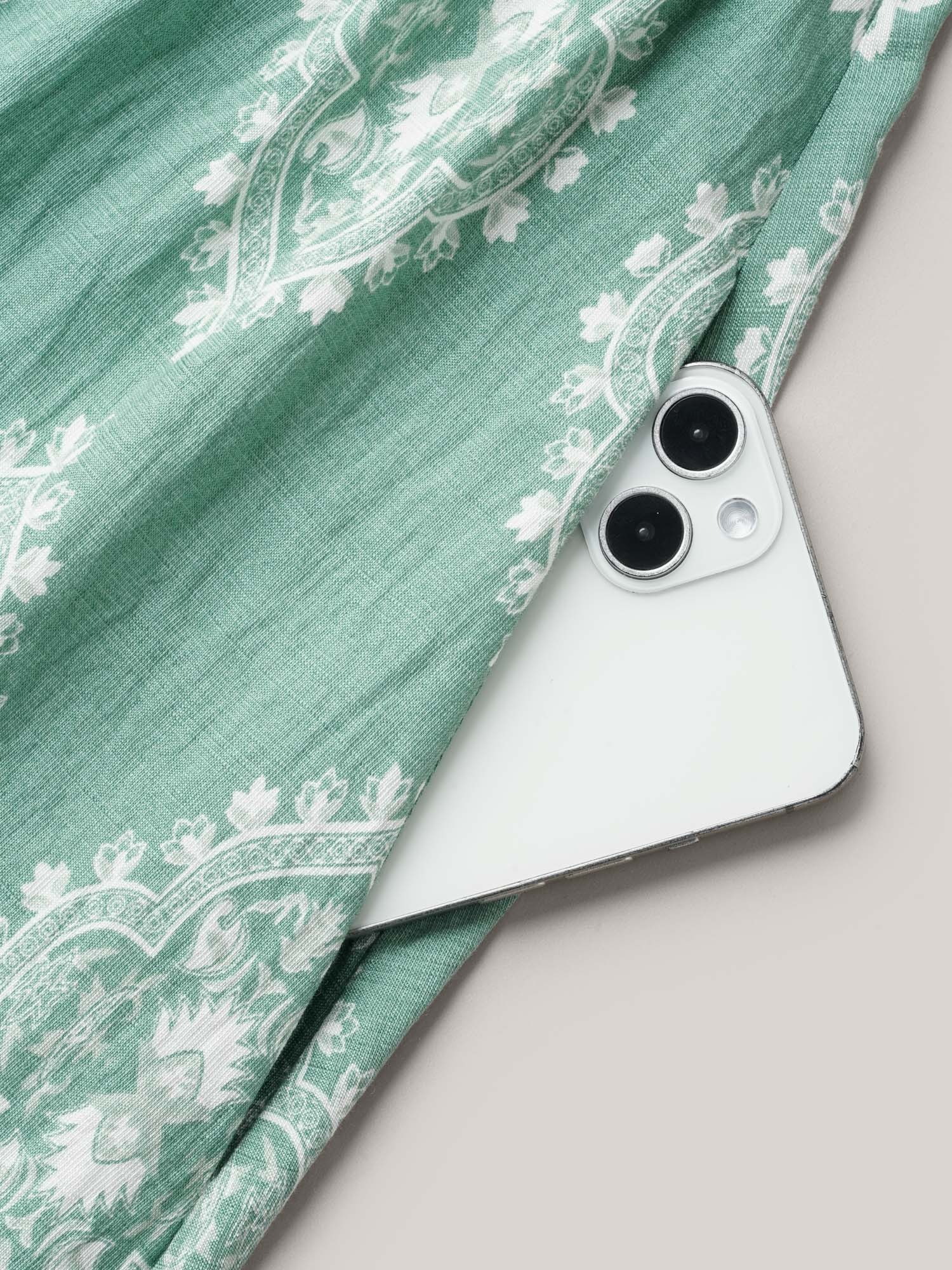 Boho Print Waist Defining Midi Dress
