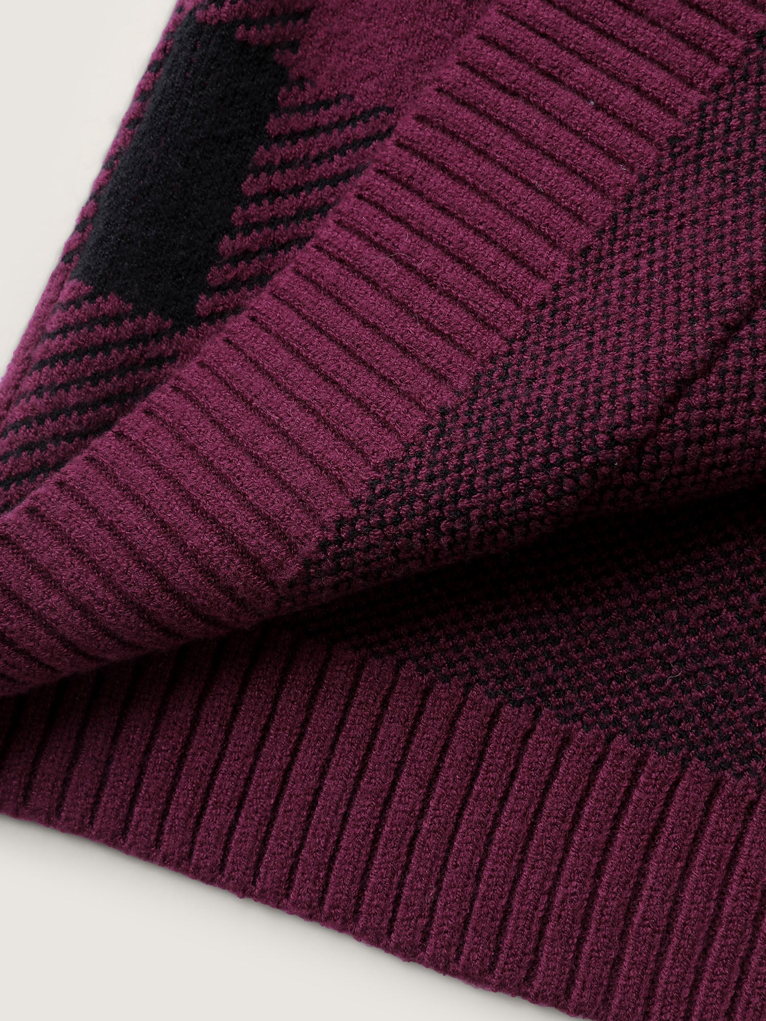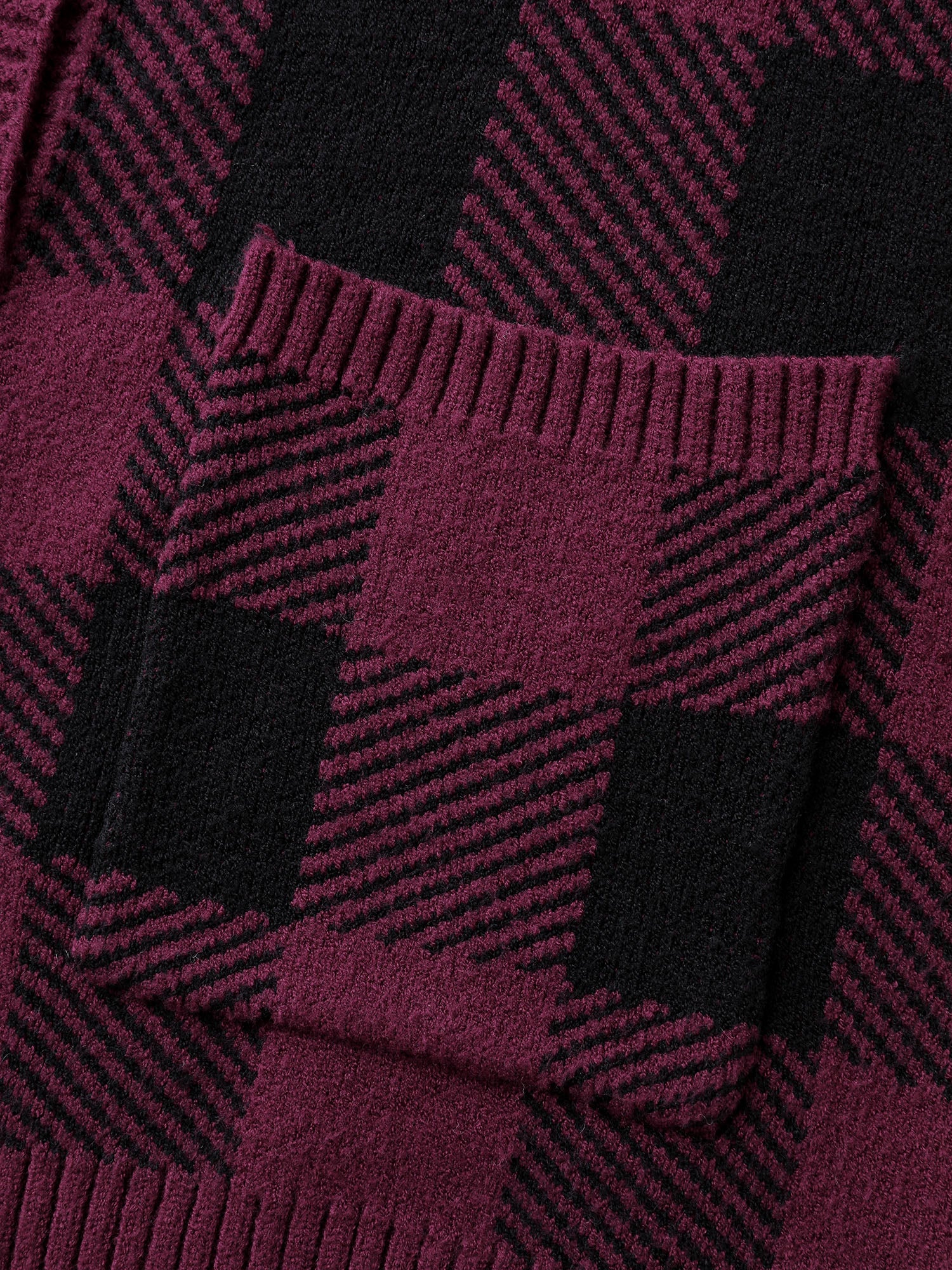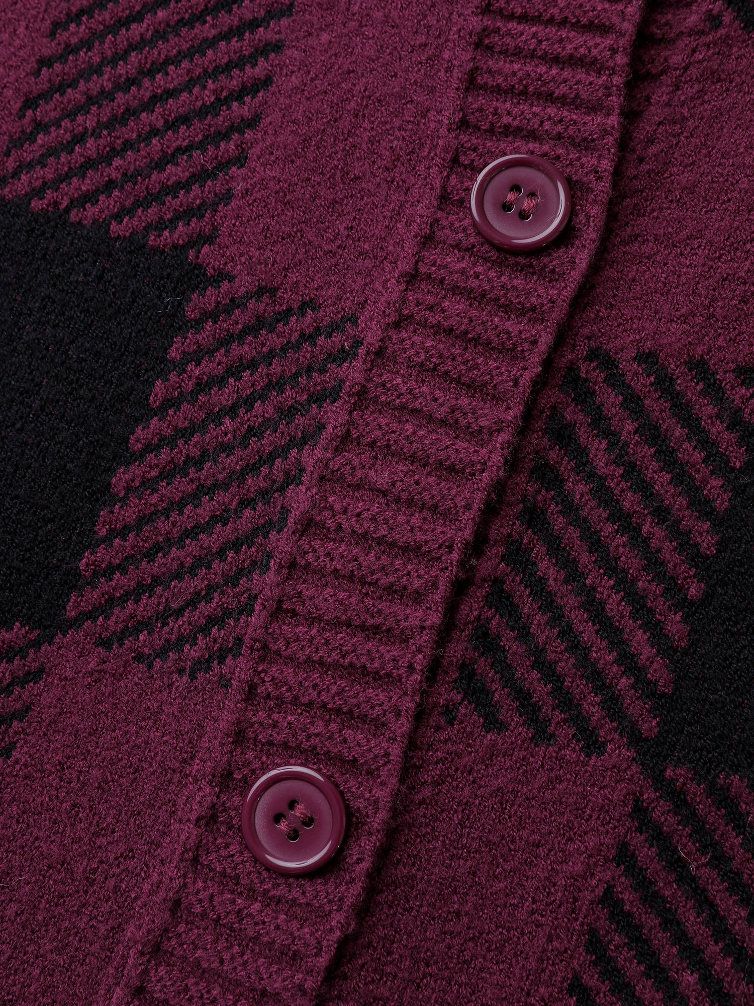 Checkered Jacquard Buttons Pockets Knit Cardigan