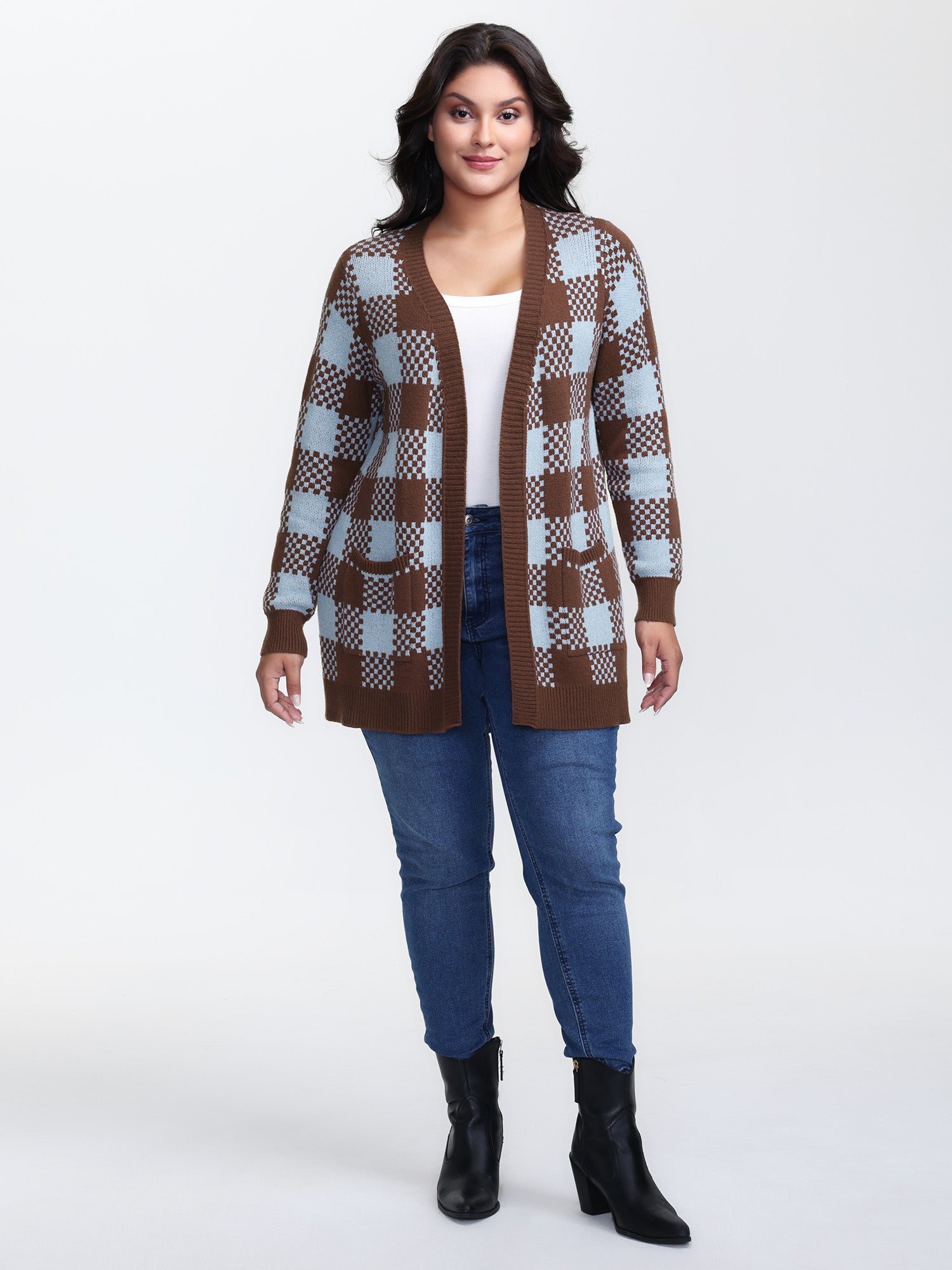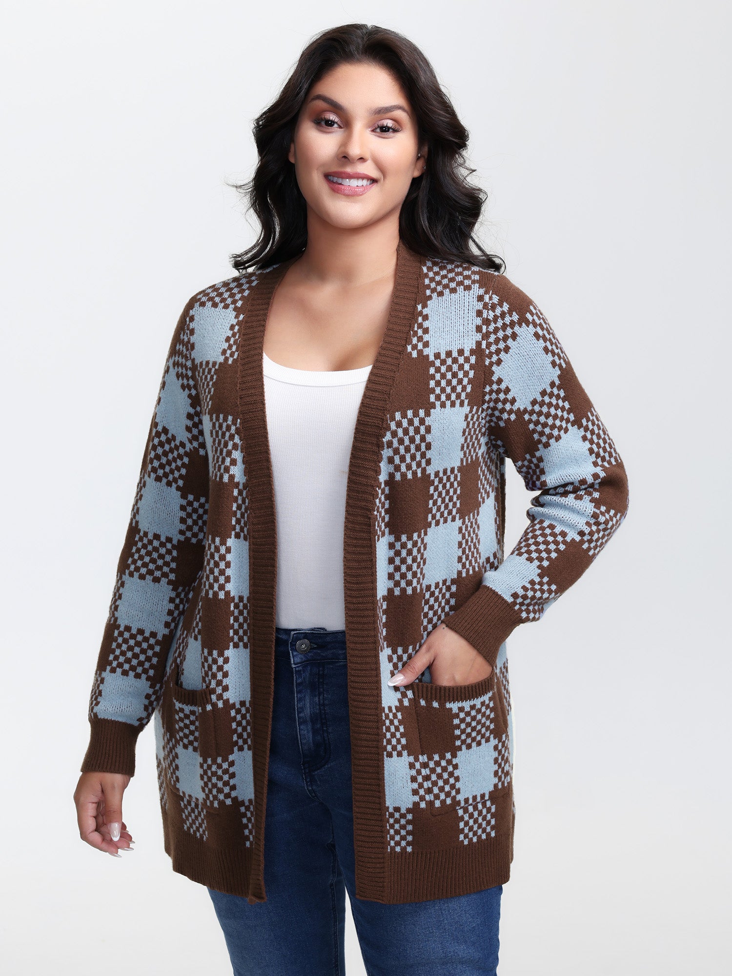 Shop Checkered Pattern Pockets Knit Cardigan at Sweetccc. Plus Size Clothing & Plus Size Cardigans. Sweetccc is a digital-first fashion and lifestyle destination for modern women sizes 10-30.