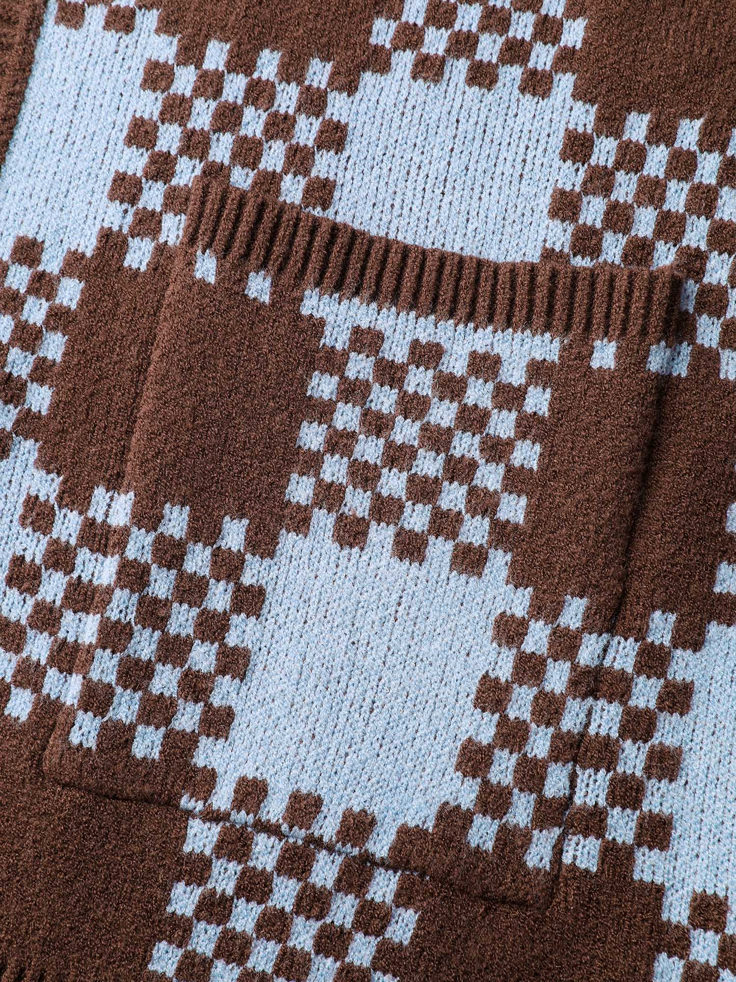 Checkered Pattern Pockets Knit Cardigan