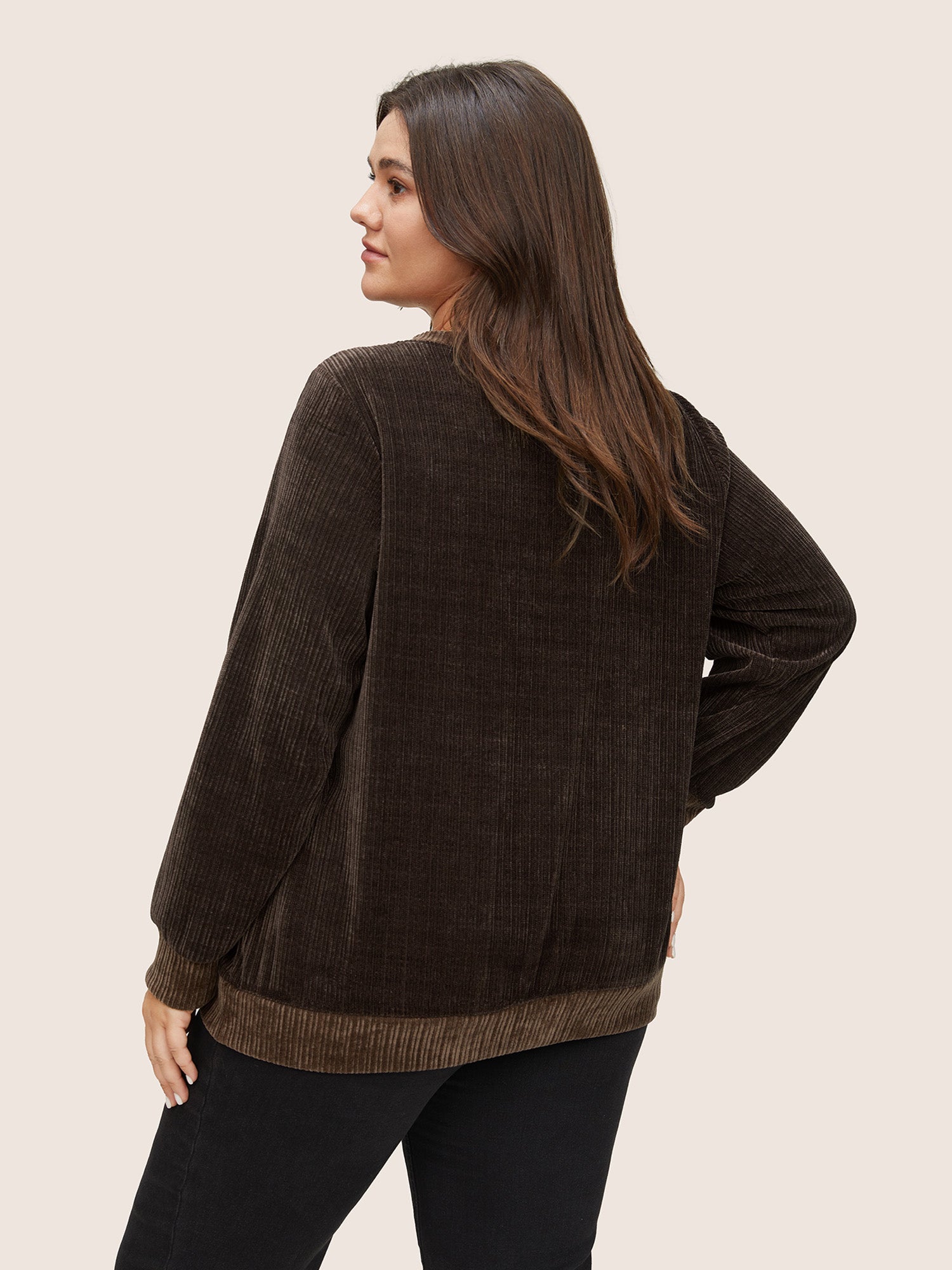 Shop Chenille Plisse Patchwork Button Detail Sweatshirt now and redefine your style with confidence at Sweetccc. Tailored for mid and plus-size women. This trendy Tops Women. sizes 10-30. Season:Spring;Color:DarkBrown;Neckline:Round Neck;Sleeve Type:Regular Sleeve;Pattern Type:Plain;Details:Button. Contrast. Texture;Pocket:No-pocket;Belt:No-belt