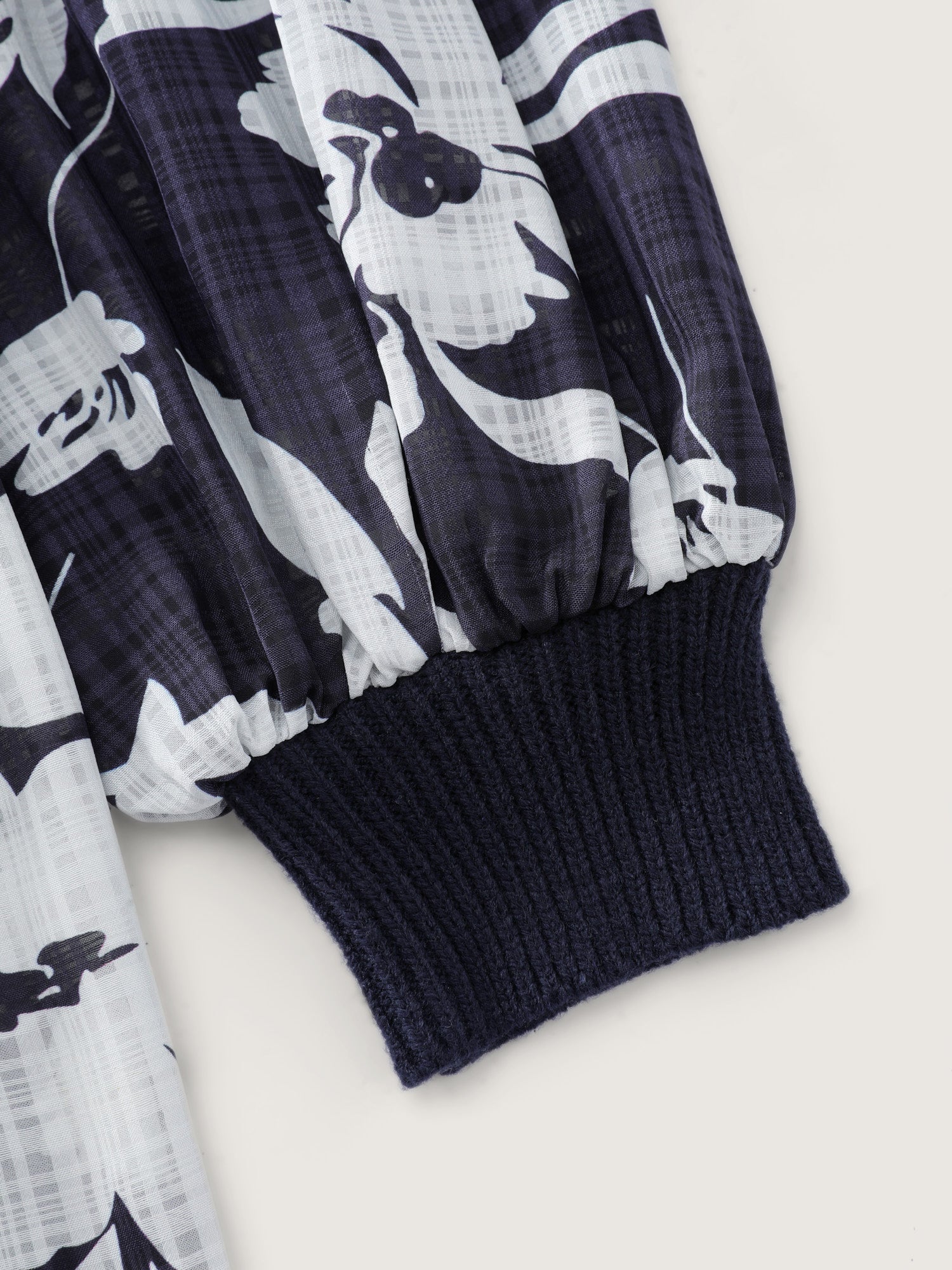 Shop Chiffon Floral Layered Square Neck Pullover now and redefine your style with confidence at Sweetccc. Tailored for mid and plus-size women. This trendy Sweaters Cardigans Women. sizes 10-30. Color:Indigo;Style:Romantic Elegant;Neckline:Square Neck;Sleeve Type:Lantern Sleeve;Prints:Floral;Details:Patchwork;Pocket:No-pocket;Belt:No-belt;Closure Type:Non