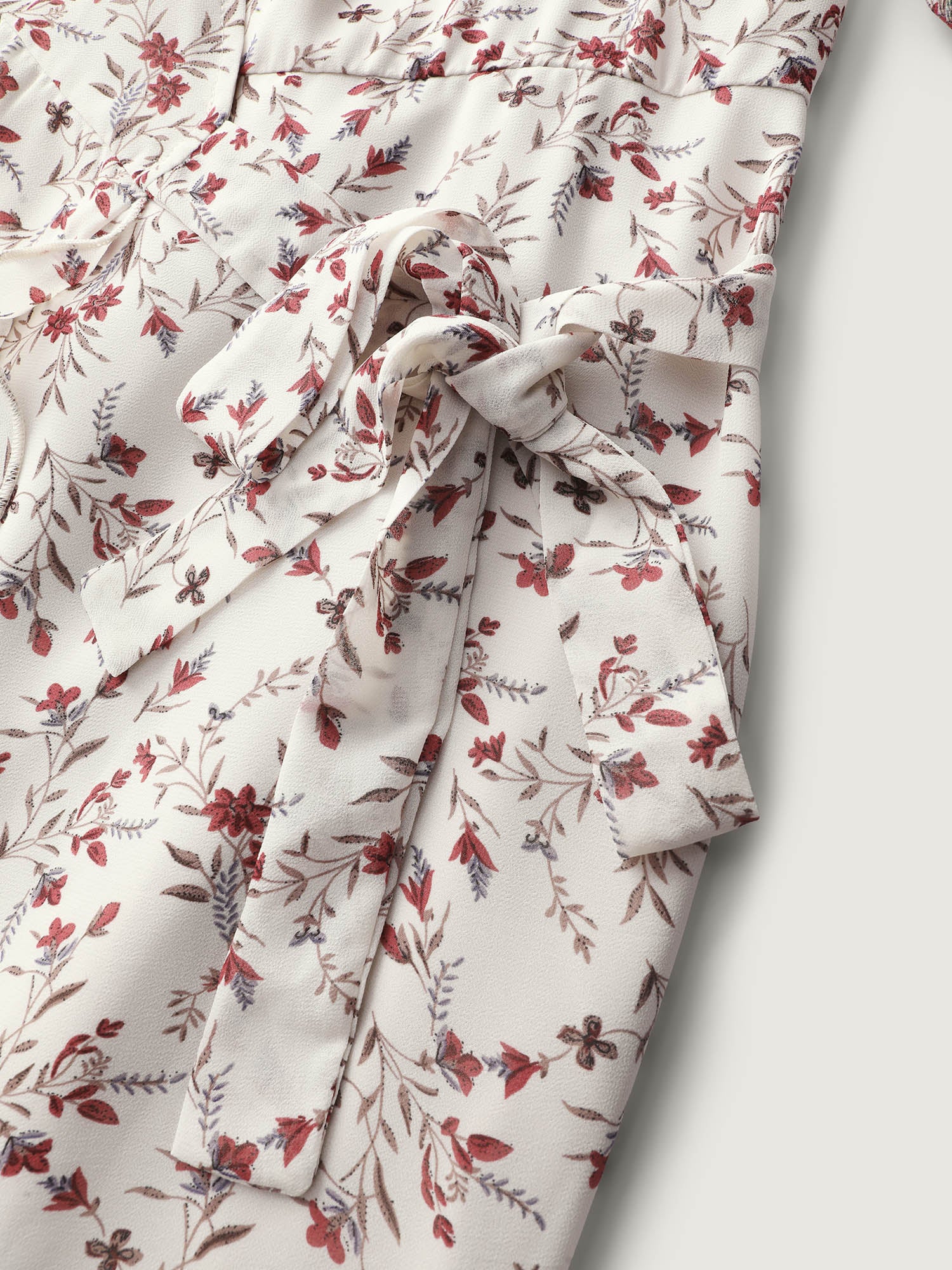 Chiffon Floral Wrap Ruffled Mini Dress