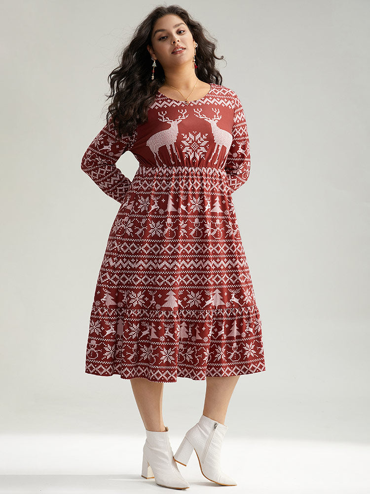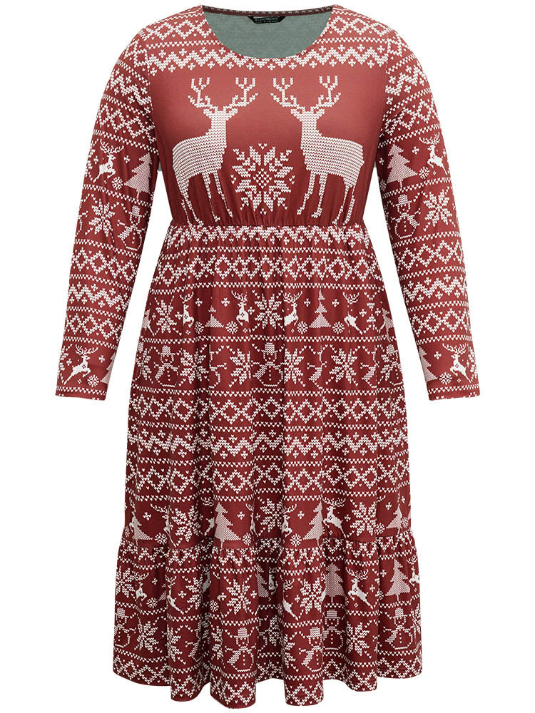 Shop Christmas Elk Gathered Ruffle Layered Hem Dress now and redefine your style with confidence at Sweetccc. Tailored for mid and plus-size women. This trendy Dress. sizes 10-30. You can never go wrong with Sweetccc Dresses. Season:Winter;Color:Scarlet;Style:Casual;Neckline:Round Neck;Sleeve Type:Regular Sleeve;Pattern Type:Graphic. Graphic-Christmas;Details:Pocket. Elastic Waist. Printed;Pocket:It is perfectly sized to carry a phone.;Belt:No-belt