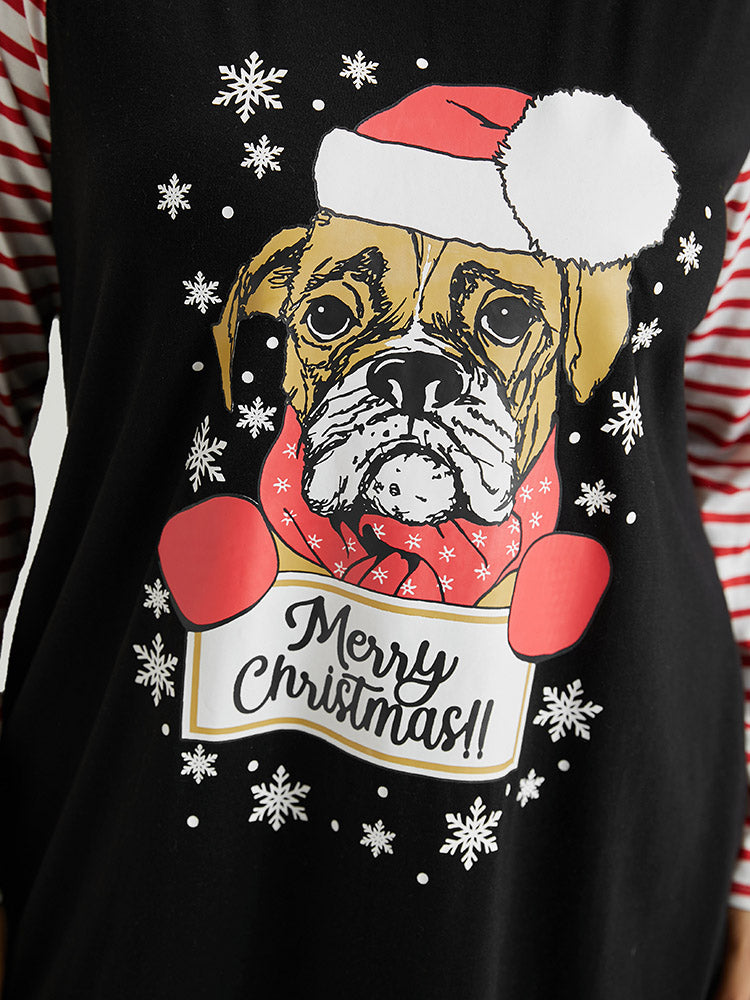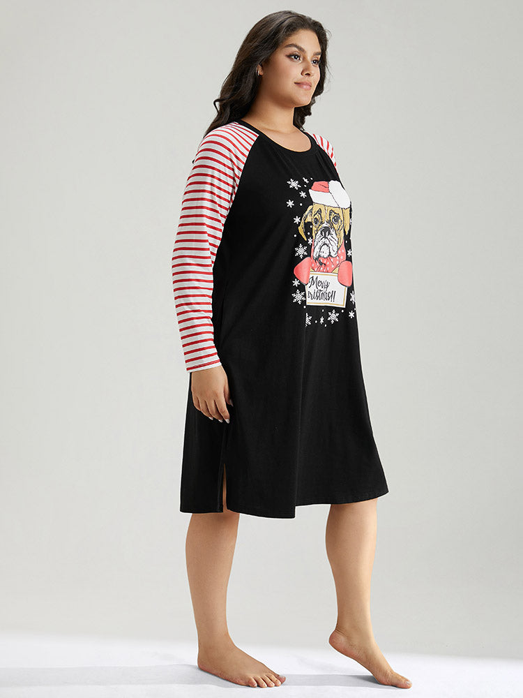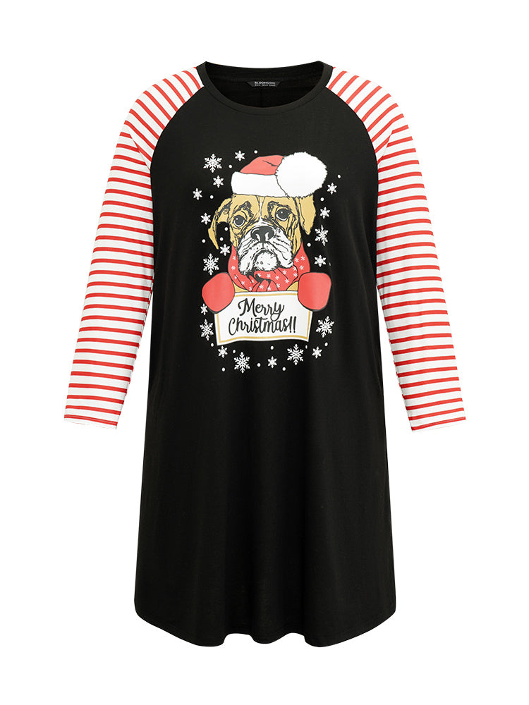 Shop Christmas Graphic Striped Patchwork Pocket Sleep Dress now and redefine your style with confidence at Sweetccc. Tailored for mid and plus-size women. This trendy Loungewear Women. sizes 10-30. Season:Winter;Color:Black;Style:Casual;Neckline:Round Neck;Sleeve Type:Raglan sleeve;Pattern Type:Christmas. Striped;Details:Patchwork. Printed. Contrast. Pocket. Slit;Pocket:It is perfectly sized to carry a phone.;Belt:No-belt