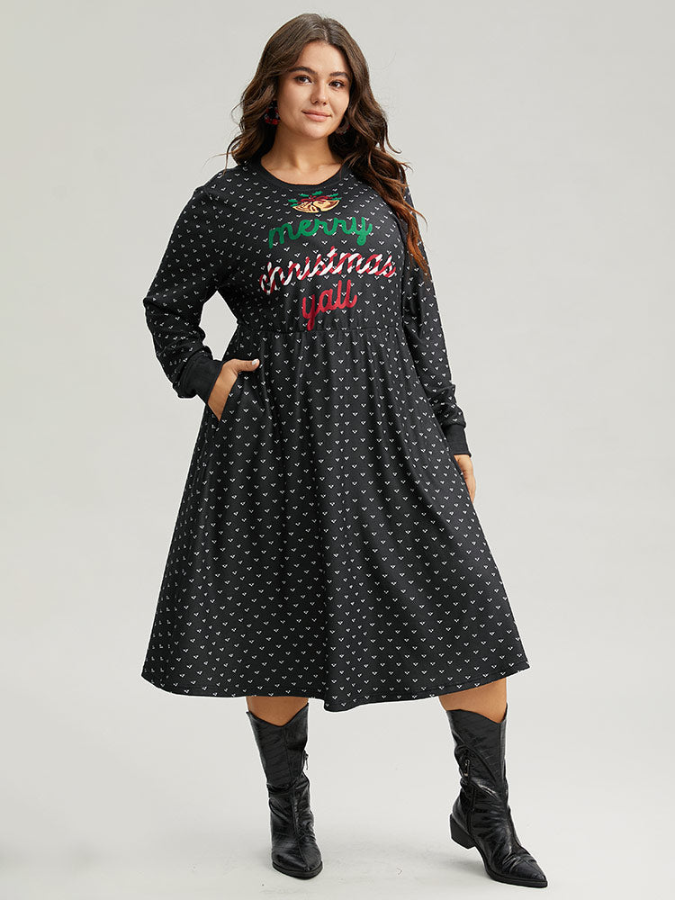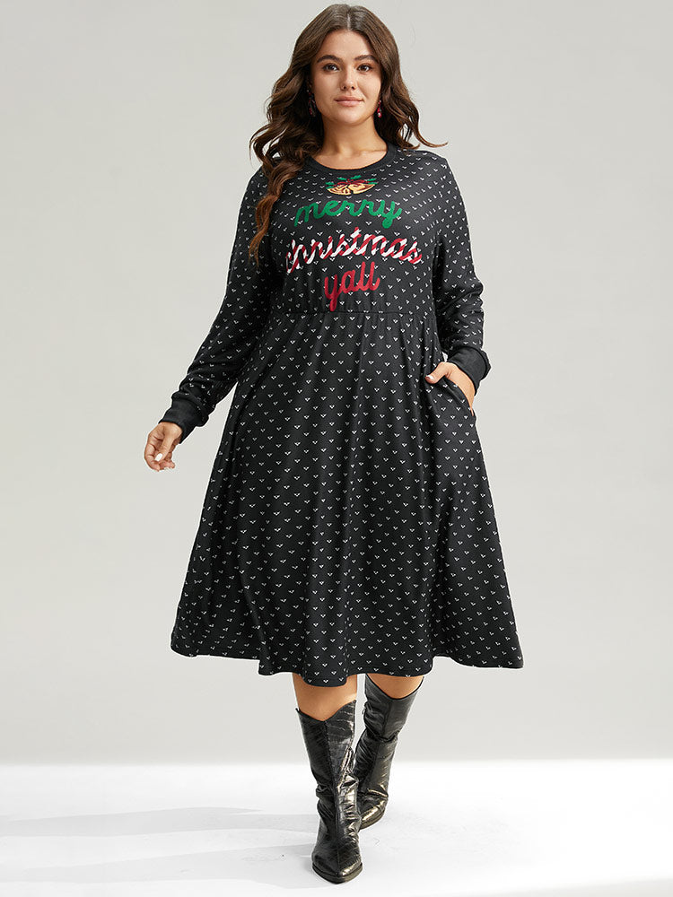 Shop Christmas Letter Print Pocket Elastic Waist Dress now and redefine your style with confidence at Sweetccc. Tailored for mid and plus-size women. This trendy Dress. sizes 10-30. You can never go wrong with Sweetccc Dresses. Season:Winter;Color:Black;Style:Casual;Neckline:Round Neck;Sleeve Type:Regular Sleeve;Pattern Type:Letter. Graphic-Christmas;Details:Pocket. Elastic Waist. Printed;Pocket:It is perfectly sized to carry a phone.;Belt:No-belt