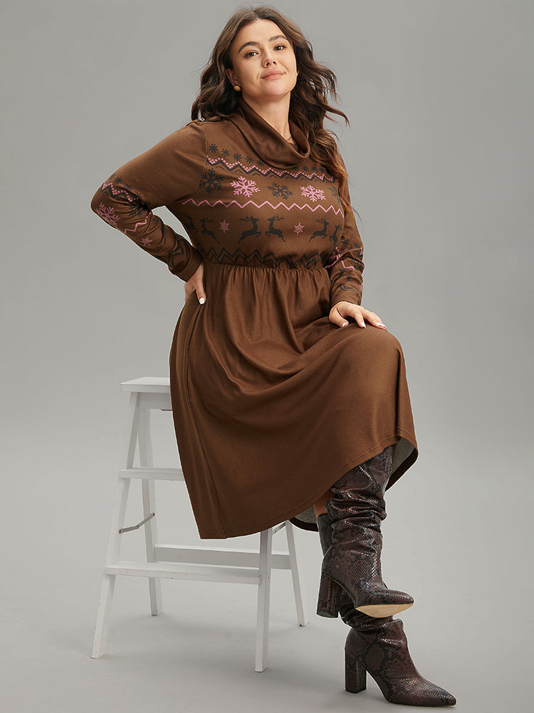 Shop Christmas Print Turtleneck Elastic Waist Gathered Dress now and redefine your style with confidence at Sweetccc. Tailored for mid and plus-size women. This trendy Dress. sizes 10-30. You can never go wrong with Sweetccc Dresses. Season:Winter;Color:Chocolate;Style:Casual;Neckline:Turtleneck;Sleeve Type:Regular Sleeve;Pattern Type:Christmas;Details:Pocket. Elastic Waist. Printed. Gathered;Pocket:It is perfectly sized to carry a phone.;Belt:No-belt
