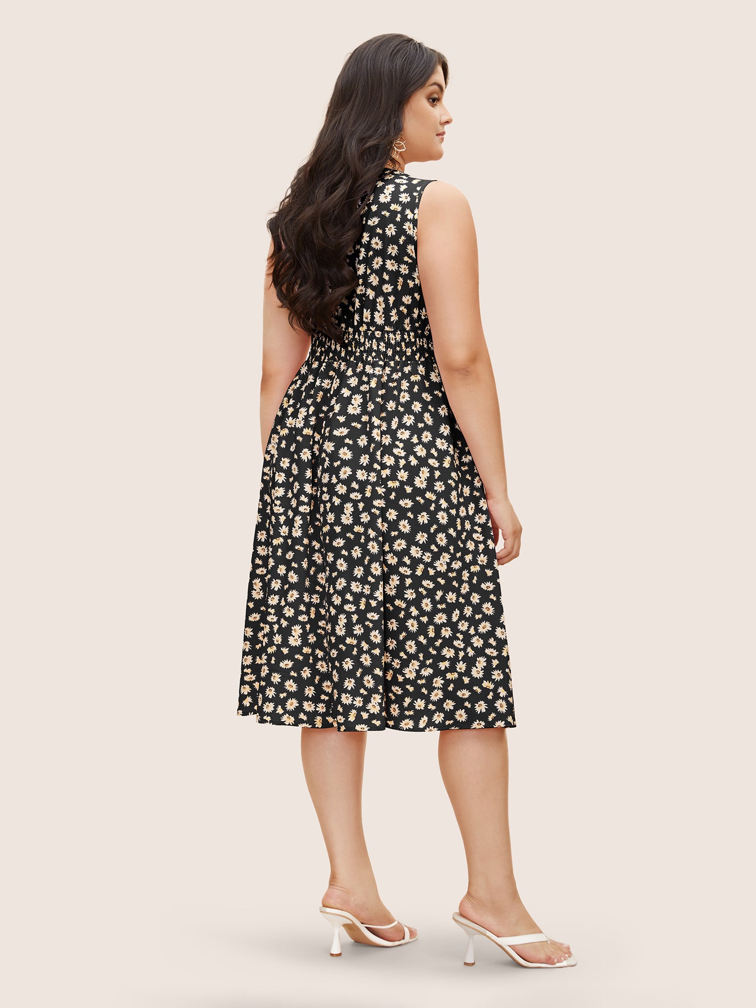 Shop Collared Daisy Midi Dress now and redefine your style with confidence at Sweetccc. Tailored for mid and plus-size women. This trendy Dress. sizes 10-30. You can never go wrong with Sweetccc Dresses. Season:Fall;Color:Black;Style:Elegant;Neckline:Lapel Collar;Sleeve Type:Sleeveless;Prints:Ditsy floral;Details:Gathered. Button;Pocket:Side seam pocket;Belt:No-belt;Closure Type:Non