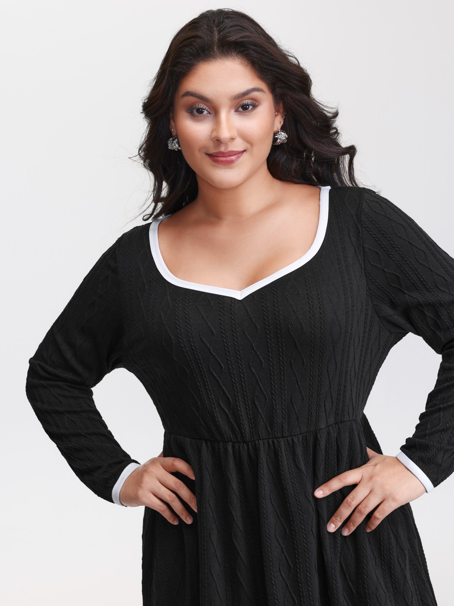Shop Color Contrast Pockets Knit Maxi Dress now and redefine your style with confidence at Sweetccc. Tailored for mid and plus-size women. This trendy Dresses Women. sizes 10-30. Color:Black;Neckline:Heart neckline;Sleeve Type:Regular Sleeve;Prints:Geometric & color block;Pocket:Side seam pocket;Belt:No-belt;Closure Type:Non