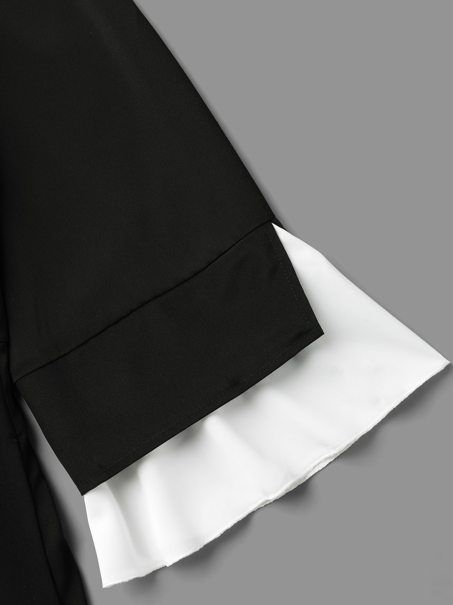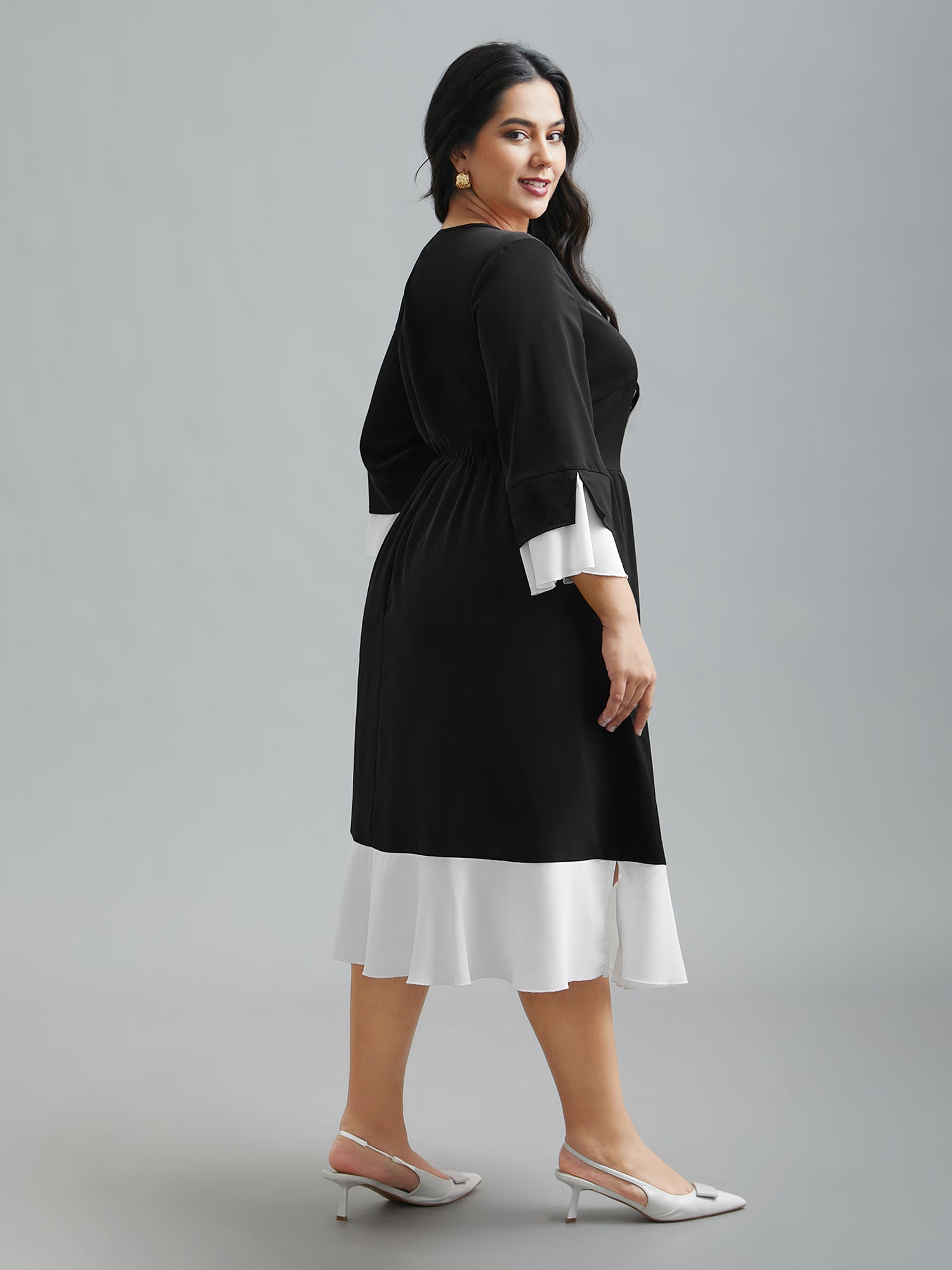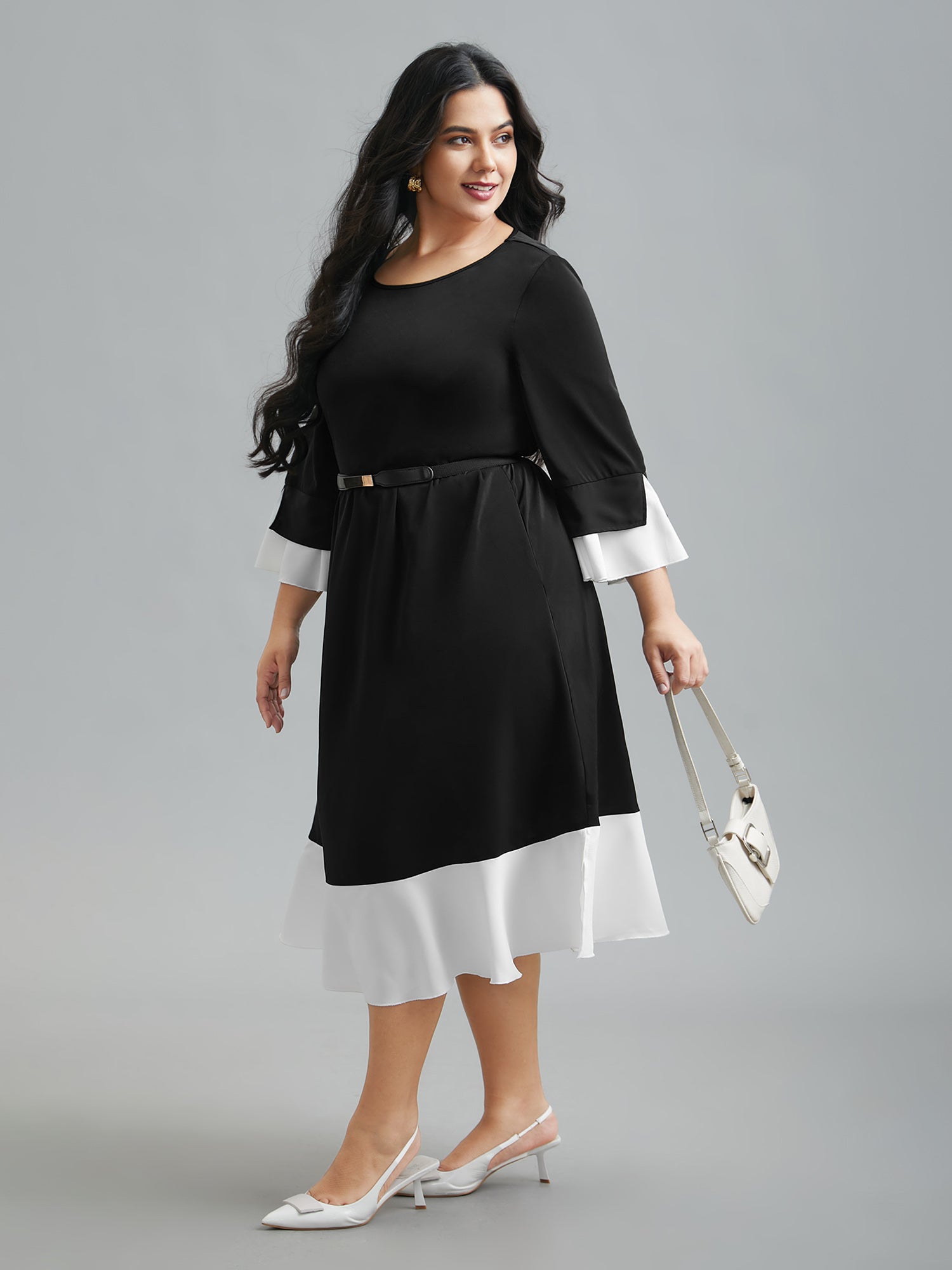Shop Color Contrast Tiered Skirt Pocket Midi Dress now and redefine your style with confidence at Sweetccc. Tailored for mid and plus-size women. This trendy Dress. sizes 10-30. You can never go wrong with Sweetccc Dresses. Season:Winter;Color:Black;Style:At the Office;Neckline:Round Neck;Sleeve Type:Ruffle Sleeve;Prints:Non;Details:Contrast. Patchwork;Pocket:Side seam pocket;Belt:No-belt;Closure Type:Non