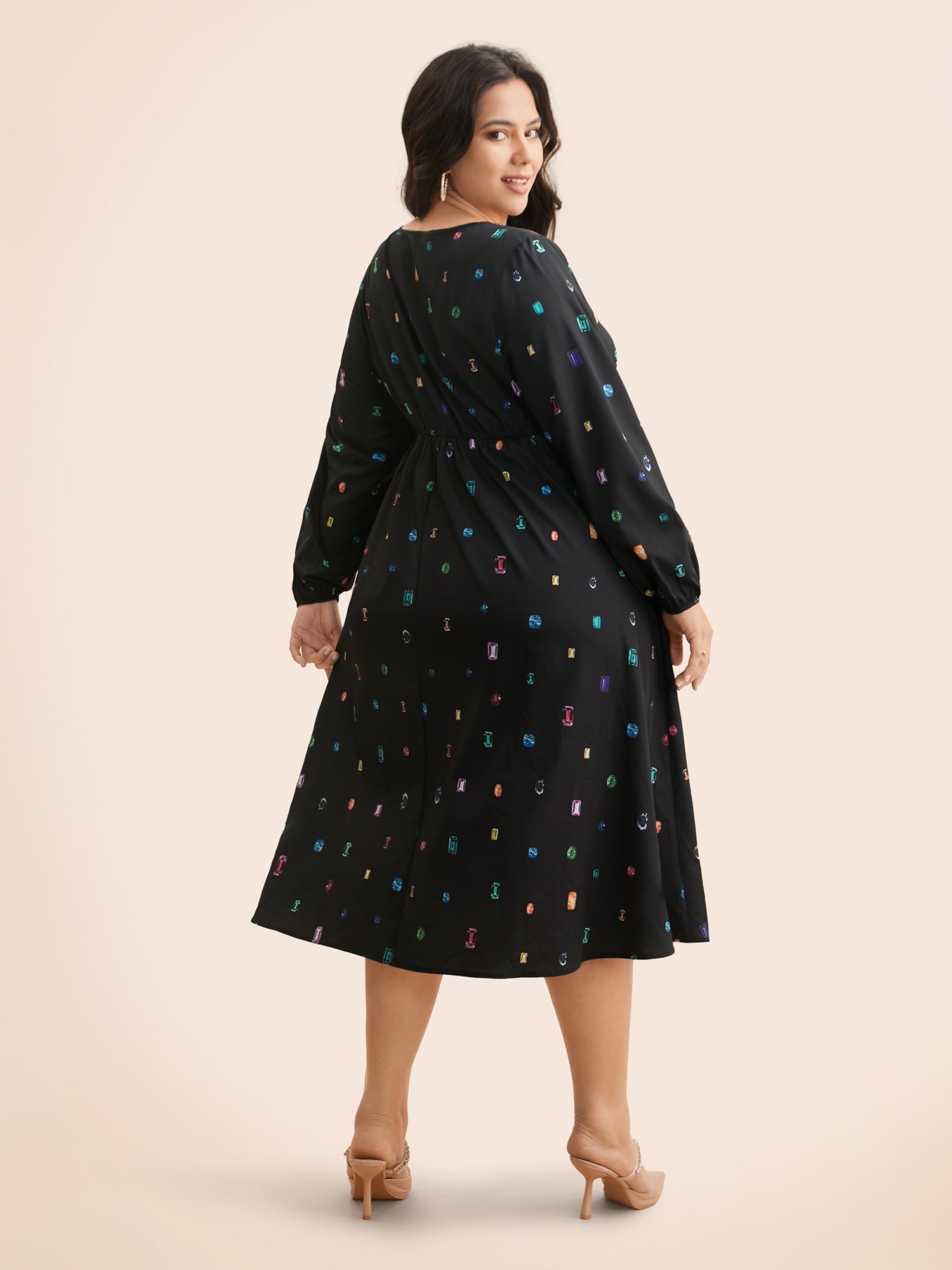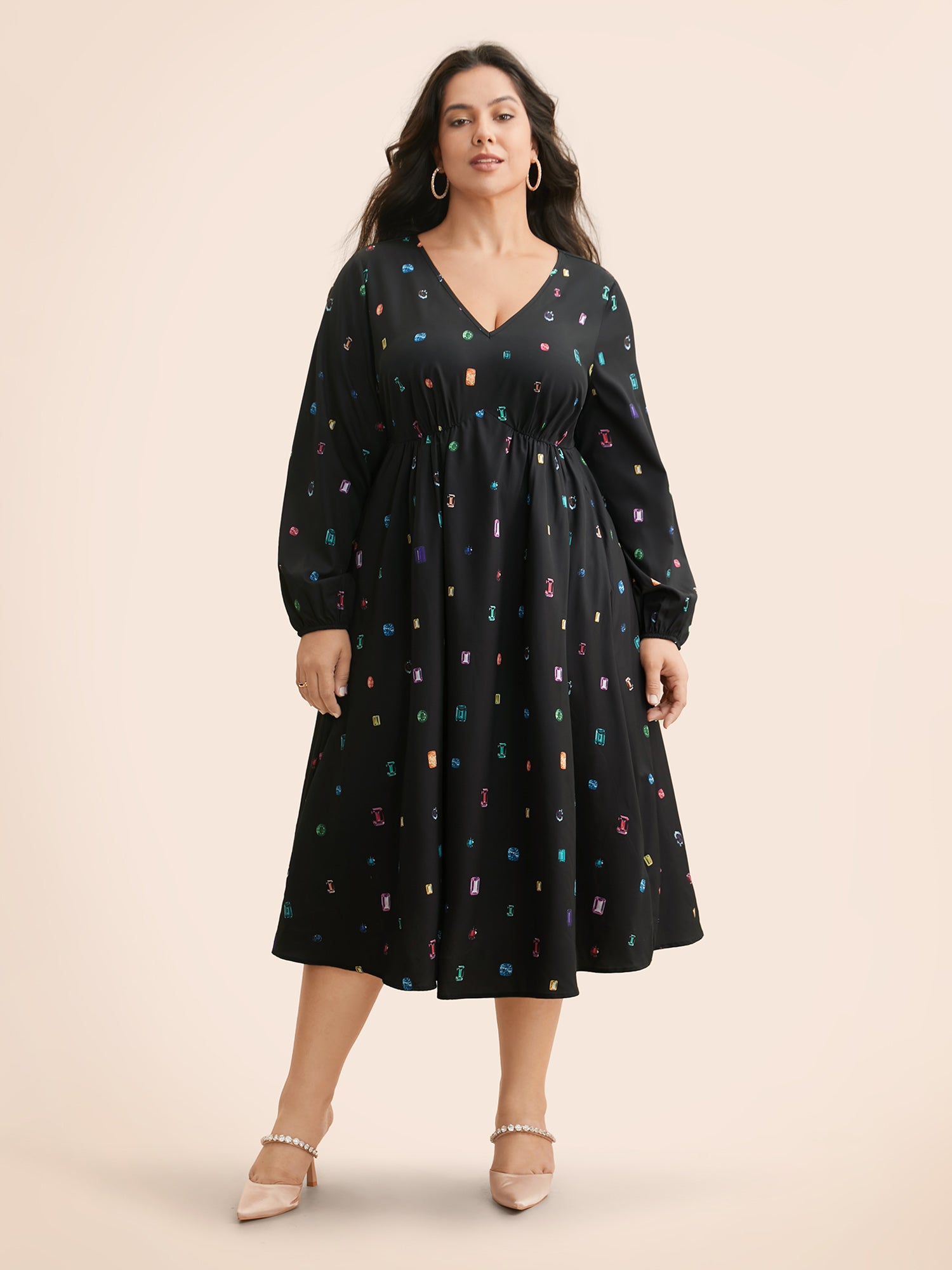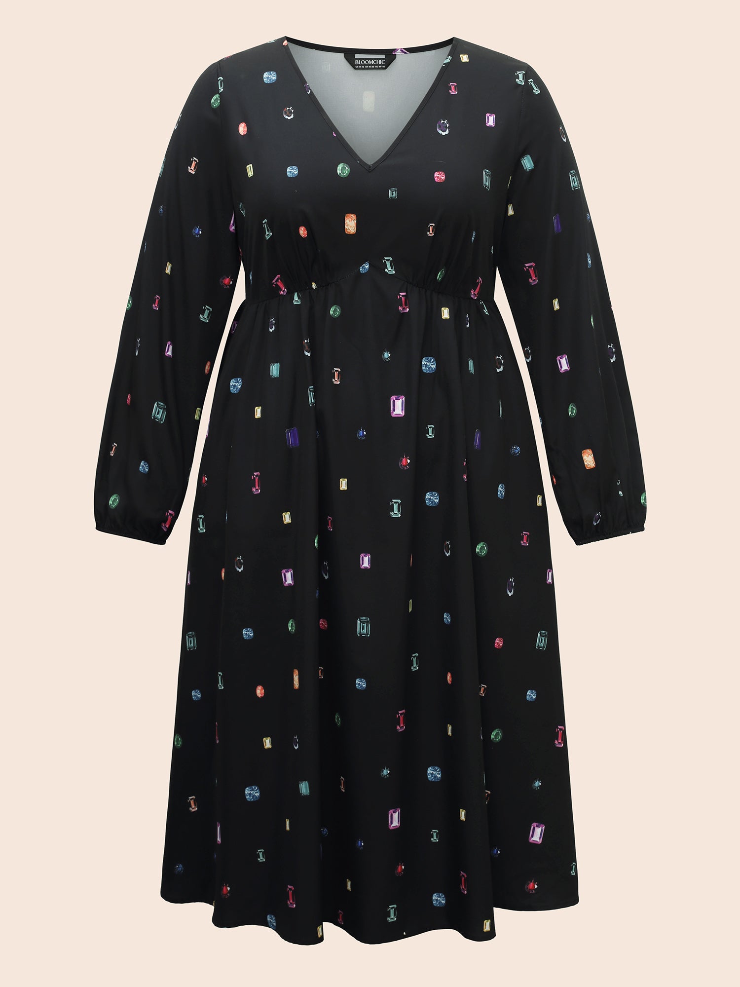 Shop Color Diamond Print V Neck Dress now and redefine your style with confidence at Sweetccc. Tailored for mid and plus-size women. This trendy Dresses Women. sizes 10-30. Season:Winter;Color:Black;Style:Cocktail;Neckline:V-neck;Sleeve Type:Regular Sleeve;Prints:Geometric & color block;Details:Non;Pocket:Side seam pocket;Belt:No-belt;Closure Type:Non