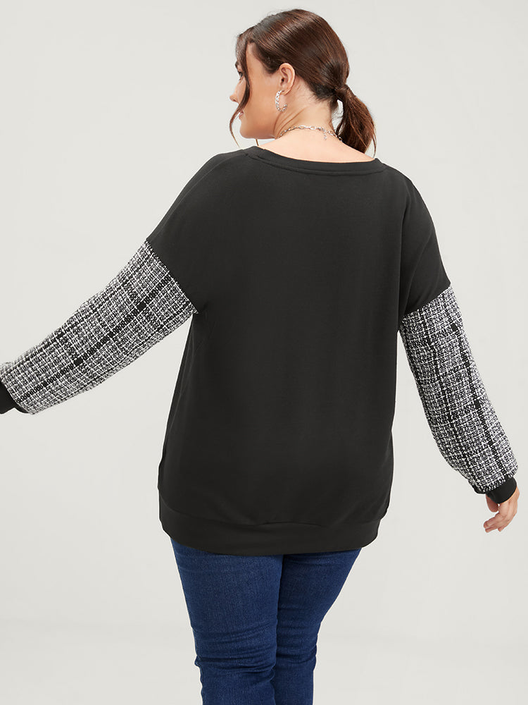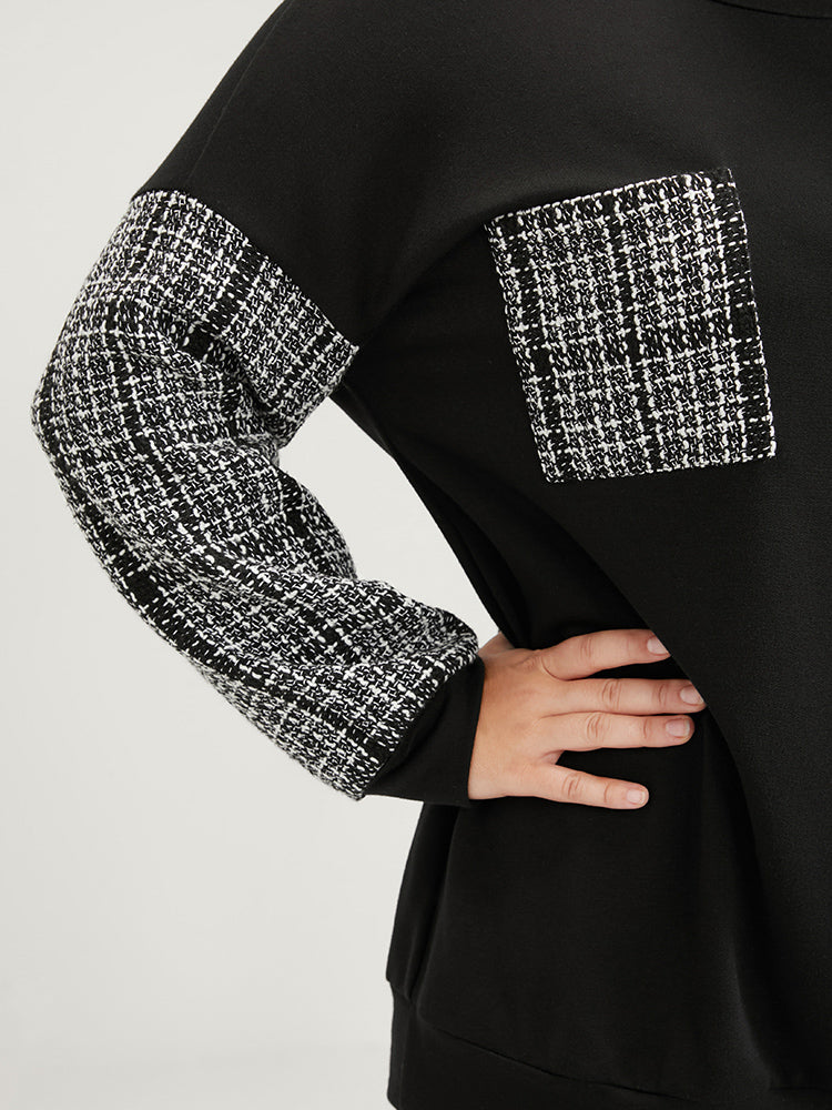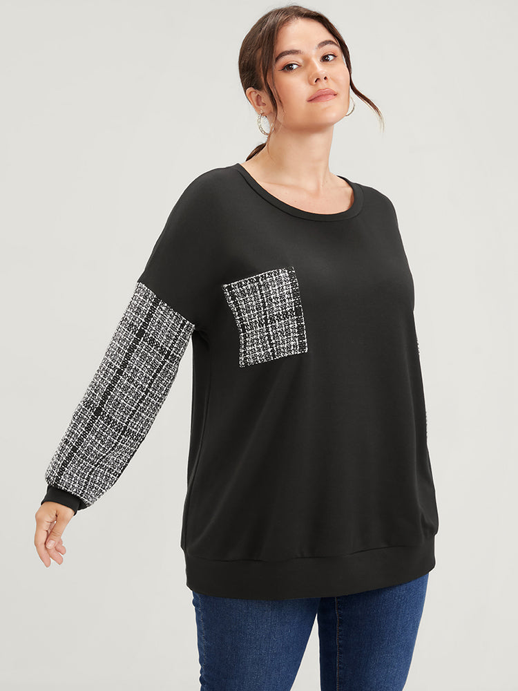 Shop Colorblock Contrast Pocket Raw Trim Drop Shoulder Sweatshirt now and redefine your style with confidence at Sweetccc. Tailored for mid and plus-size women. This trendy Tops Women. sizes 10-30. Season:Winter;Color:Black;Neckline:Round Neck;Sleeve Type:Regular Sleeve;Details:Pocket. Patchwork;Pocket:It is perfectly sized to carry a phone.;Belt:No-belt