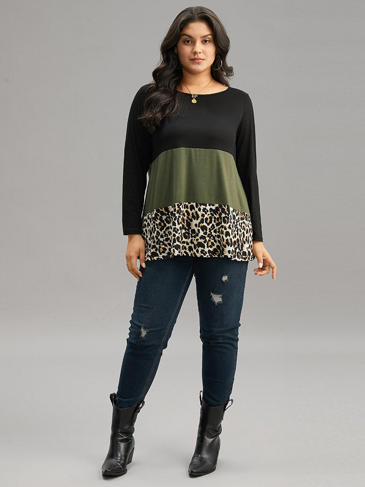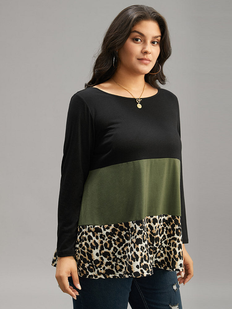 Shop Colorblock Leopard Contrast Round Neck T-shirt at Sweetccc. Plus Size Clothing & Plus Size T-shirts. Sweetccc is a digital-first fashion and lifestyle destination for modern women sizes 10-30.