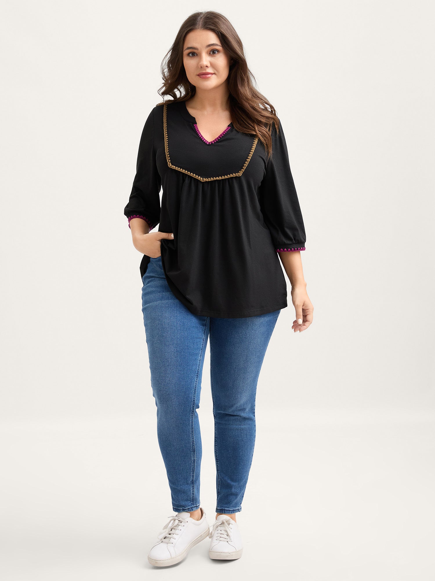 Shop Contrast Embroidery Thread Detail T-Shirt at Sweetccc. Plus Size Clothing & Plus Size T-shirts. Sweetccc is a digital-first fashion and lifestyle destination for modern women sizes 10-30.