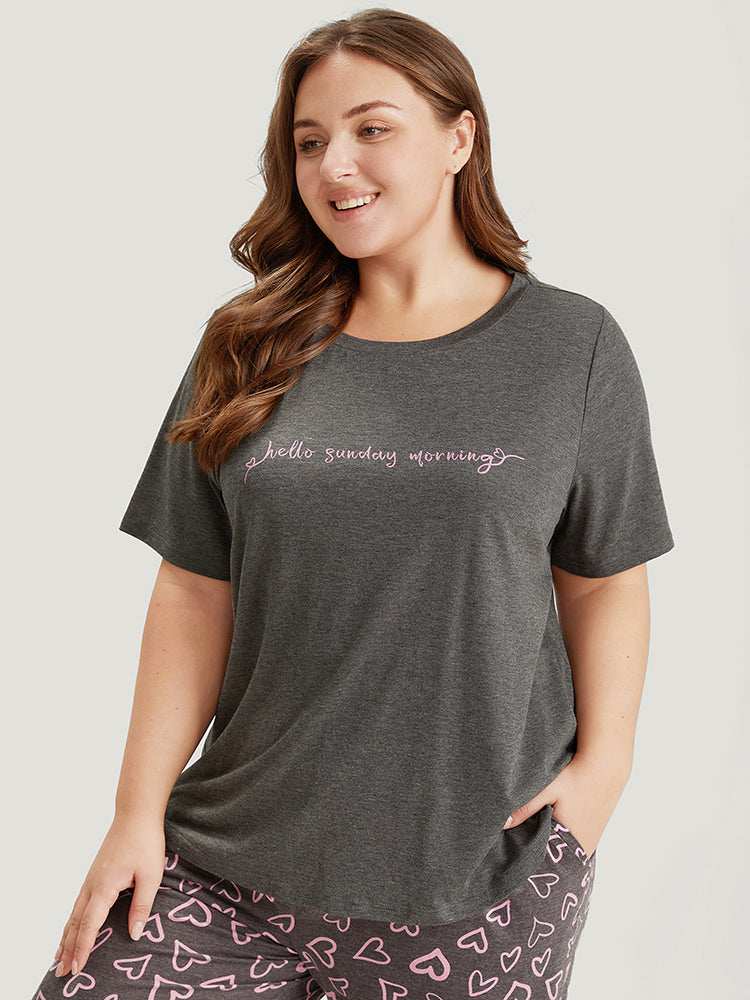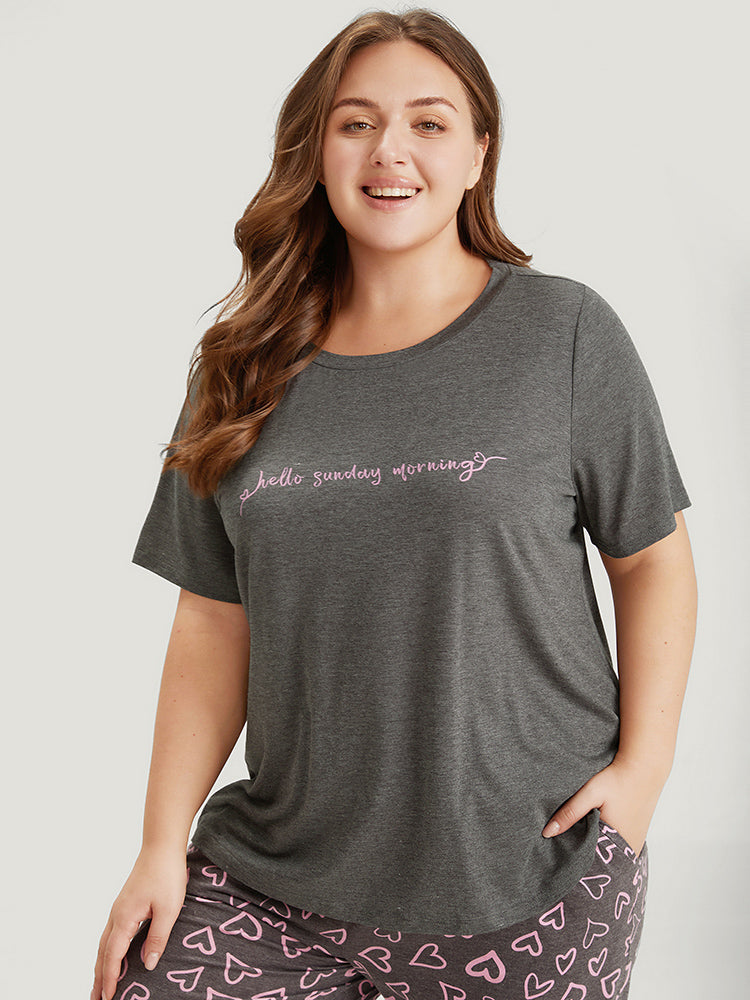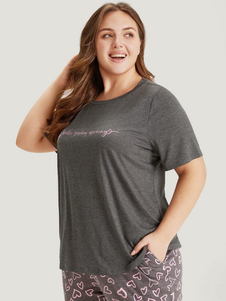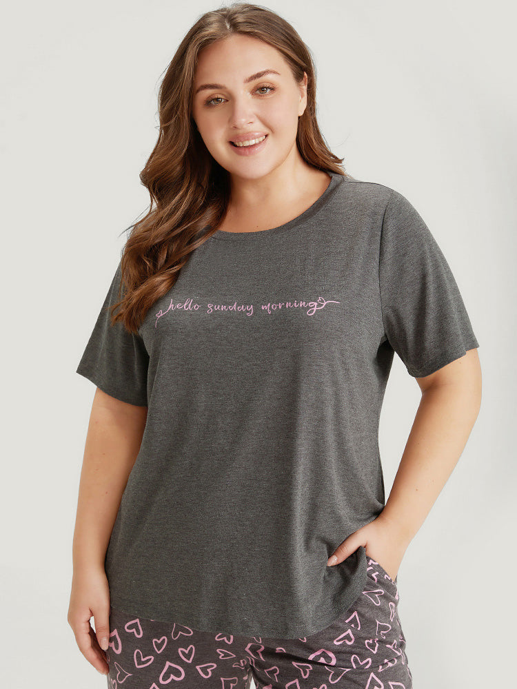 Shop Contrast Letter Heather Sleep Top now and redefine your style with confidence at Sweetccc. Tailored for mid and plus-size women. This trendy Loungewear Women. sizes 10-30. Season:Summer;Color:Gray;Style:Casual;Pattern Type:Letter;Details:Printed. Heather. Contrast;Belt:No-belt