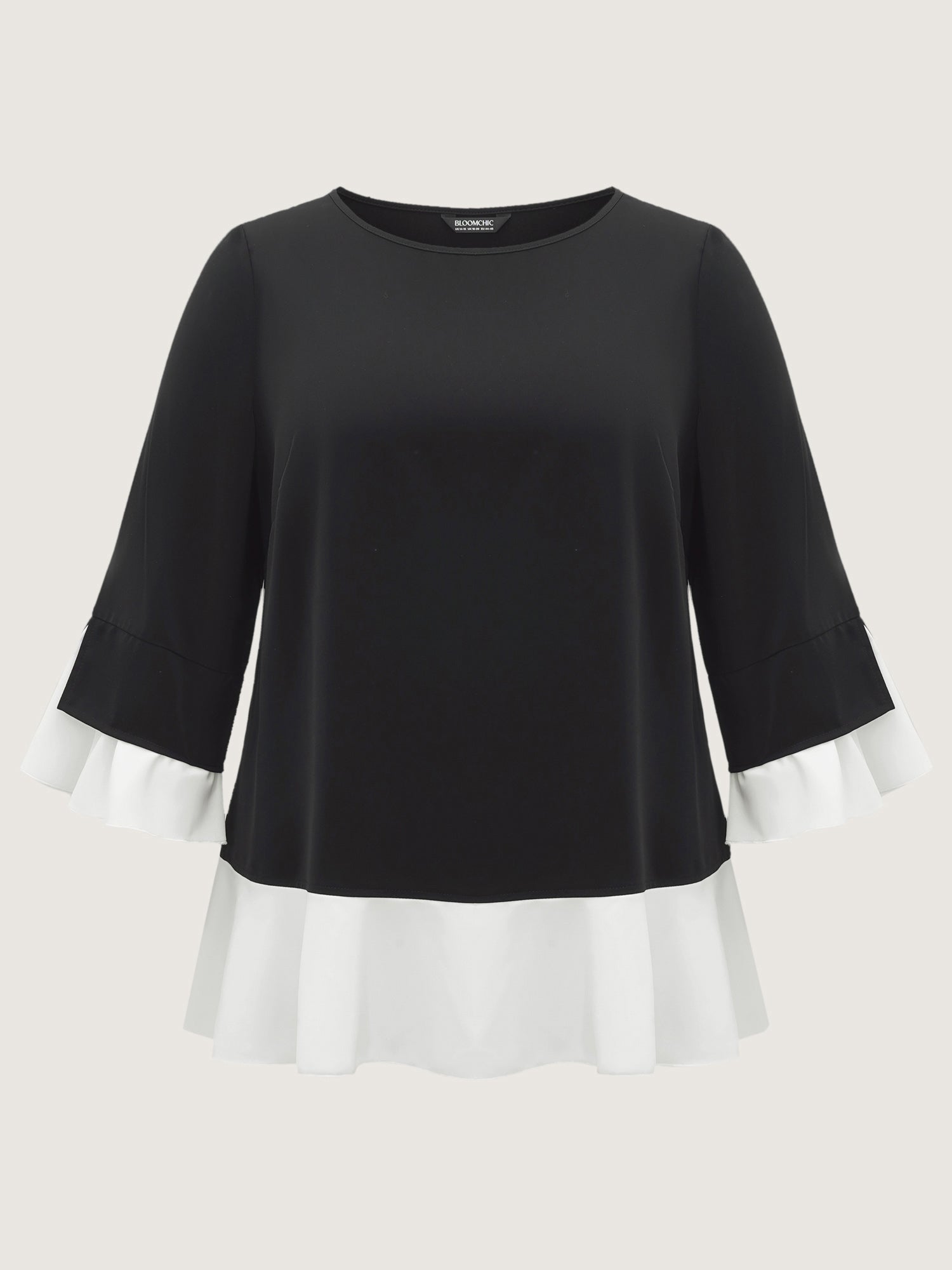 Shop Contrast Patchwork Bell Sleeve Blouse now and redefine your style with confidence at Sweetccc. Tailored for mid and plus-size women. This trendy Tops Women. sizes 10-30. Color:Scarlet.Black.Deeppurplered;Style:Elegant;Prints:Non;Neckline:Round Neck;Sleeve Type:Bell Sleeve;Details:Patchwork. Contrast. Slit;Pocket:No-pocket