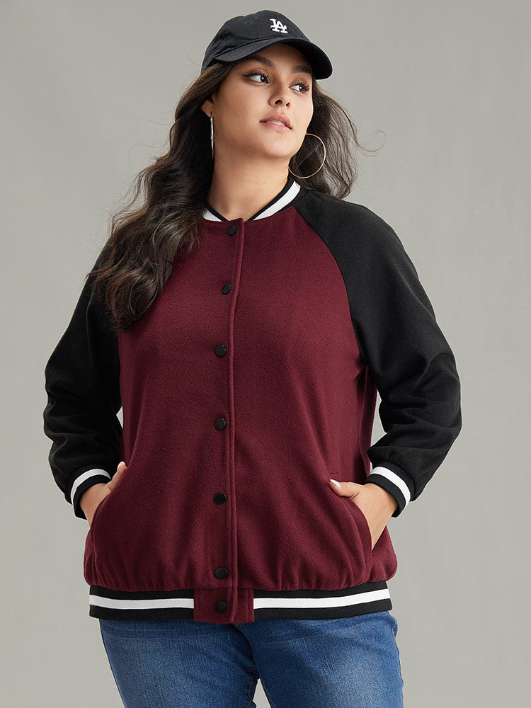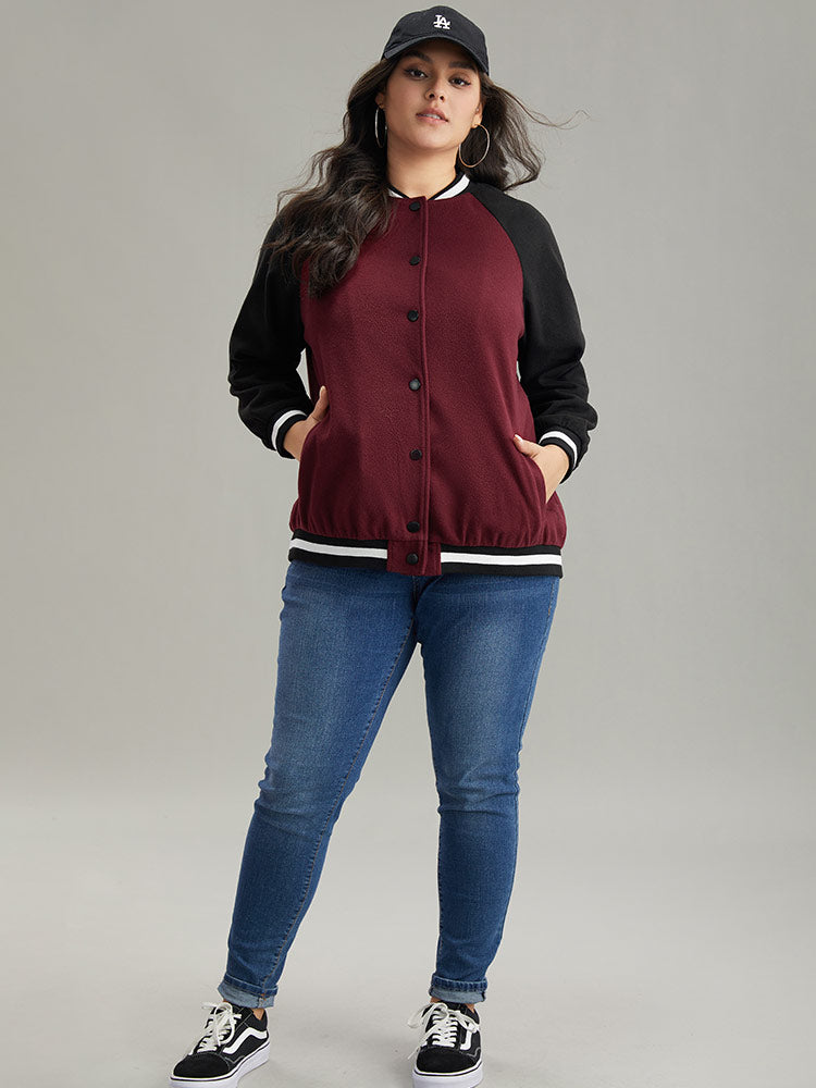 Shop Contrast Trim Pocket Button Fly Bomber Jacket now and redefine your style with confidence at Sweetccc. Tailored for mid and plus-size women. This trendy Outerwear Women. sizes 10-30. Season:Winter;Color:Burgundy;Style:Casual;Pattern Type:Plain;Details:Pocket. Button. Patchwork. Contrast;Pocket:It is perfectly sized to carry a phone.;Belt:No-belt;Closure Type:Button;Lining:No-lining