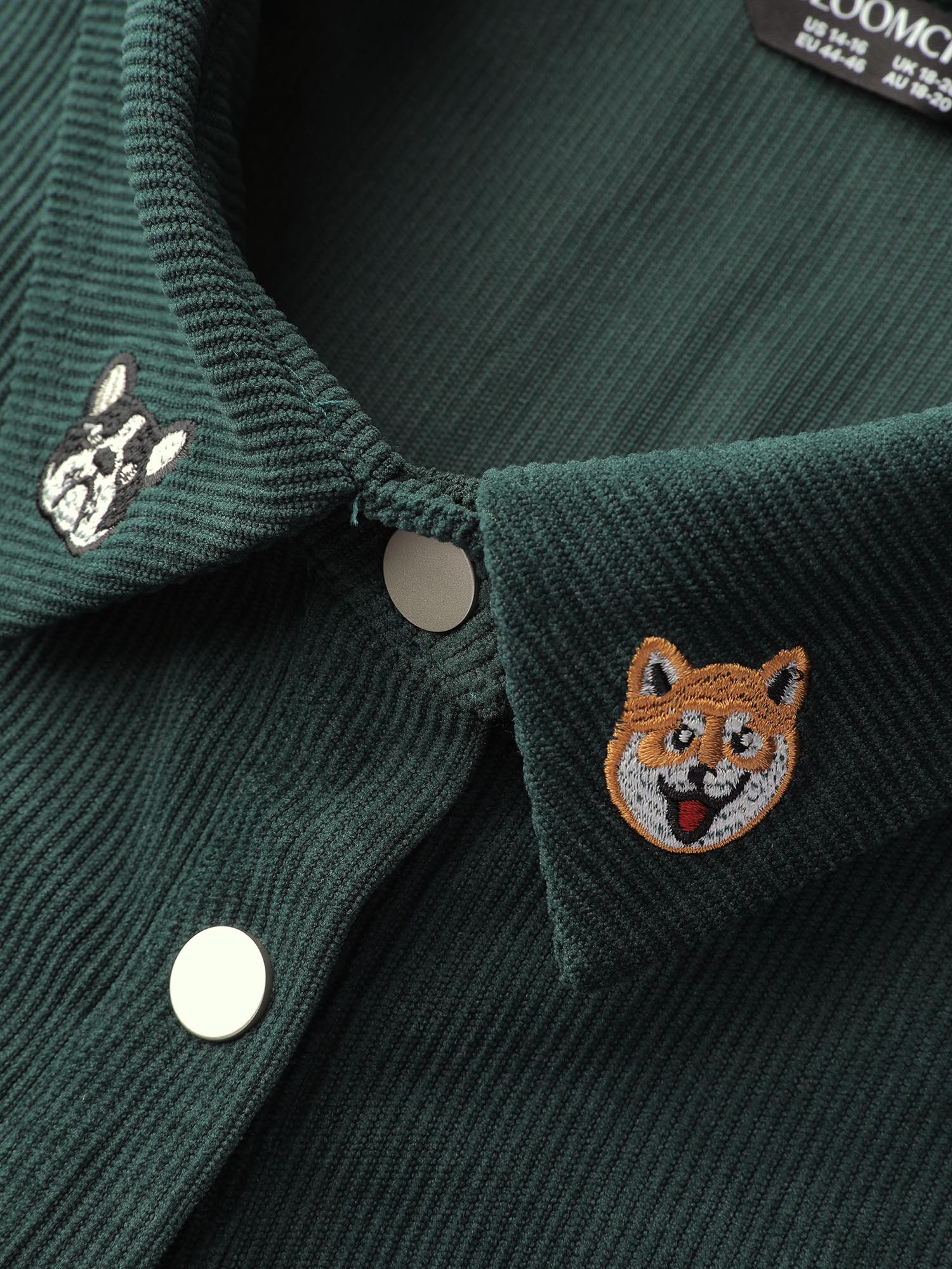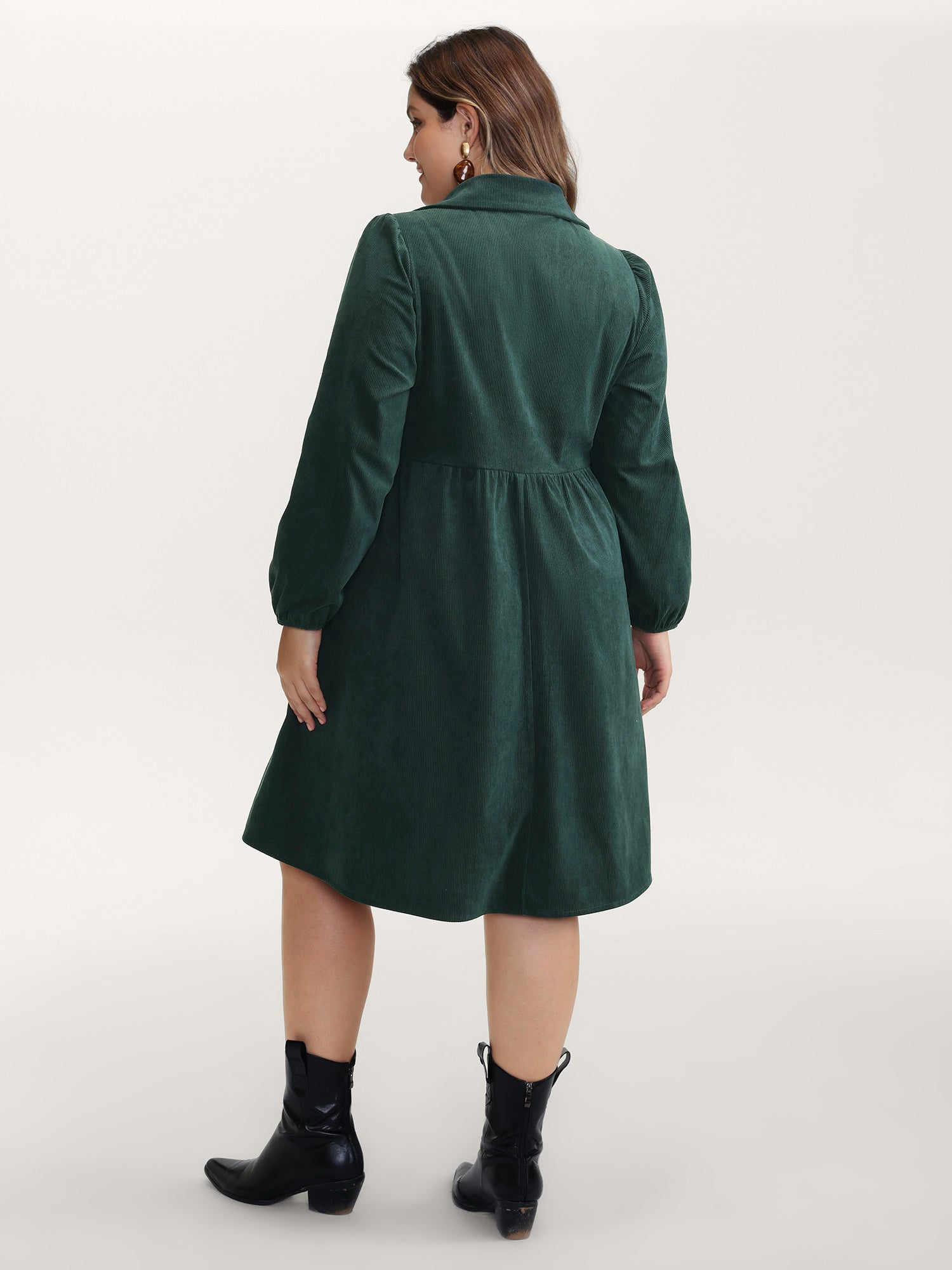 Shop Corduroy Embroidered Midi Shirt Dress now and redefine your style with confidence at Sweetccc. Tailored for mid and plus-size women. This trendy Dress. sizes 10-30. You can never go wrong with Sweetccc Dresses. Color:DarkGreen;Neckline:Shirt collar;Sleeve Type:Elastic cuff;Prints:Non;Pocket:Side seam pocket;Belt:No-belt;Closure Type:Open front with closure