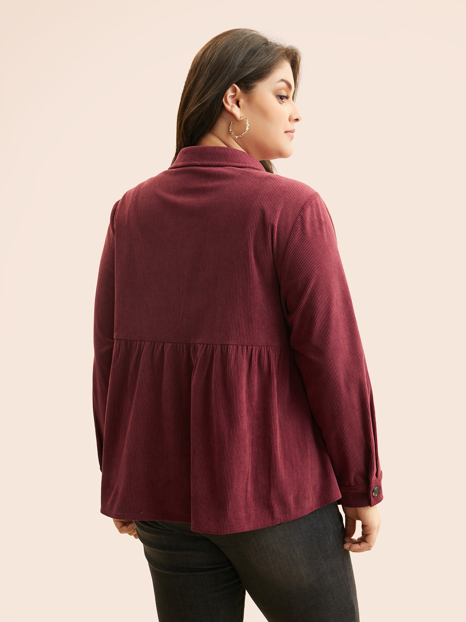 Shop Corduroy Collared Flap Detail Jacket now and redefine your style with confidence at Sweetccc. Tailored for mid and plus-size women. This trendy Outerwear Women. sizes 10-30. Color:Scarlet.DarkGreen;Style:Elegant;Prints:Non;Details:Button. Gathered;Pocket:No-pocket;Belt:No-belt;Closure Type:Open front with closure;Lining:No-lining