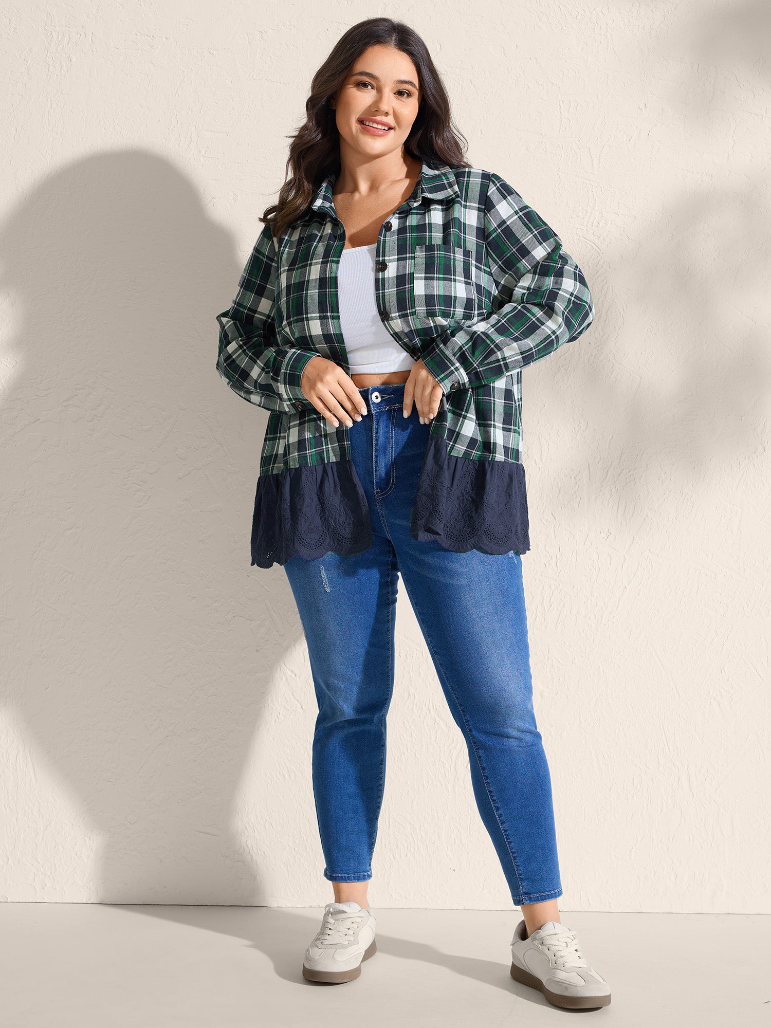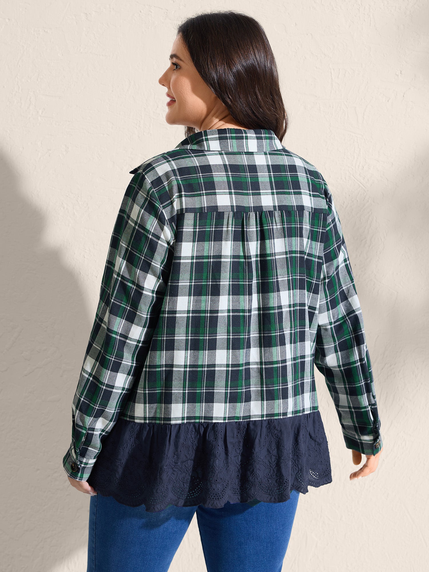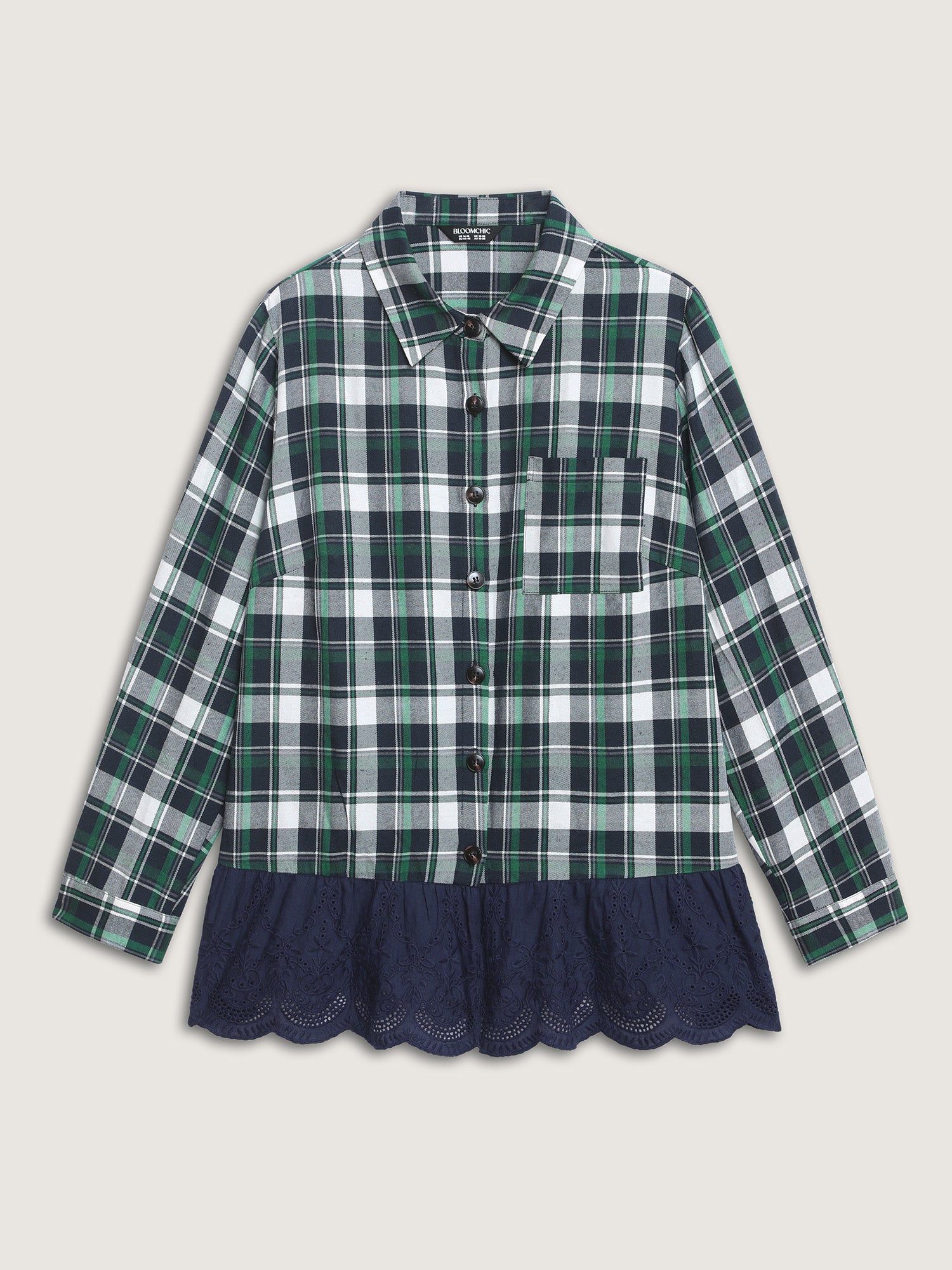 Shop Cotton Embroidery Plaid Spliced Blouse now and redefine your style with confidence at Sweetccc. Tailored for mid and plus-size women. This trendy Tops Women. sizes 10-30. Color:Indigo;Prints:Plaid;Neckline:Shirt collar;Sleeve Type:Regular Sleeve;Details:Button. Contrast;Pocket:Patch pocket