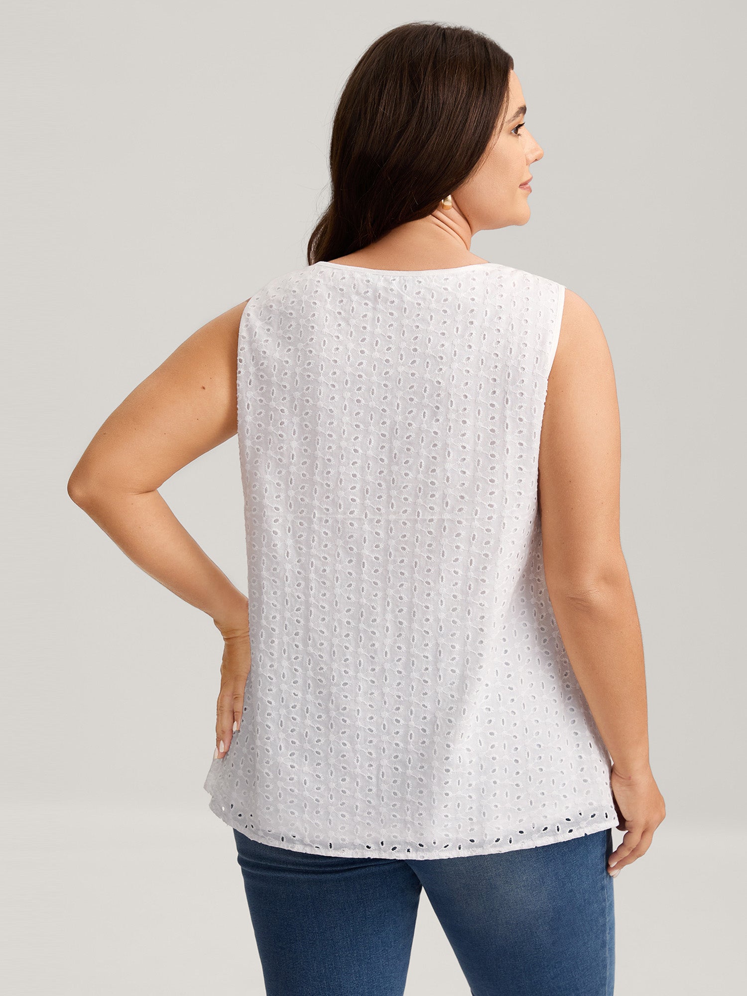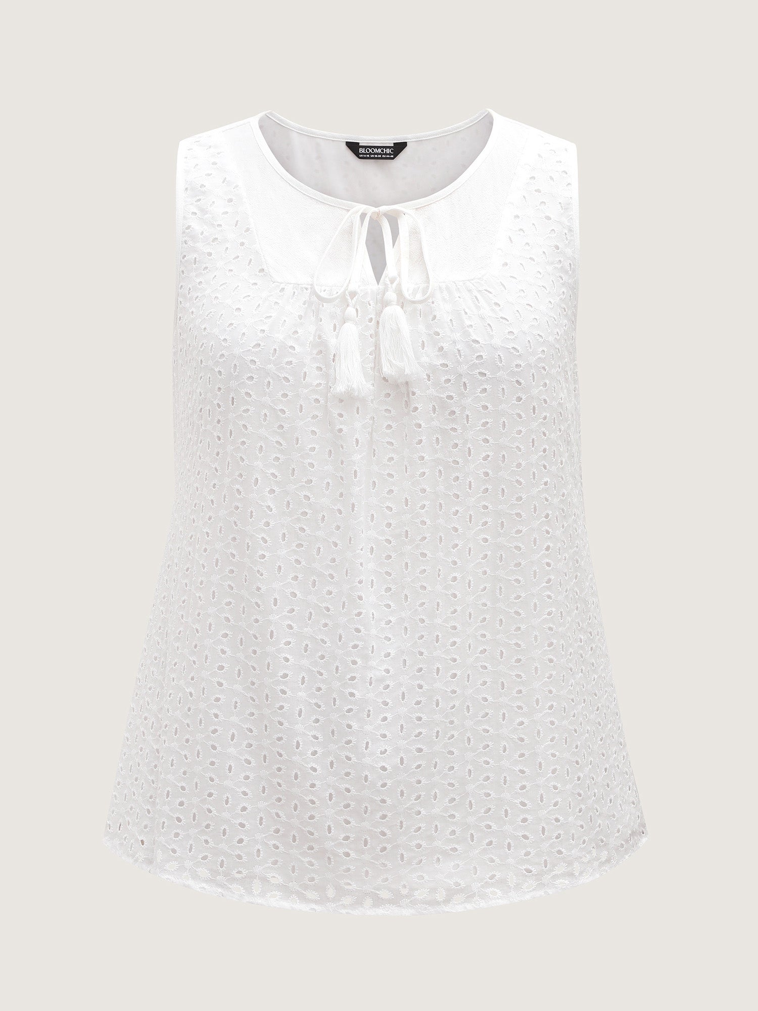 Shop Cotton Eyelet Embroidered Tank Top now and redefine your style with confidence at Sweetccc. Tailored for mid and plus-size women. This trendy Tops Women. sizes 10-30. Color:Originalwhite;Prints:Synthetic texture;Neckline:V-neck;Sleeve Type:Sleeveless;Details:Tie knot. Texture. Tassels;Pocket:No-pocket