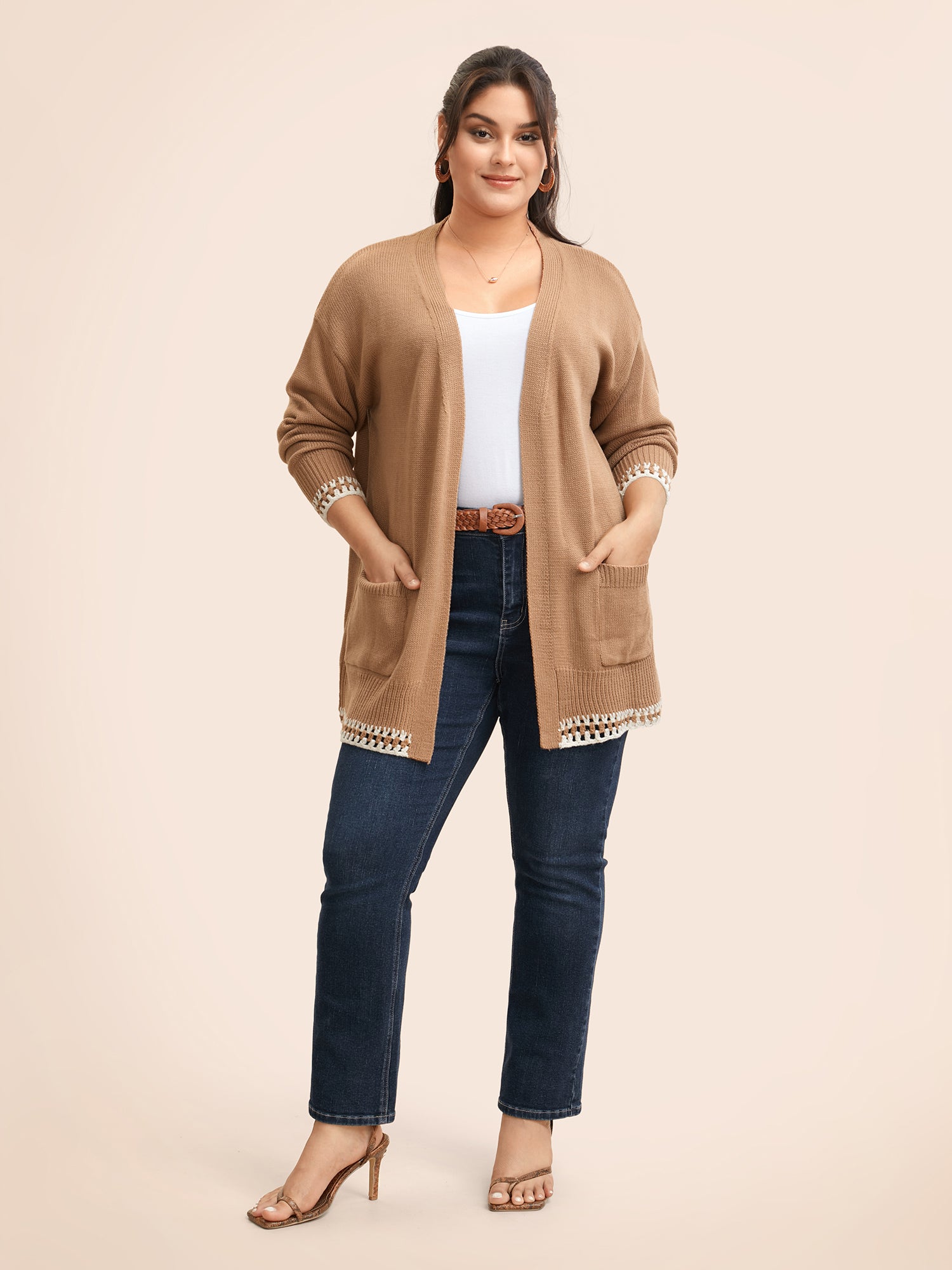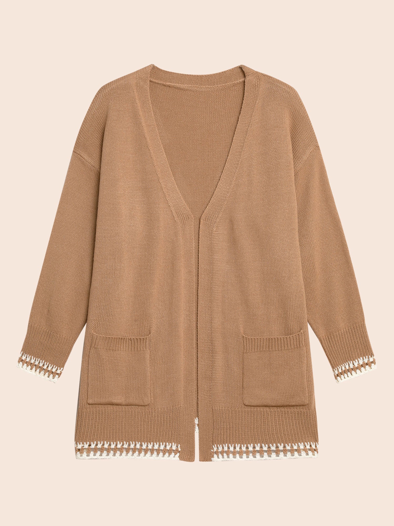 Shop Crochet Contrast Wool Blend Cardigan now and redefine your style with confidence at Sweetccc. Tailored for mid and plus-size women. This trendy Sweaters Cardigans Women. sizes 10-30. Season:Winter;Color:Tan;Style:Casual Everyday;Neckline:Kimono collar;Sleeve Type:Drop shoulder sleeve;Prints:Non;Details:Crochet. Contrast;Pocket:Patch pocket;Belt:No-belt;Closure Type:Open front without closure