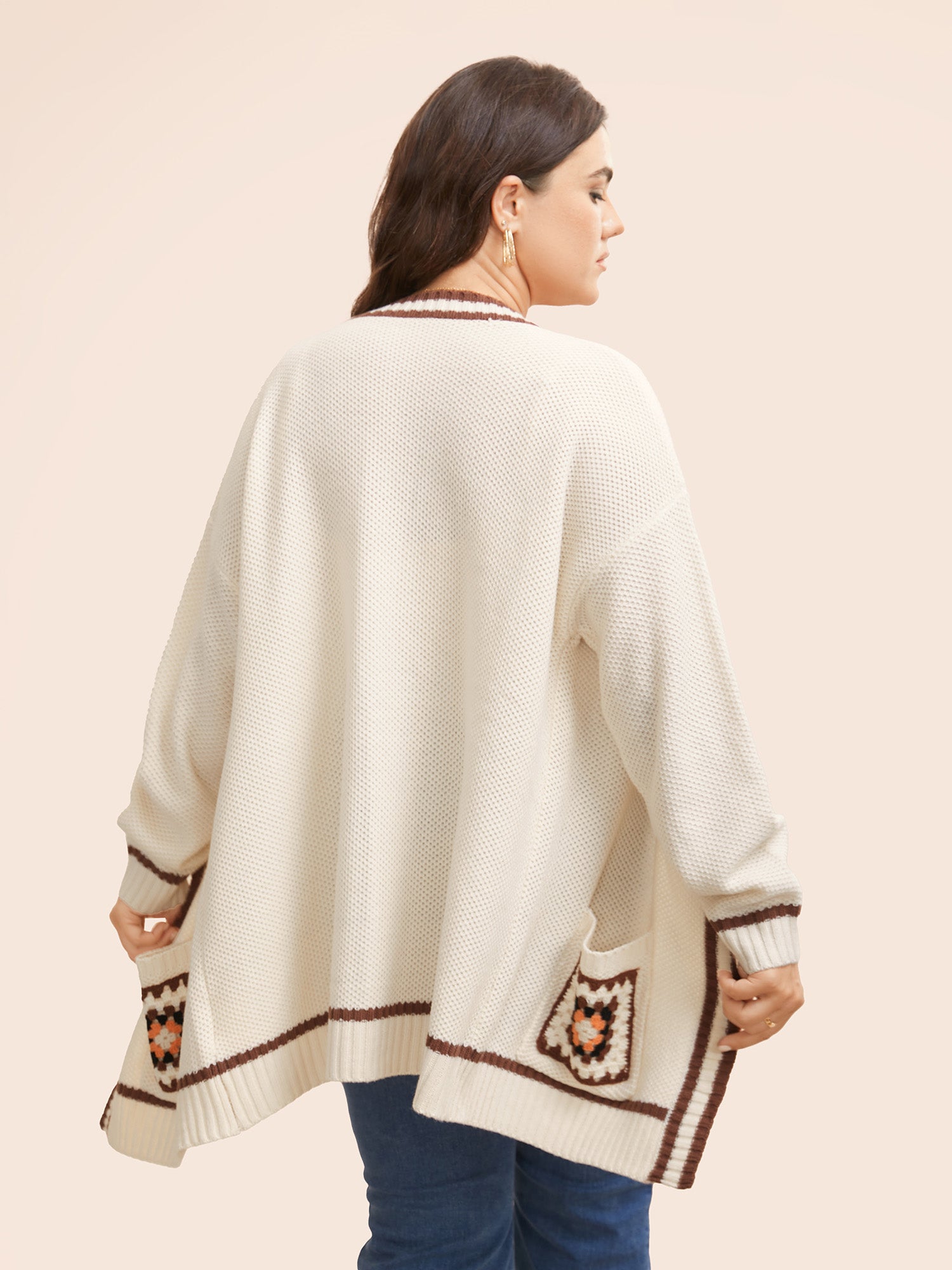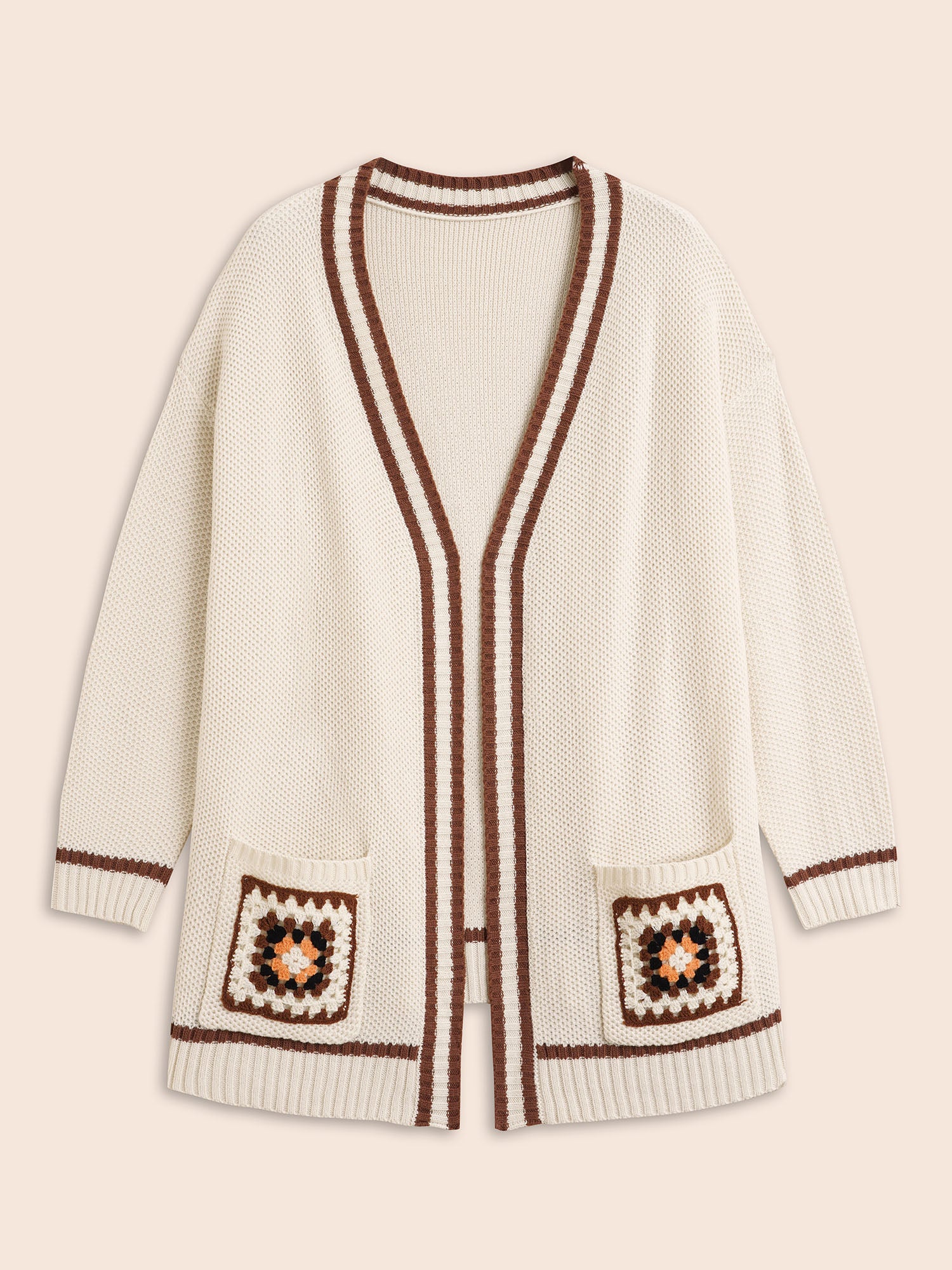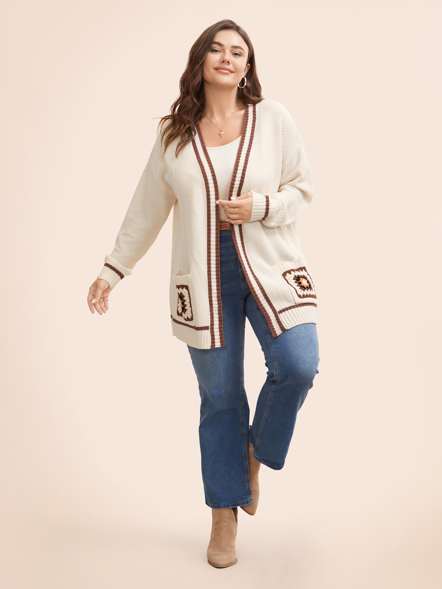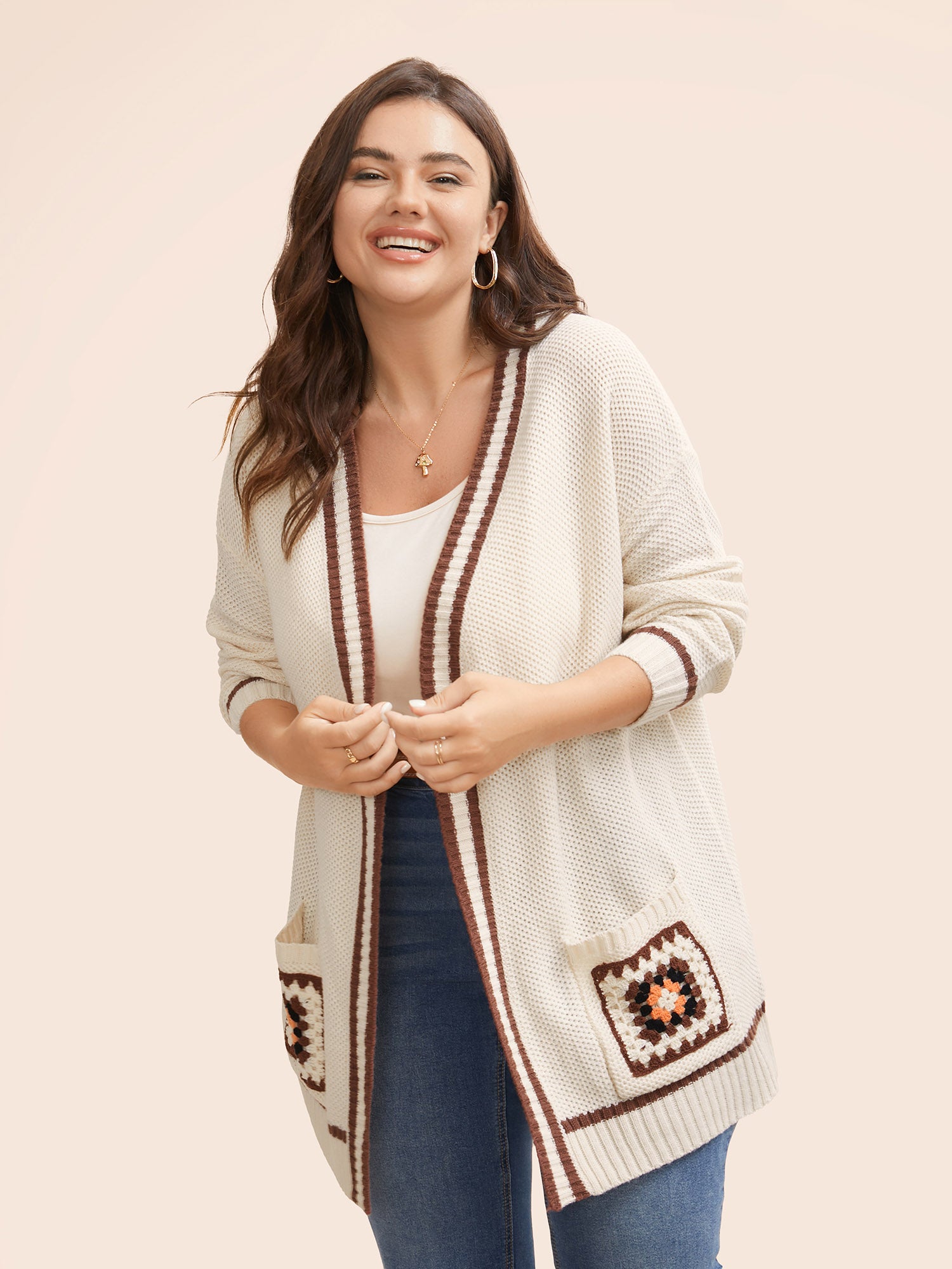 Shop Crochet Floral Patch Pocket Drop Shoulder Cardigan now and redefine your style with confidence at Sweetccc. Tailored for mid and plus-size women. This trendy Sweaters Cardigans Women. sizes 10-30. Color:Beige;Style:Casual Everyday;Neckline:Kimono collar;Sleeve Type:Drop shoulder sleeve;Prints:Non;Details:Crochet. Texture;Pocket:Patch pocket;Belt:No-belt;Closure Type:Open front without closure