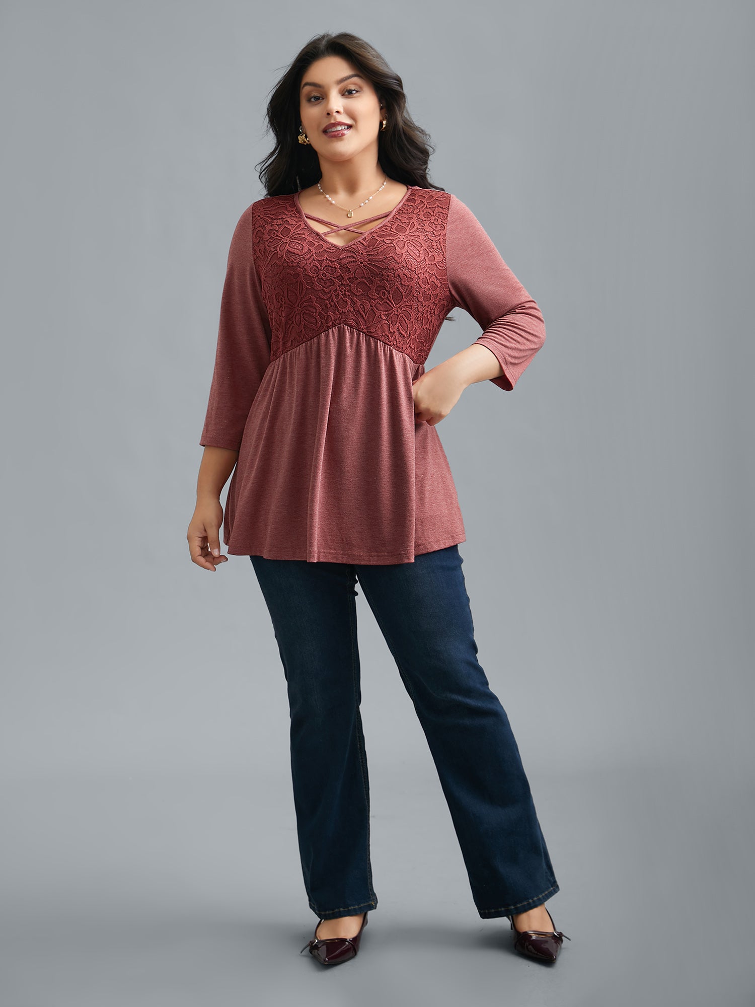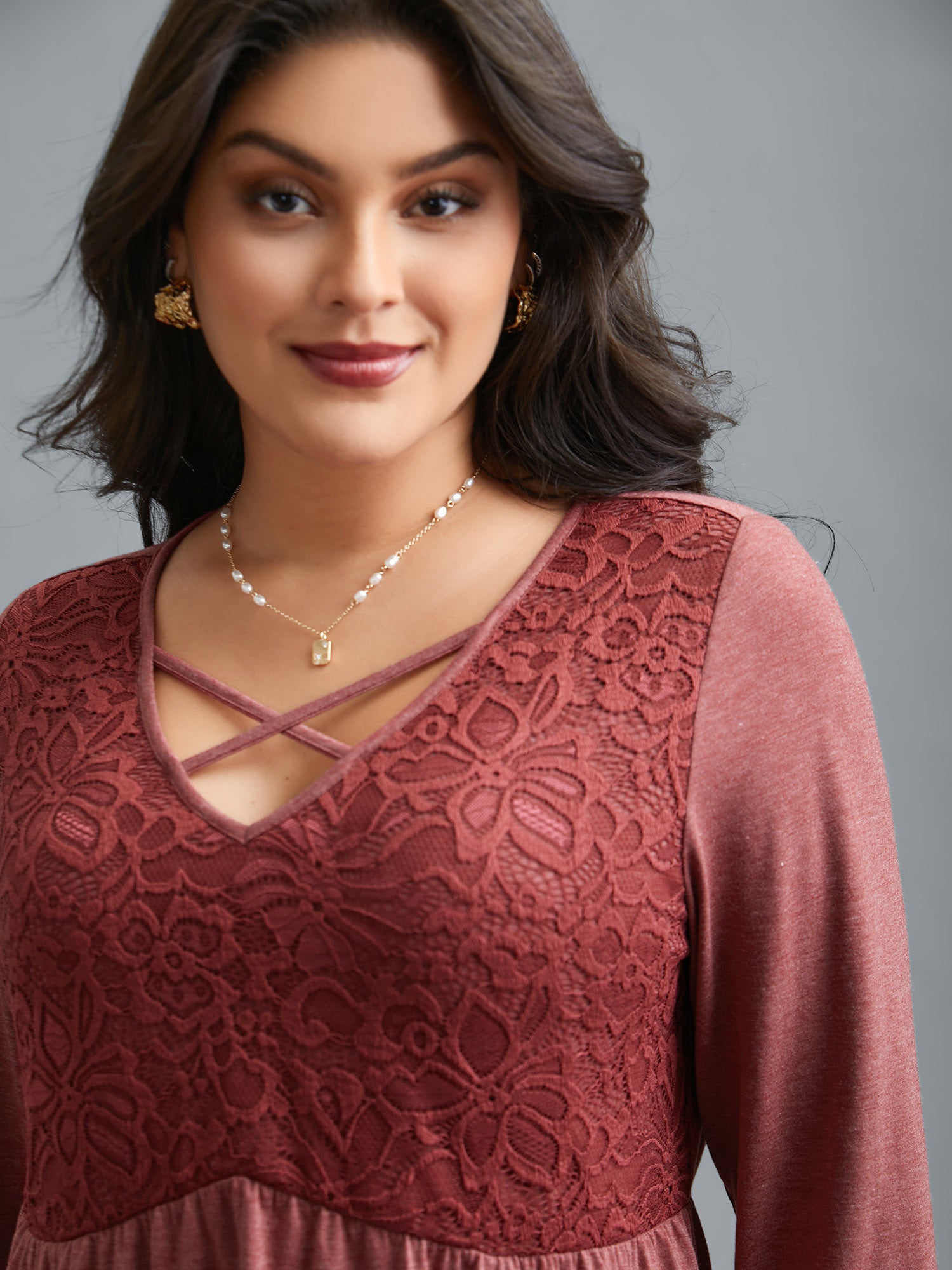 Shop Crochet Lace Crisscross Gathered Top now and redefine your style with confidence at Sweetccc. Tailored for mid and plus-size women. This trendy Tops Women. sizes 10-30. Season:Spring;Color:Rust;Style:Elegant;Prints:Non;Neckline:V-neck;Sleeve Type:Regular Sleeve;Details:Patchwork. Gathered;Pocket:No-pocket