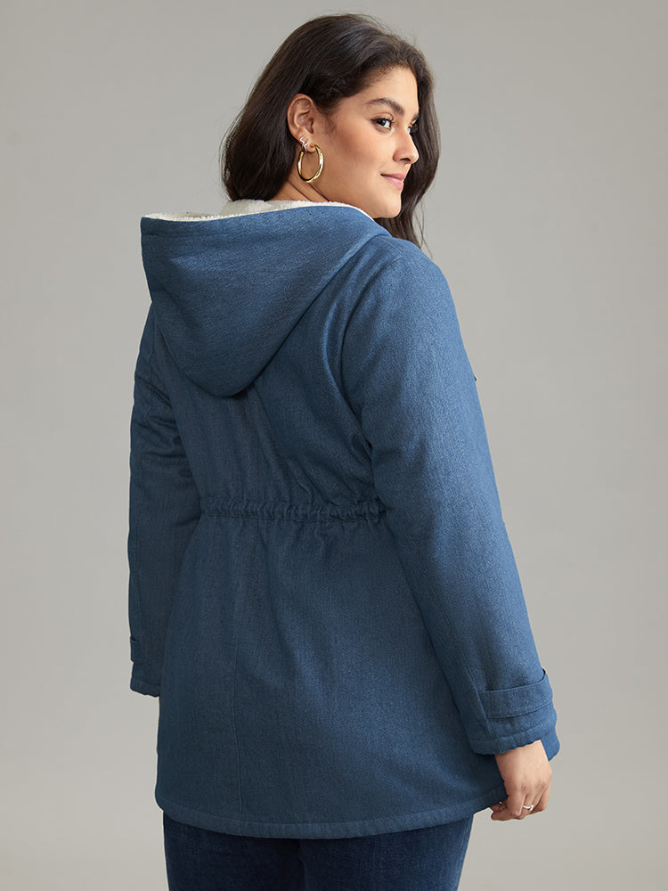 Shop Denim Patchwork Fuzzy Trim Drawstring Hooded Coat now and redefine your style with confidence at Sweetccc. Tailored for mid and plus-size women. This trendy Outerwear Women. sizes 10-30. Season:Winter;Color:LightBlue;Style:Casual;Pattern Type:Plain;Details:Pocket. Button. Drawstring. Patchwork. Zipper. Contrast;Pocket:It is perfectly sized to carry a phone.;Belt:No-belt;Closure Type:Zipper;Lining:Lining