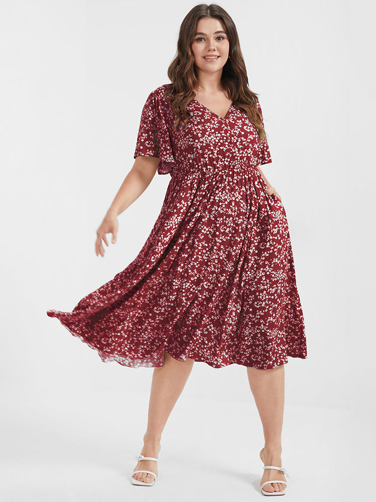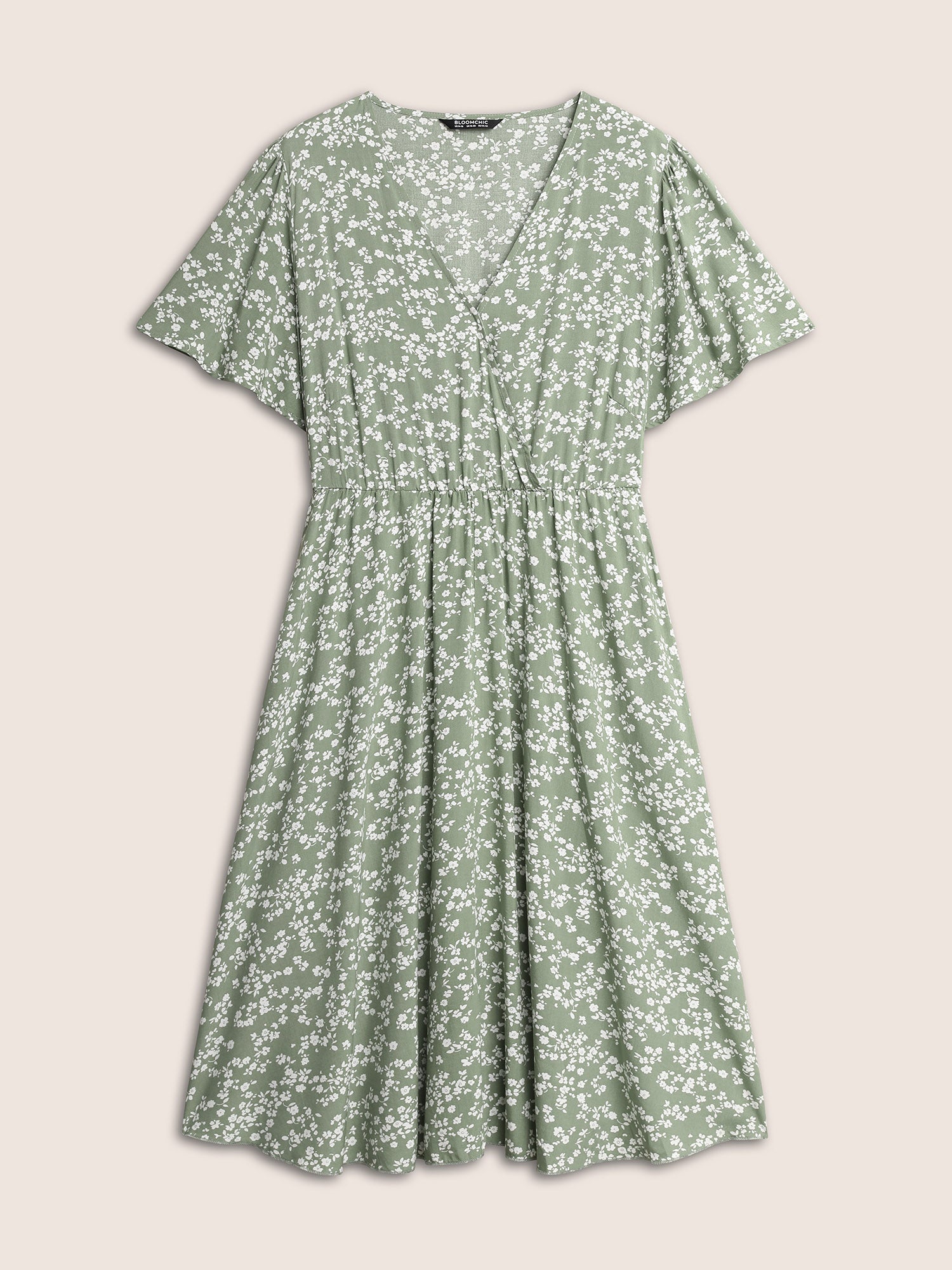 Shop Bloom Dress - Ditsy Floral Elastic Waist Ruffles Pocket Knee Dress now and redefine your style with confidence at Sweetccc. Tailored for mid and plus-size women. This trendy Dress. sizes 10-30. You can never go wrong with Sweetccc Dresses. Color:LightGreen.DustyPink;Neckline:V-neck;Sleeve Type:Ruffle Sleeve;Pattern Type:Ditsy Floral;Pocket:Side seam pocket;Snap Fastener:Snap fastener;Belt:No-belt;Closure Type:Non