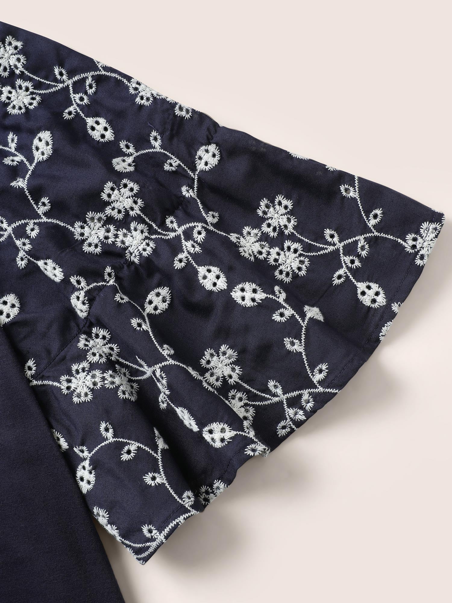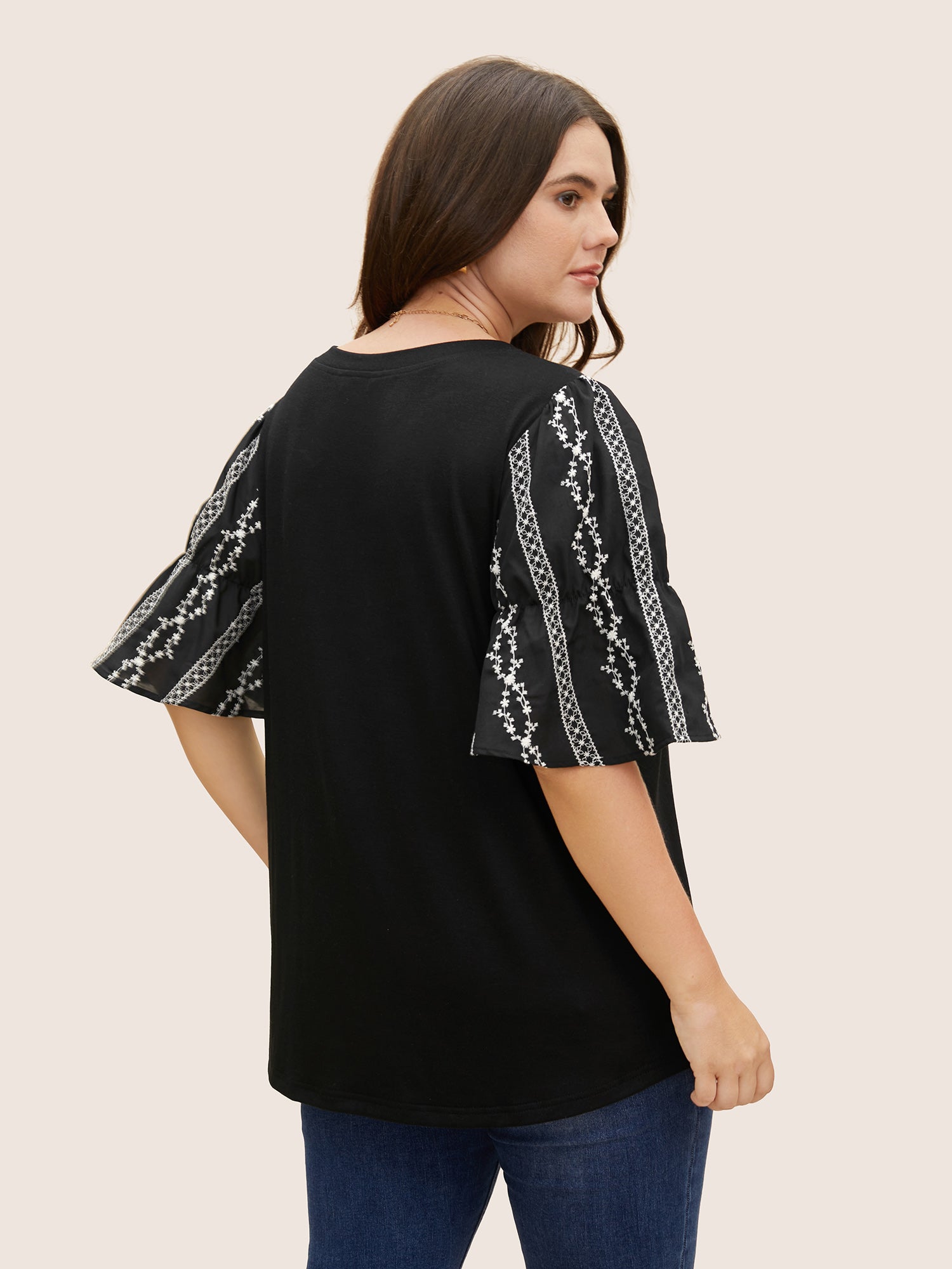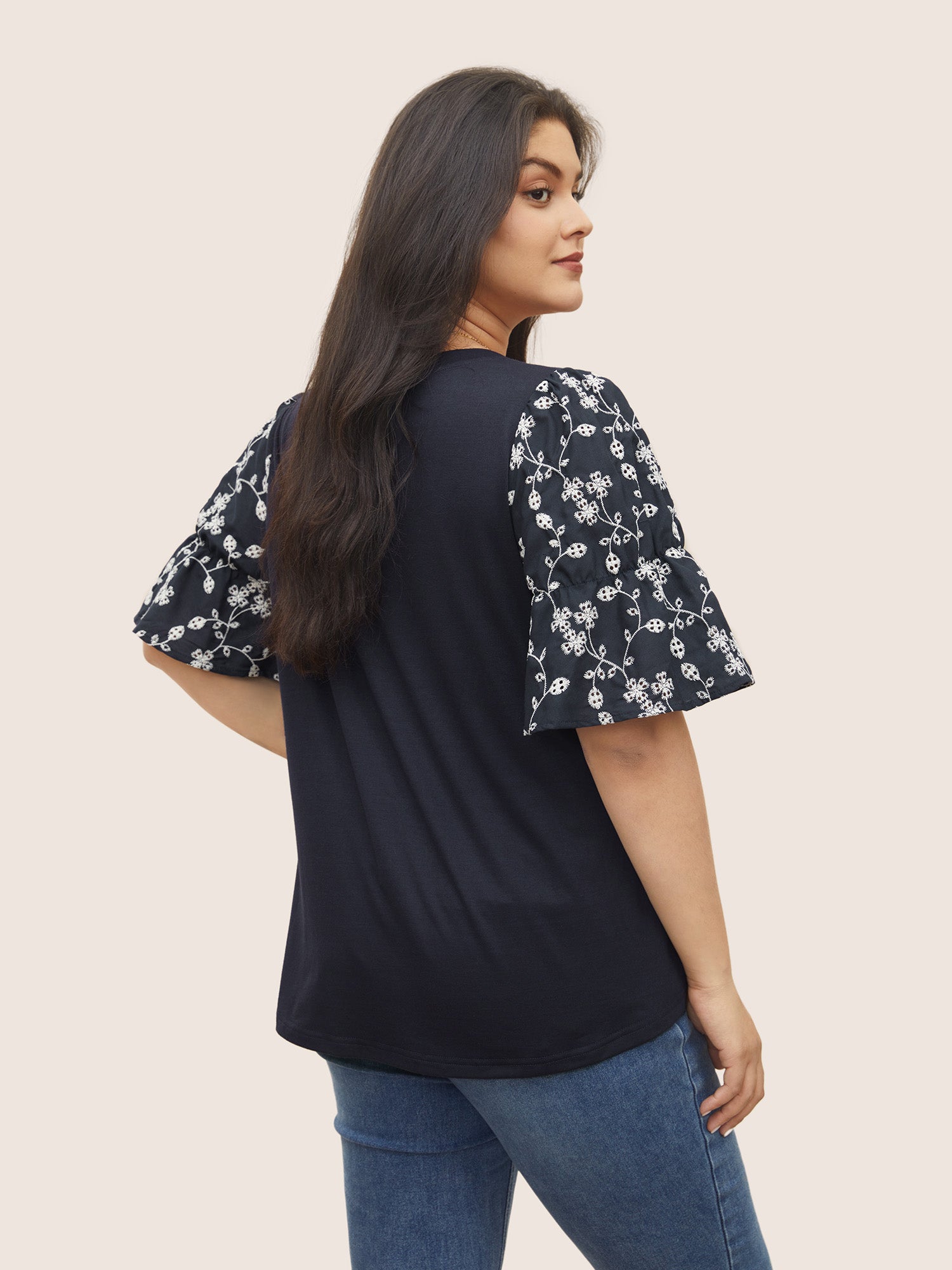 Shop Ditsy Floral Patchwork Broderie Anglaise T-shirt now and redefine your style with confidence at Sweetccc. Tailored for mid and plus-size women. This trendy Tops Women. sizes 10-30. Color:Midnight.Black;Pattern Type:Ditsy Floral;Neckline:Round Neck;Sleeve Type:Regular Sleeve;Details:Patchwork. Embroidered;Pocket:No-pocket