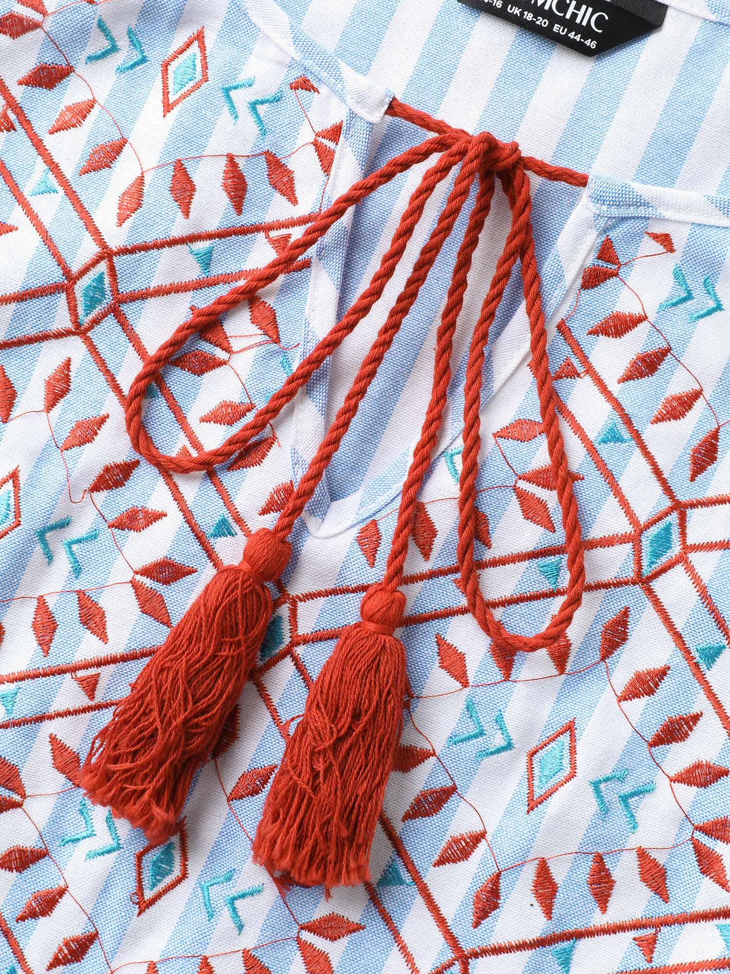 Shop Embroidered Stripe Neck Tie Blouse at Sweetccc. Plus Size Clothing & Plus Size Blouses. Sweetccc is a digital-first fashion and lifestyle destination for modern women sizes 10-30.