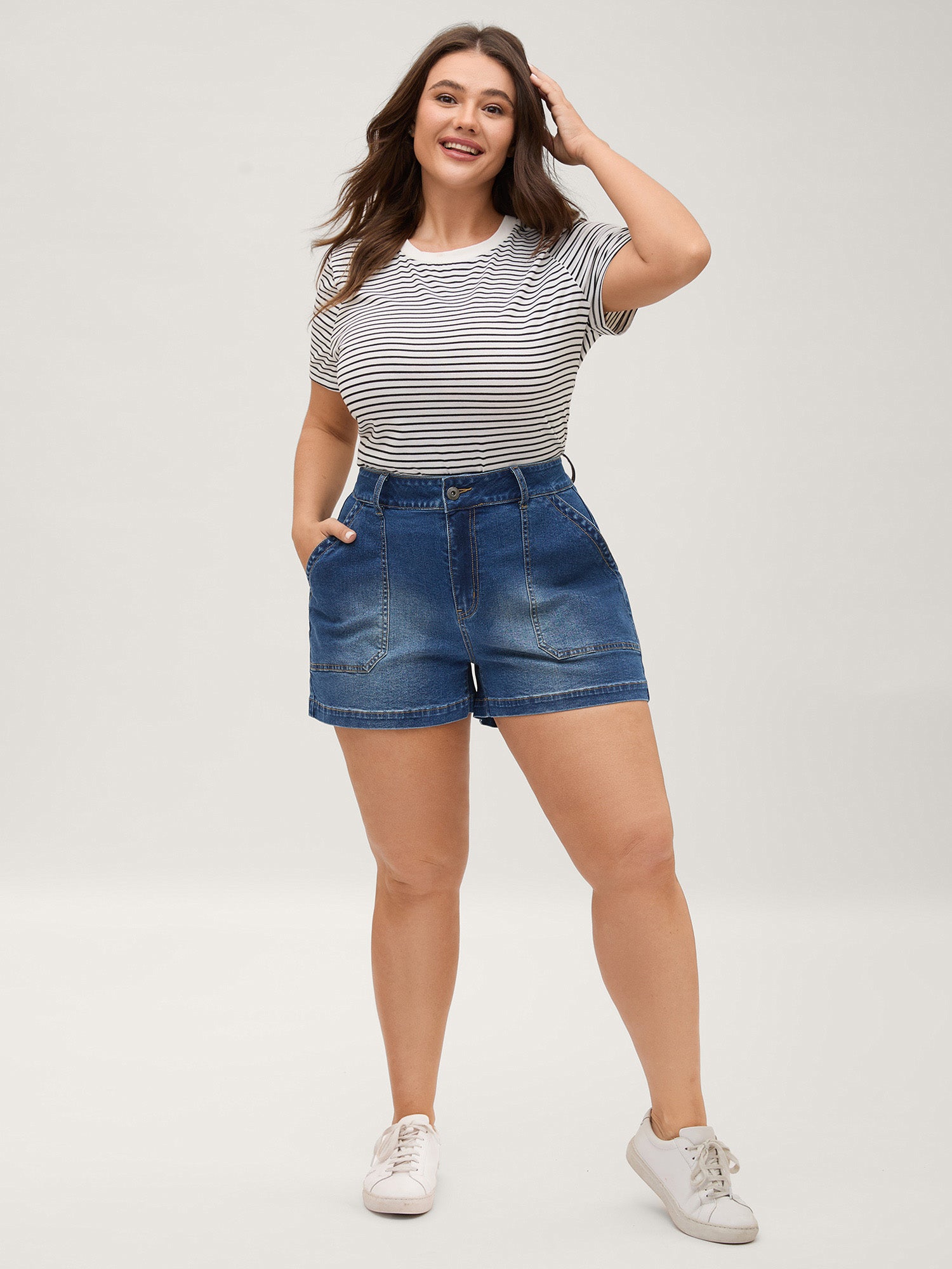 Shop Faded Straight-Leg Denim Shorts now and redefine your style with confidence at Sweetccc. Tailored for mid and plus-size women. This trendy Denim Women. sizes 10-30. Color:Midblue;Style:Basics. Casual. At the Office. Work From Home. Beach. Workwear Essentials;Prints:Non;Pocket:Slanted pocket;Belt:No-belt;Closure Type:Zipper;Wash:Medium Wash