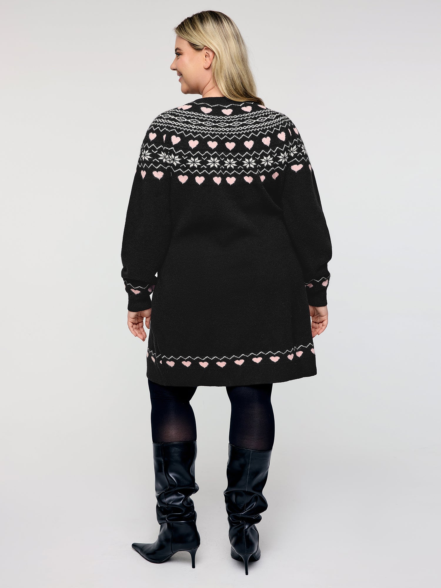 Shop Fair-Isle Jacquard Midi Sweater Dress now and redefine your style with confidence at Sweetccc. Tailored for mid and plus-size women. This trendy Dresses Women. sizes 10-30. Color:Black;Style:Playful;Neckline:Round Neck;Sleeve Type:Raglan sleeve;Prints:Heart-shaped;Pocket:No-pocket;Belt:No-belt;Closure Type:Non