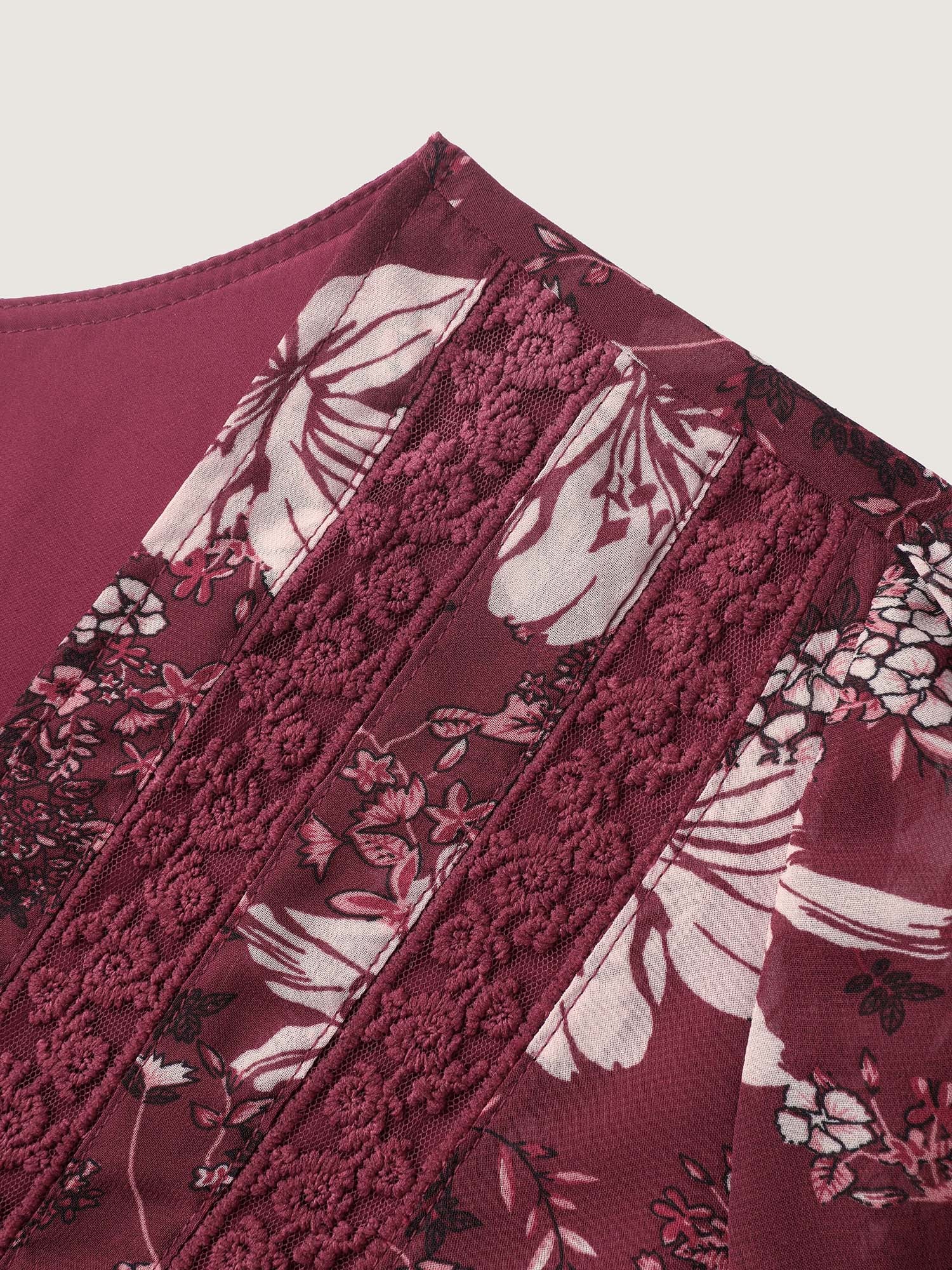 Fall Floral Print Lace Trim Blouse