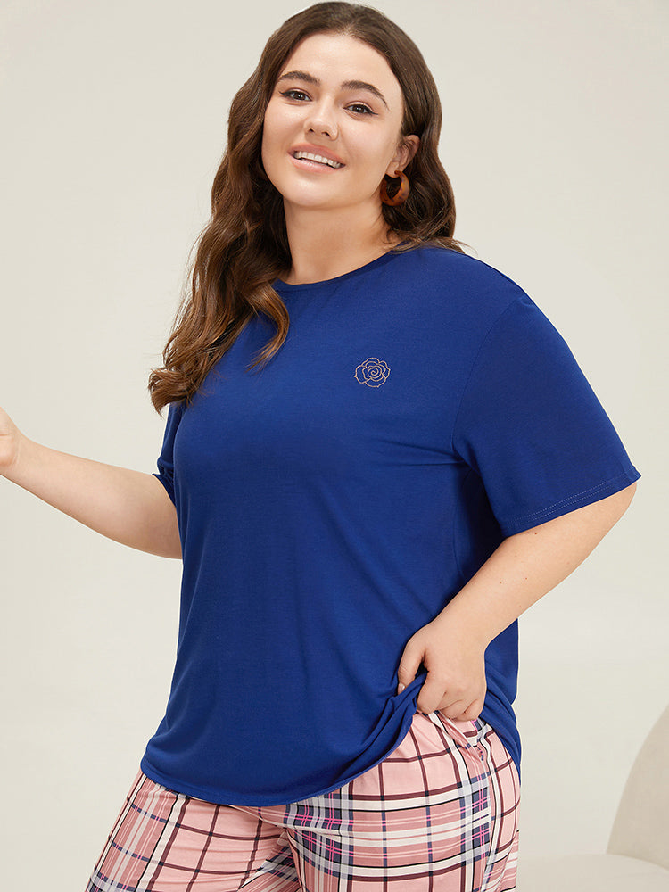 Shop Floral Glitter Crew Neck Sleep Top now and redefine your style with confidence at Sweetccc. Tailored for mid and plus-size women. This trendy Loungewear Women. sizes 10-30. Season:Fall;Color:Blue;Style:Casual;Neckline:Round Neck;Sleeve Type:Regular Sleeve;Pattern Type:Natural Flowers;Details:Printed. Plain;Pocket:No-pocket;Belt:No-belt