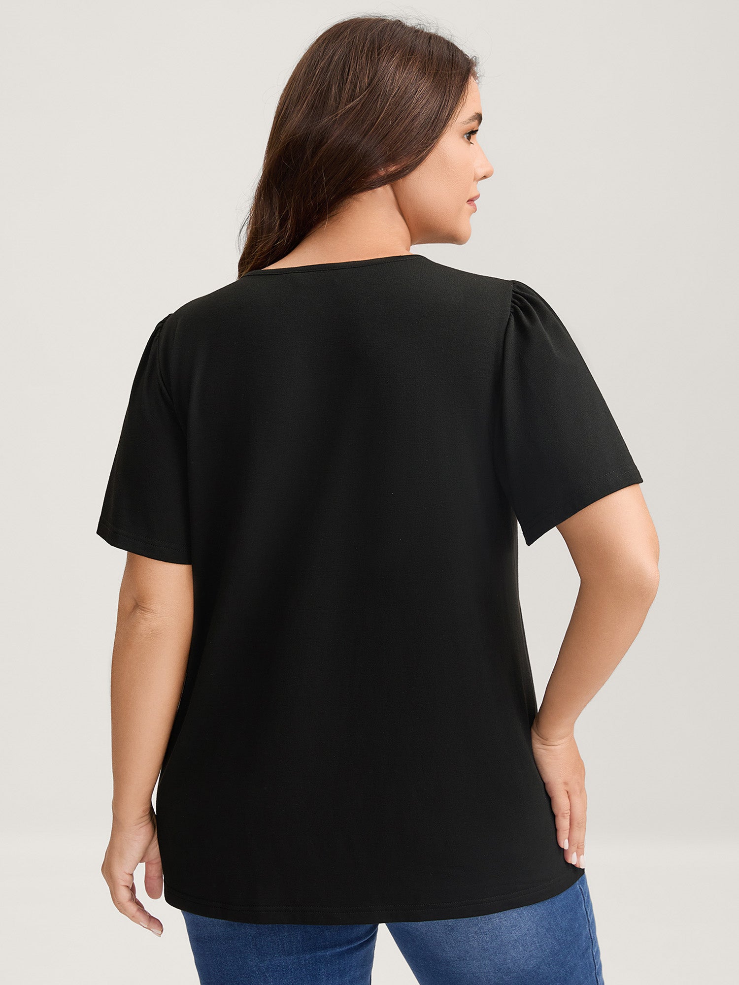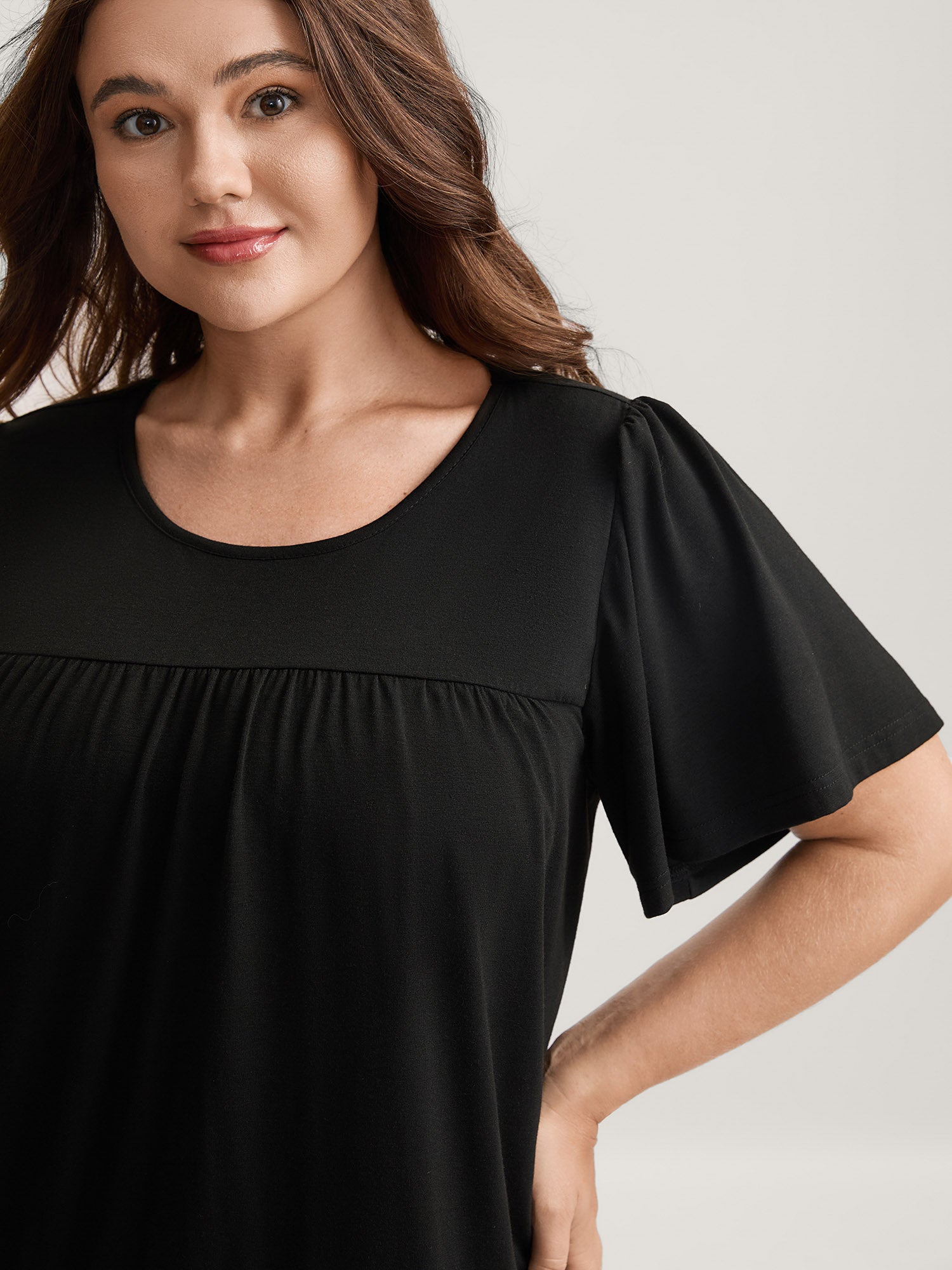 Shop Floral Hem Embroidered Solid Top now and redefine your style with confidence at Sweetccc. Tailored for mid and plus-size women. This trendy Tops Women. sizes 10-30. Color:Black;Prints:Non;Neckline:Round Neck;Sleeve Type:Ruffle Sleeve;Details:Ruffles. Embroidered. Gathered;Pocket:No-pocket