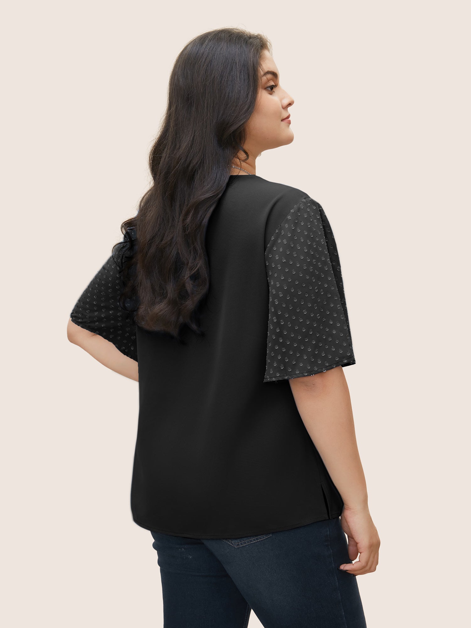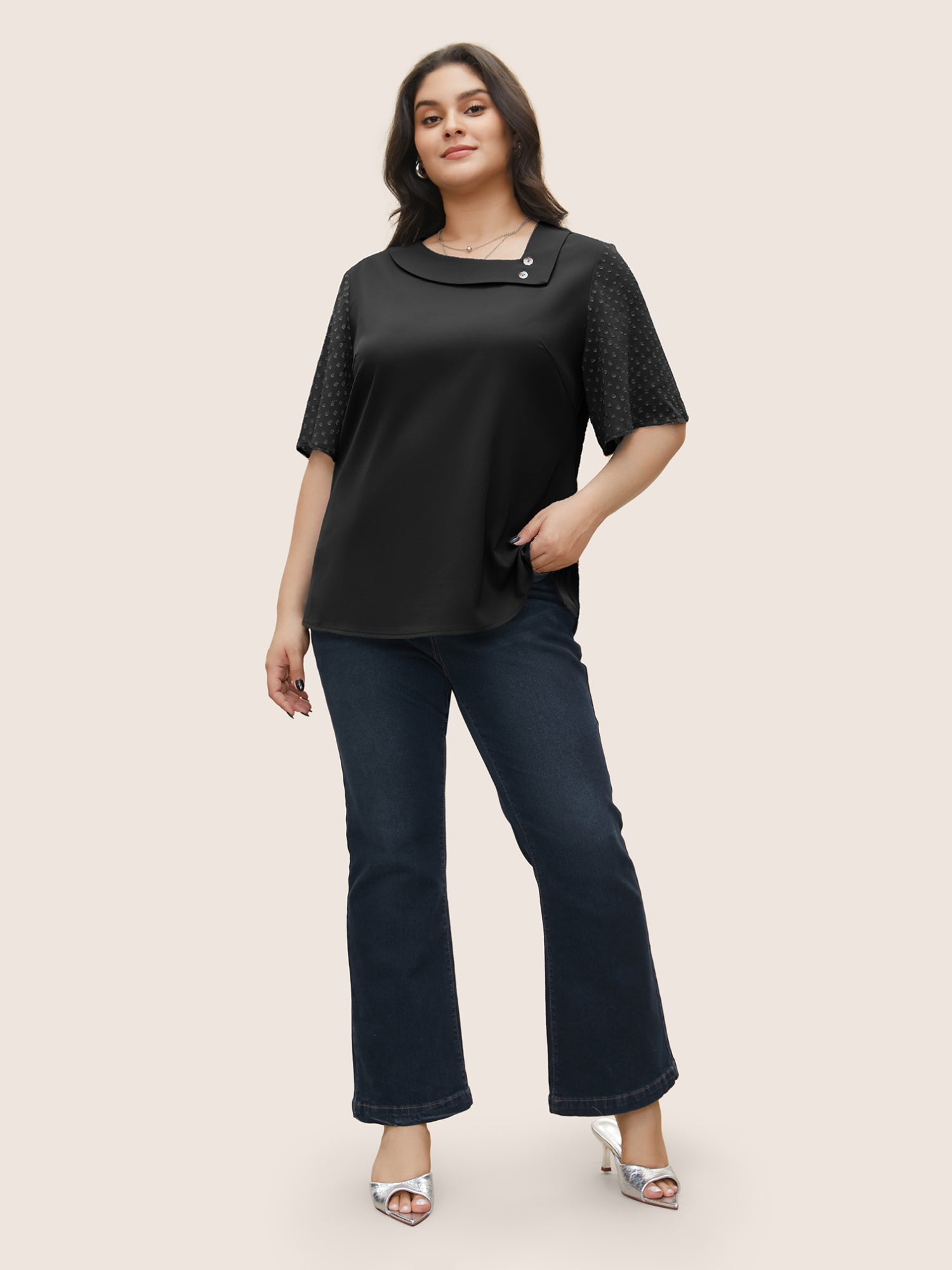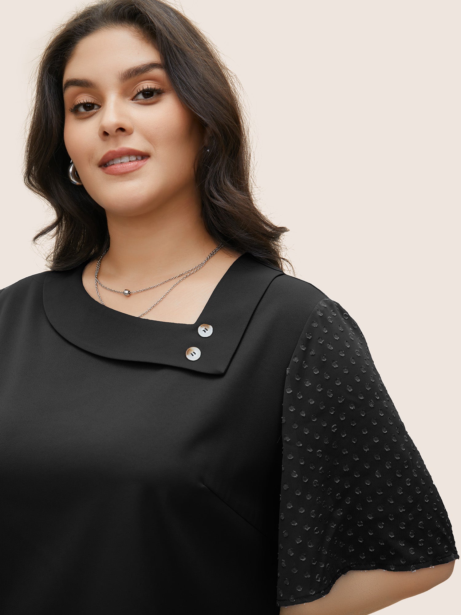 Shop Patchwork Chiffon Asymmetrical Neck Button Detail Blouse now and redefine your style with confidence at Sweetccc. Tailored for mid and plus-size women. This trendy Tops Women. sizes 10-30. Color:Black;Pattern Type:Plain;Neckline:Asymmetrical Neck;Sleeve Type:Ruffle Sleeve;Pocket:No-pocket