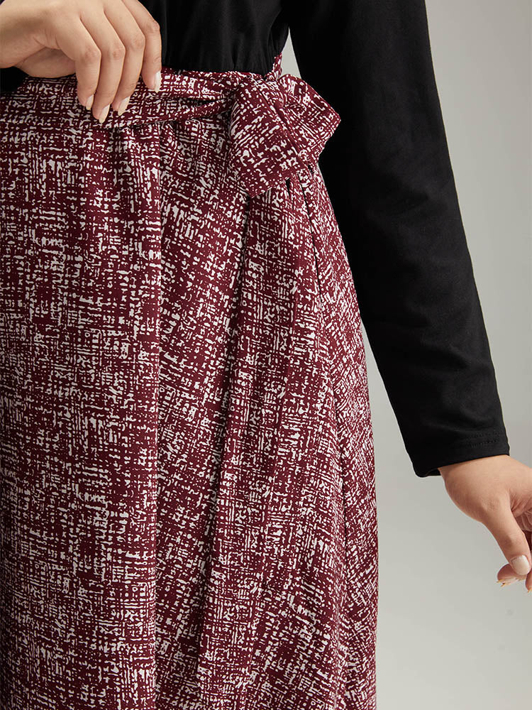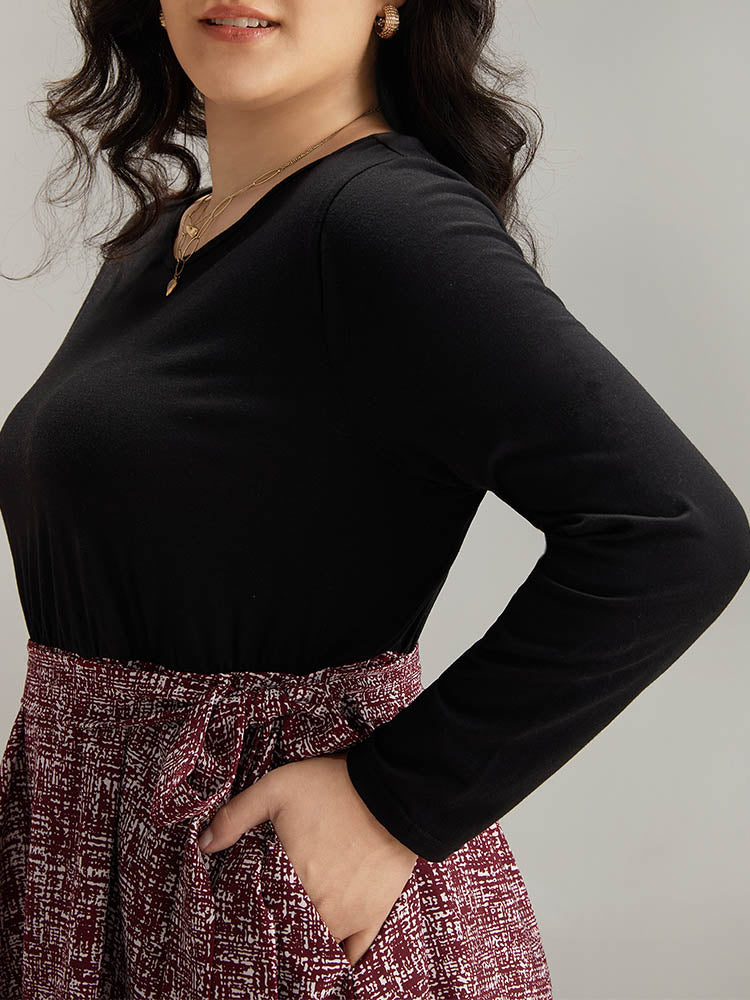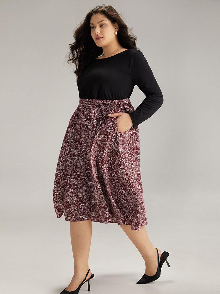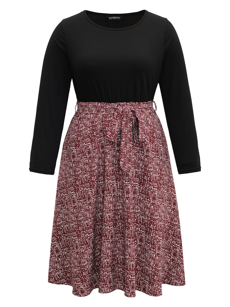 Shop Patchwork Contrast Belted Crew Neck Dress now and redefine your style with confidence at Sweetccc. Tailored for mid and plus-size women. This trendy Dress. sizes 10-30. You can never go wrong with Sweetccc Dresses. Season:Winter;Color:Black;Style:Office;Neckline:Round Neck;Sleeve Type:Regular Sleeve;Pattern Type:Graphic. Geometric. Colorblock;Details:Pocket. Elastic Waist. Patchwork. Printed. Belted. Contrast;Pocket:It is perfectly sized to carry a phone.;Belt:Belt