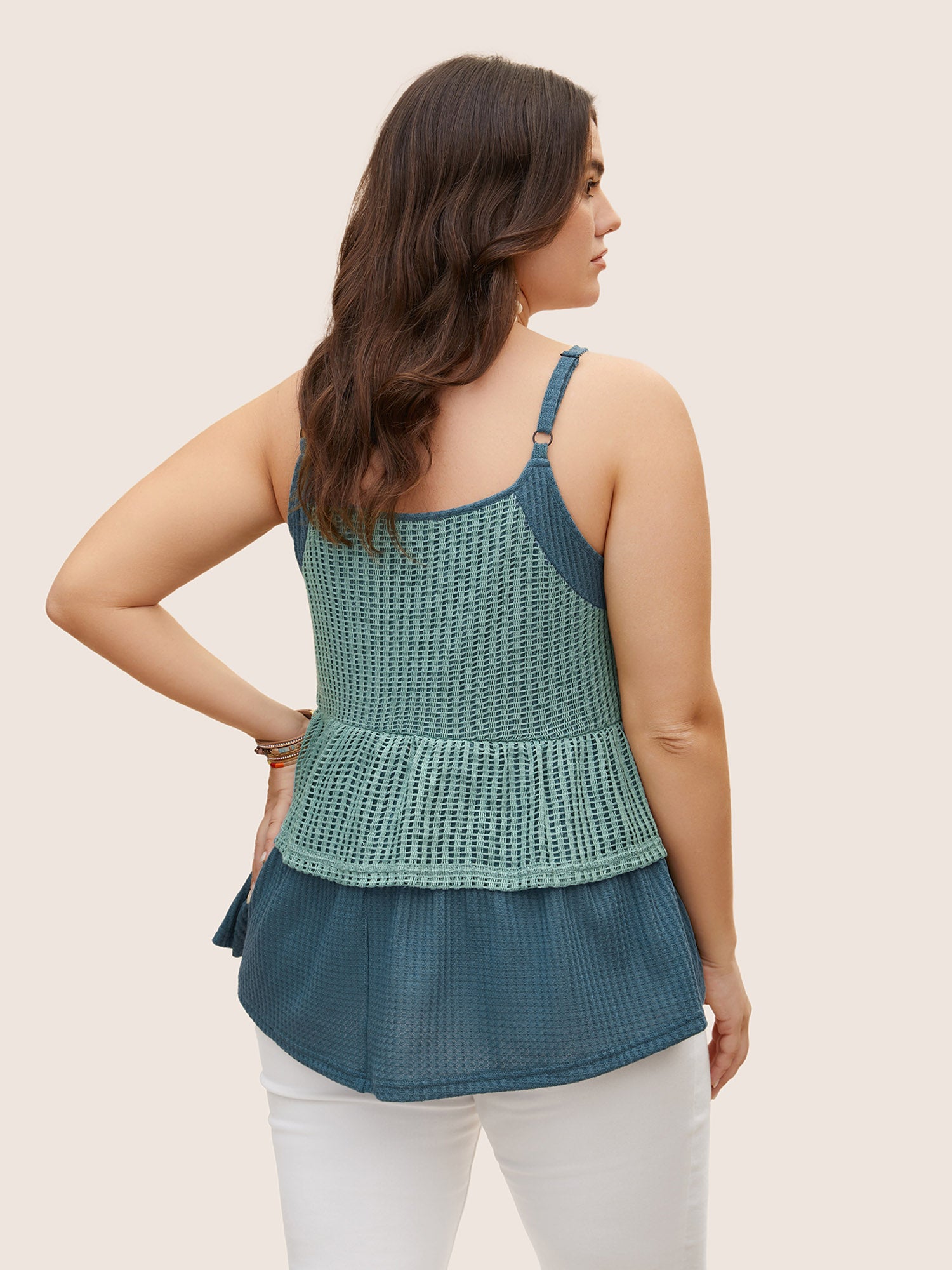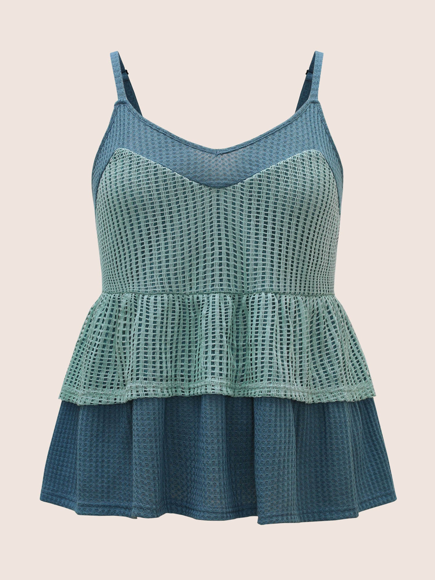 Shop Patchwork Contrast Waffle Knit Cami Top now and redefine your style with confidence at Sweetccc. Tailored for mid and plus-size women. This trendy Tops Women. sizes 10-30. Season:Summer;Color:Cyan;Style:Resort Vacation;Prints:Non;Neckline:V-neck;Sleeve Type:Sleeveless;Details:Texture. Cut-Out. Patchwork;Pocket:No-pocket