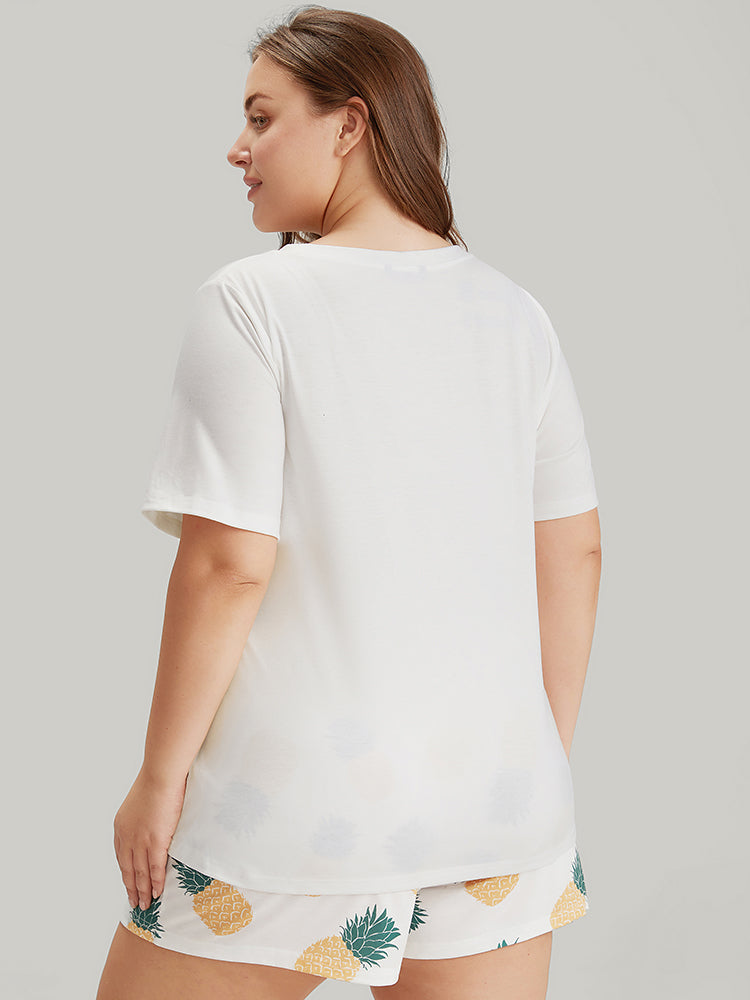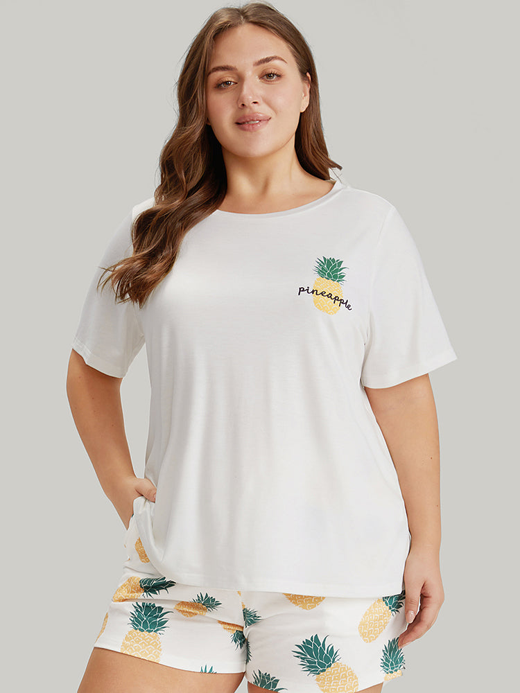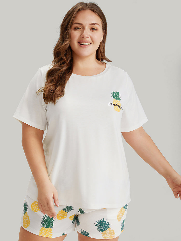 Shop Pineapple Print Round Neck Sleep Top now and redefine your style with confidence at Sweetccc. Tailored for mid and plus-size women. This trendy Loungewear Women. sizes 10-30. Season:Summer;Color:White;Style:Casual;Pattern Type:Natural Flowers;Belt:No-belt