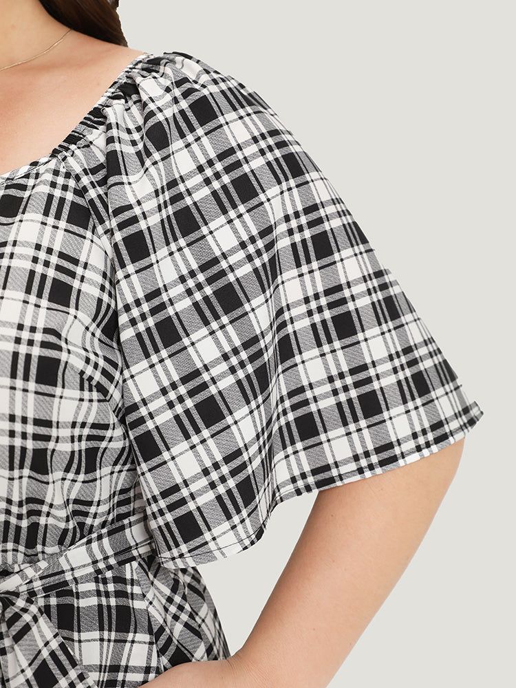 Shop Plaid Belted Pocket Button Detail Square Neck Dress now and redefine your style with confidence at Sweetccc. Tailored for mid and plus-size women. This trendy Dress. sizes 10-30. You can never go wrong with Sweetccc Dresses. Season:Summer;Color:Black;Style:Office;Neckline:Square Neck;Sleeve Type:Regular Sleeve;Pattern Type:Gingham;Details:Pocket. Elastic Waist. Button. Belted;Pocket:It is perfectly sized to carry a phone.;Belt:Belt