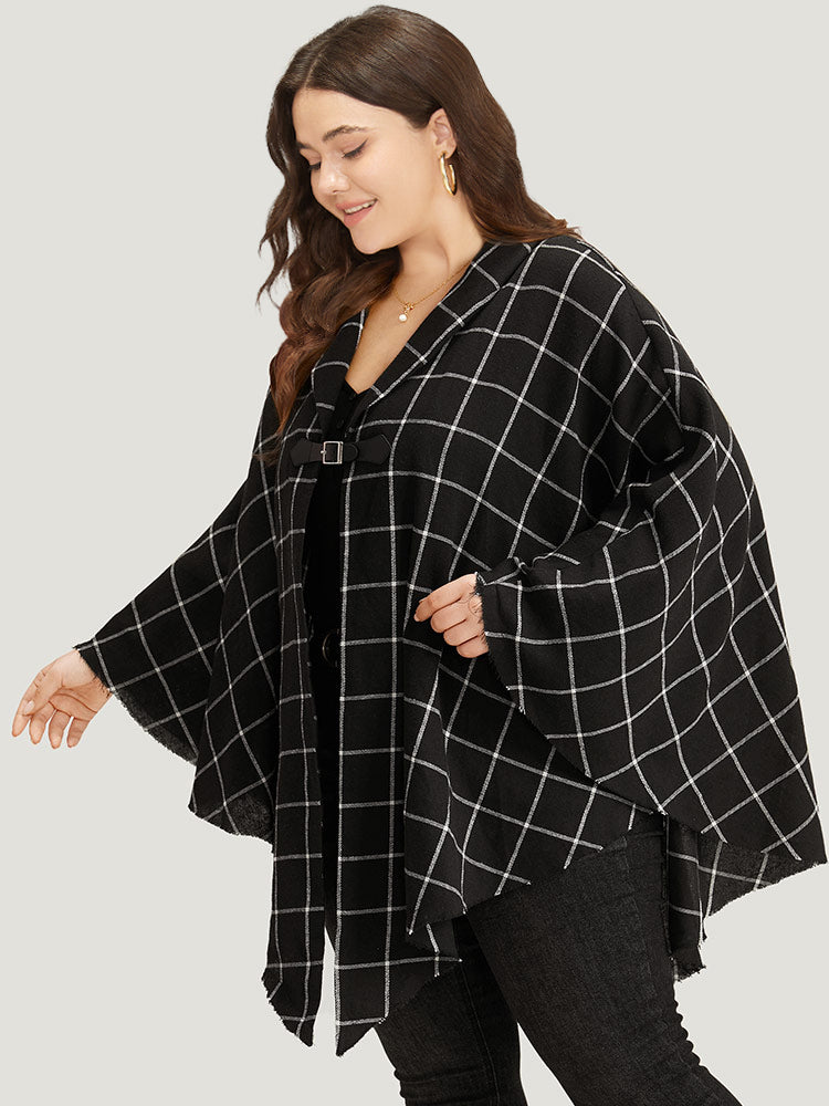 Shop Plaid Buckle Detail Cape Kimono now and redefine your style with confidence at Sweetccc. Tailored for mid and plus-size women. This trendy Outerwear Women. sizes 10-30. Season:Fall;Color:Black;Style:Casual;Pattern Type:Plaid;Details:Asymmetrical. Contrast;Pocket:No-pocket;Belt:No-belt